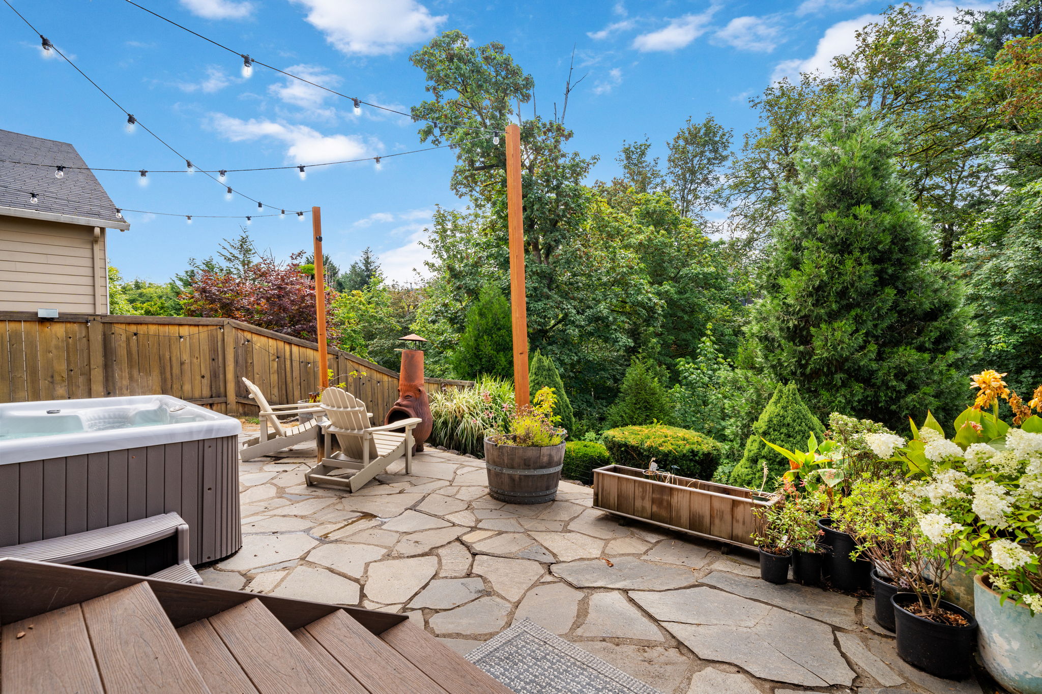 The primary suite takes full advantage of these views and also features laminate wood flooring, a walk-in closet, soaking tub, double sinks, and walk-in shower. The backyard oasis includes a covered gazebo, hot tub, and views that must be enjoyed with your morning cup of coffee in hand - or by the fire pit in the evening.