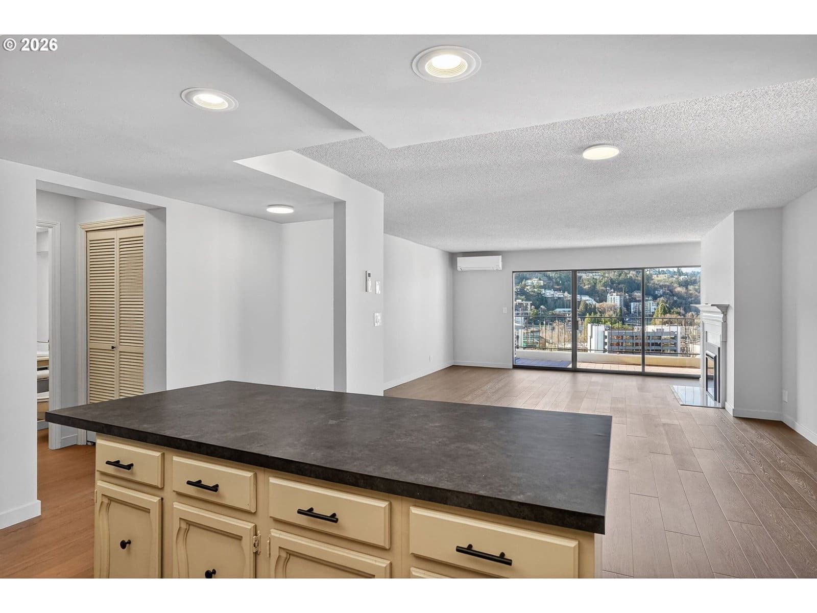 This two bedroom and one and a half bath condo is centrally located in South Downtown Portland. This bight and light condo with a great room concept has been recently refreshed with all new Luxury Plank vinyl flooring thoughout, new paint and baseboards. Kitchen has been opened up to Living and dinning area to create an open and light floorplan great for entertaining. Views of the Willamette River and Mt. St Helens from the dining area. Twinkling City lights and West hills views from the living room and the covered balcony great to enjoy peaceful sunsets. . New cozy electric fireplace, new hot water heater. Primary bedroom with bath right across the hall. The second bedroom is versatile and can serve as a guest room, home office, or cozy den. A convenient half bath completes the layout, ideal for guests. This condo also offers access to fantastic amenities, including 2 workout rooms, 2 community lounges. Enjoy the indoor saltwater pool with jacuzzi and sauna or take dip in the outdoor pool during summer months. 53 Guest parking spaces unheard of downtown. Light rail and bus line outside your door, the street car is one block north. Stroll the Halprin sequence to dining, and entertainment just steps away, you’ll enjoy all that city living has to offer. Don’t miss your chance to own this stylish urban retreat! Close to OHSU and Portland state
