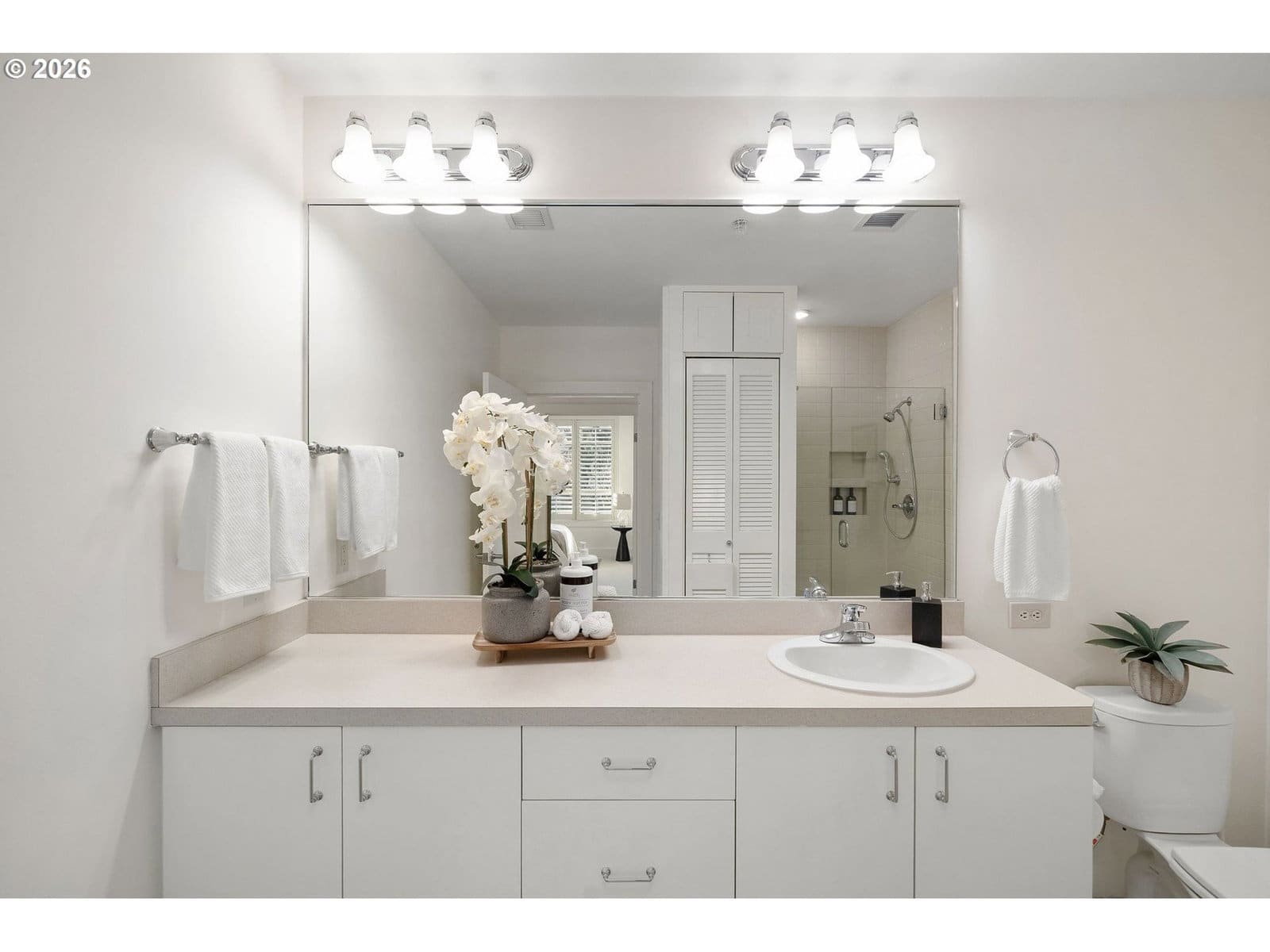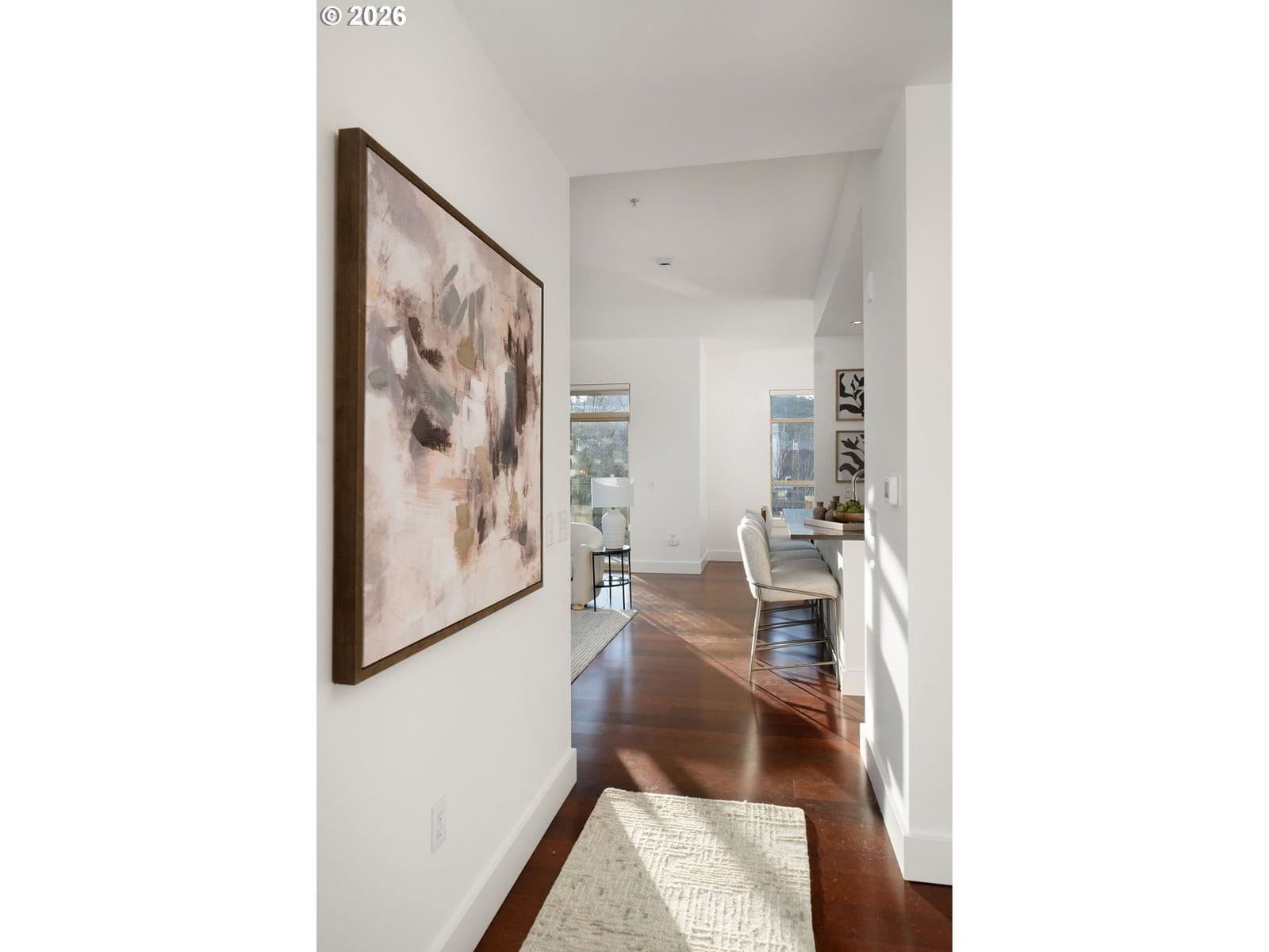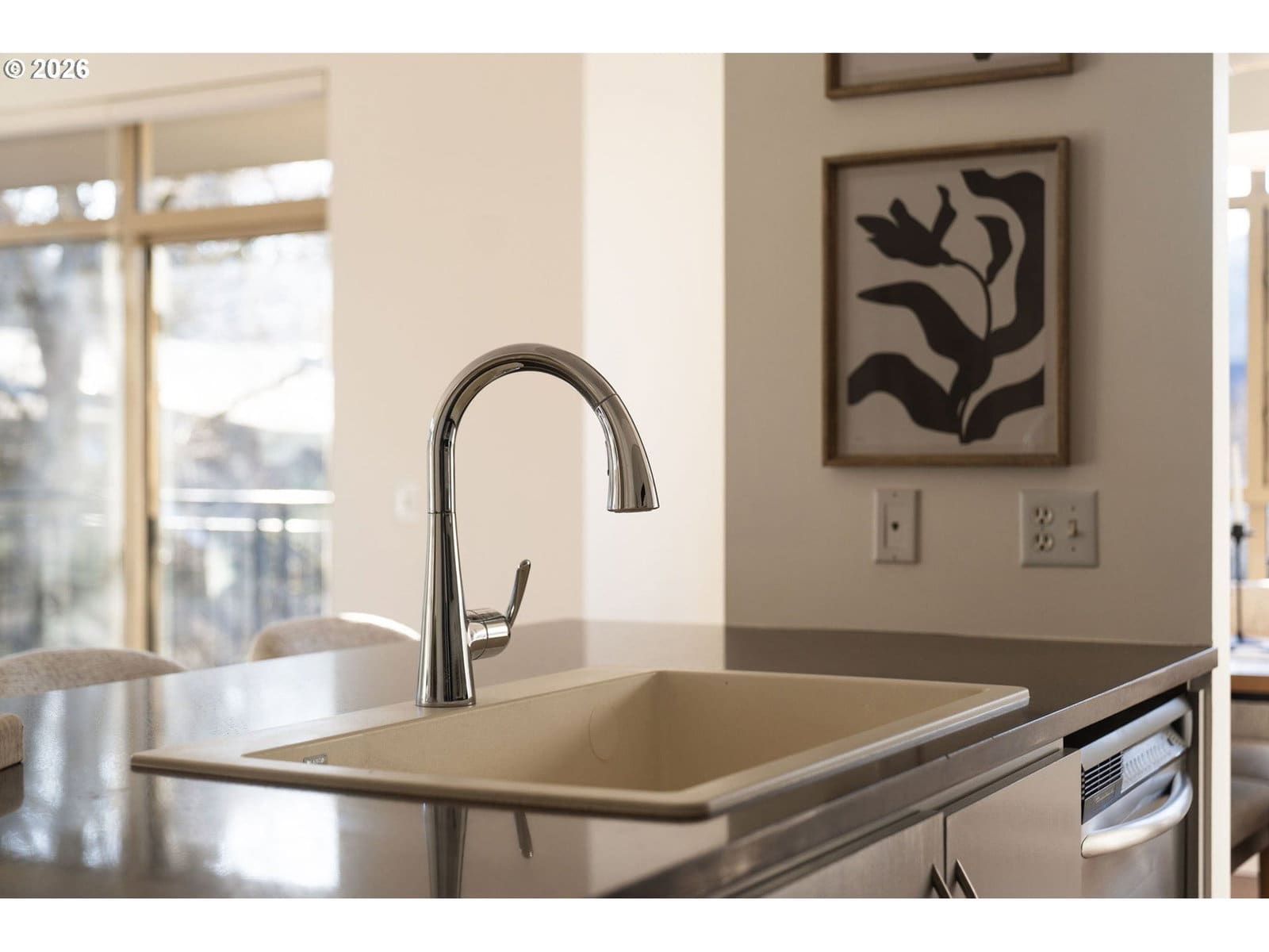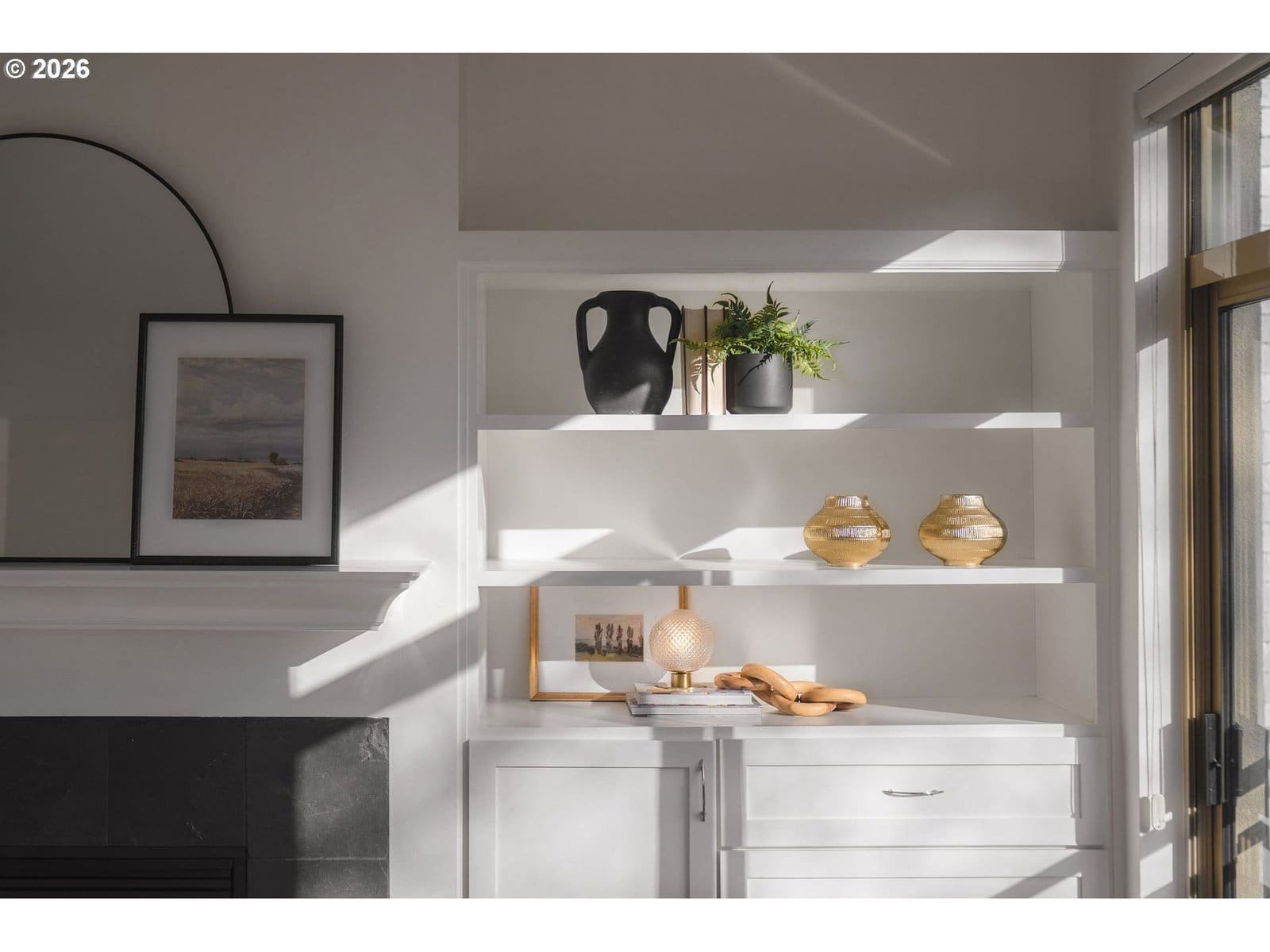Set in the heart of Portland’s vibrant Alphabet District, this light-filled corner condo features a well-designed, functional floor plan with a focus on comfort, quality, and effortless city living. Located in Addison Condominiums—a boutique condo building nestled along tree-lined streets with a distinctive blend of historic architecture. Large windows, high ceilings, and three sliding glass doors provide an abundance of natural light, treetop views, and fresh air. The gas fireplace and built-ins add warmth and character, while the kitchen offers plenty of work space with the generous peninsula with bar seating and a pantry for additional storage. Step outside to a large private balcony—an extension of the living space—perfect for morning coffee, al fresco dining, or simply enjoying the surrounding greenery and neighborhood charm. Additional features include wood floors, a spacious walk-in closet in the primary bedroom, a stack-able washer & dryer, new paint throughout, new carpet in both bedrooms, new heat pump keeping the temperature just right no matter the weather, a deeded storage unit, and a deeded parking space in the gated garage.