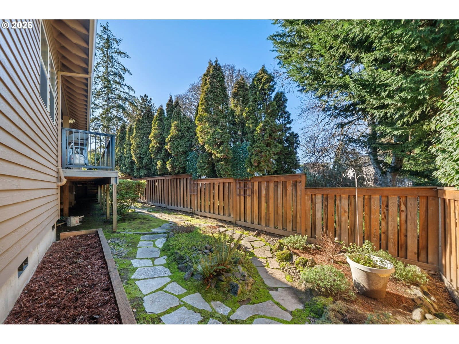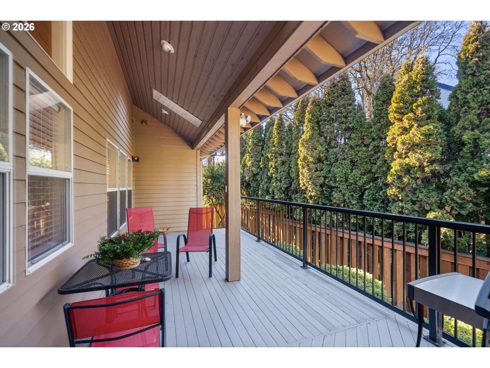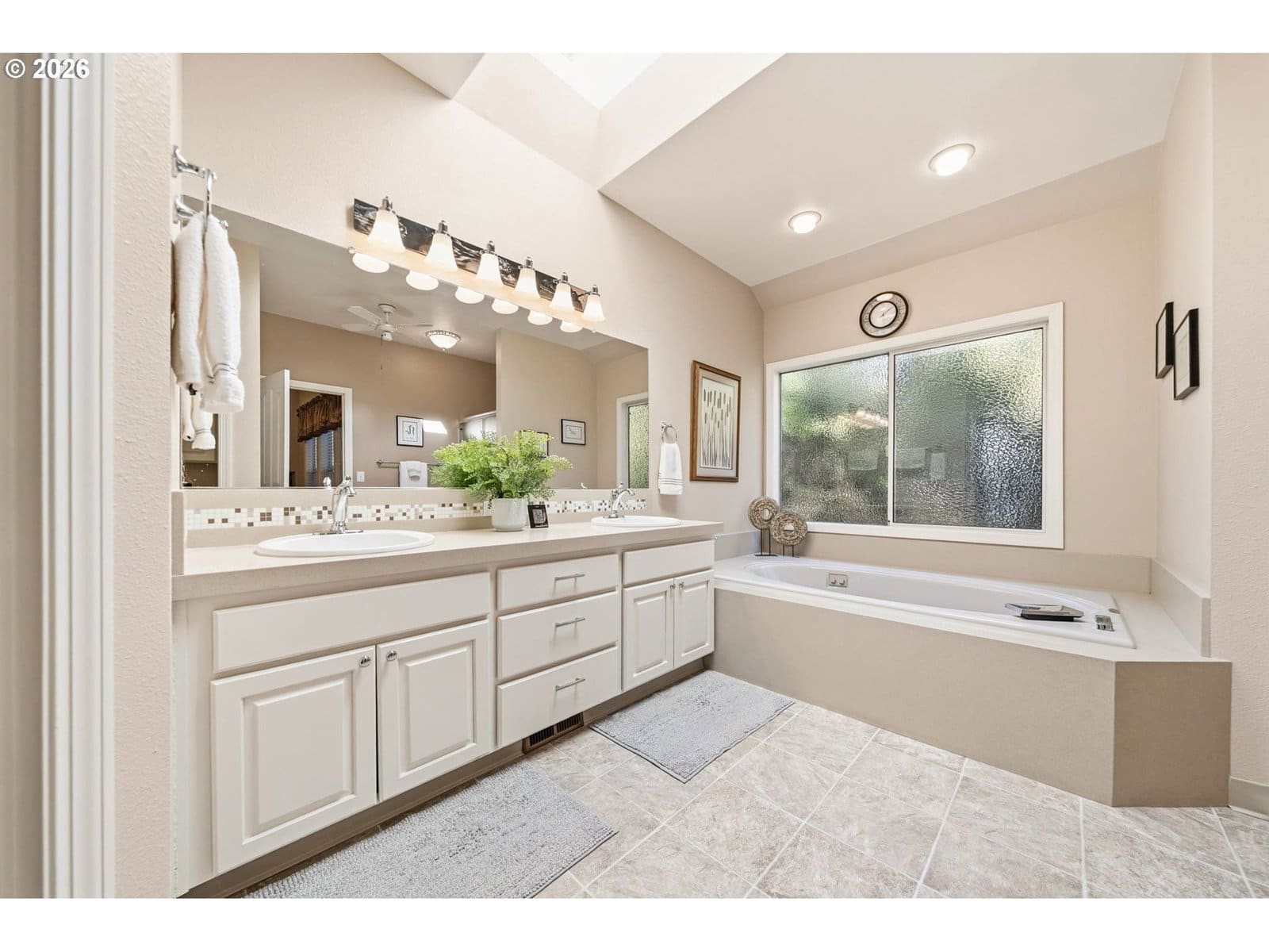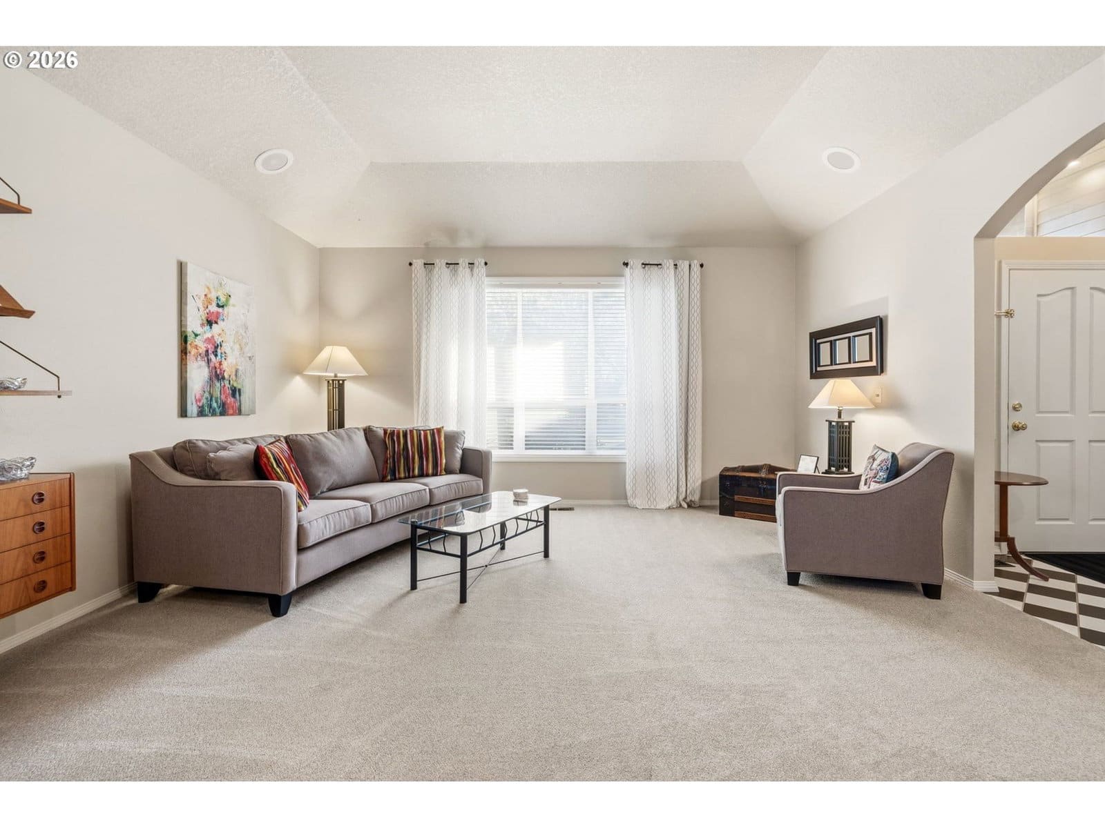 This custom one-level 3BR/2BA is just as neat as a pin and shows like new! Starting w outside, newer driveway, wide pathway to front door, and exterior paint all completed in 2020. Brickwork w ‘eyebrow’ archway leads to covered entry. Once inside black and white tiles on diagonal make for a pleasing and classic aesthetic. Formal living RM off to the right w double-sided fireplace shared w family RM. Continue thru to dining area w alcove for showcase or artwork. Head to kitchen w vaulted ceiling and skylight, white cabs, solid surface counters, 4-burner gas cook island w eating bar, Bosch dishwasher, built-in Whirlpool micro, and convection oven. Appliance garage, pantry, built-in desk, and eating nook. All feels spacious and open, light and bright. From eating nook, access covered wood deck w new railing in 2025. Enjoy outdoor gatherings and BBQ in all seasons! Family RM offers custom floor to ceiling wall unit and fireplace. Tall and vaulted ceilings. Warm neutral interior paint creates a very inviting appeal. Just off family RM double doors lead into a generous RETREAT of a primary suite leads to spacious en-suite offering a soak tub w waterfall adding to a spa-like appeal, separate shower, separate and private toilet. Dual sinks, solid surface countertop, and walk-in closet. This home has been lovingly maintained, lightly lived in w a ‘shoes off policy’. Carpet looks beautiful. HVAC system new in 2023. Beautifully landscaped and professionally maintained w front yard sprinklers. Backyard offers area for above ground gardening and storage space under deck. Largely privatized w fencing and tall arborvitae. Feels wonderfully private both inside and out. 3-car garage w painted floor. Great neighborhood and friendly Home Owner Association. Dues are $483 annually covers common areas and management. Wonderful proximity to Tualatin Hills Park & Rec, trails, parks, EZ access to HWY 26, quick commute to hi-tech, w endless options for shopping, groceries, dining, and more. Jenne Lake Park Project