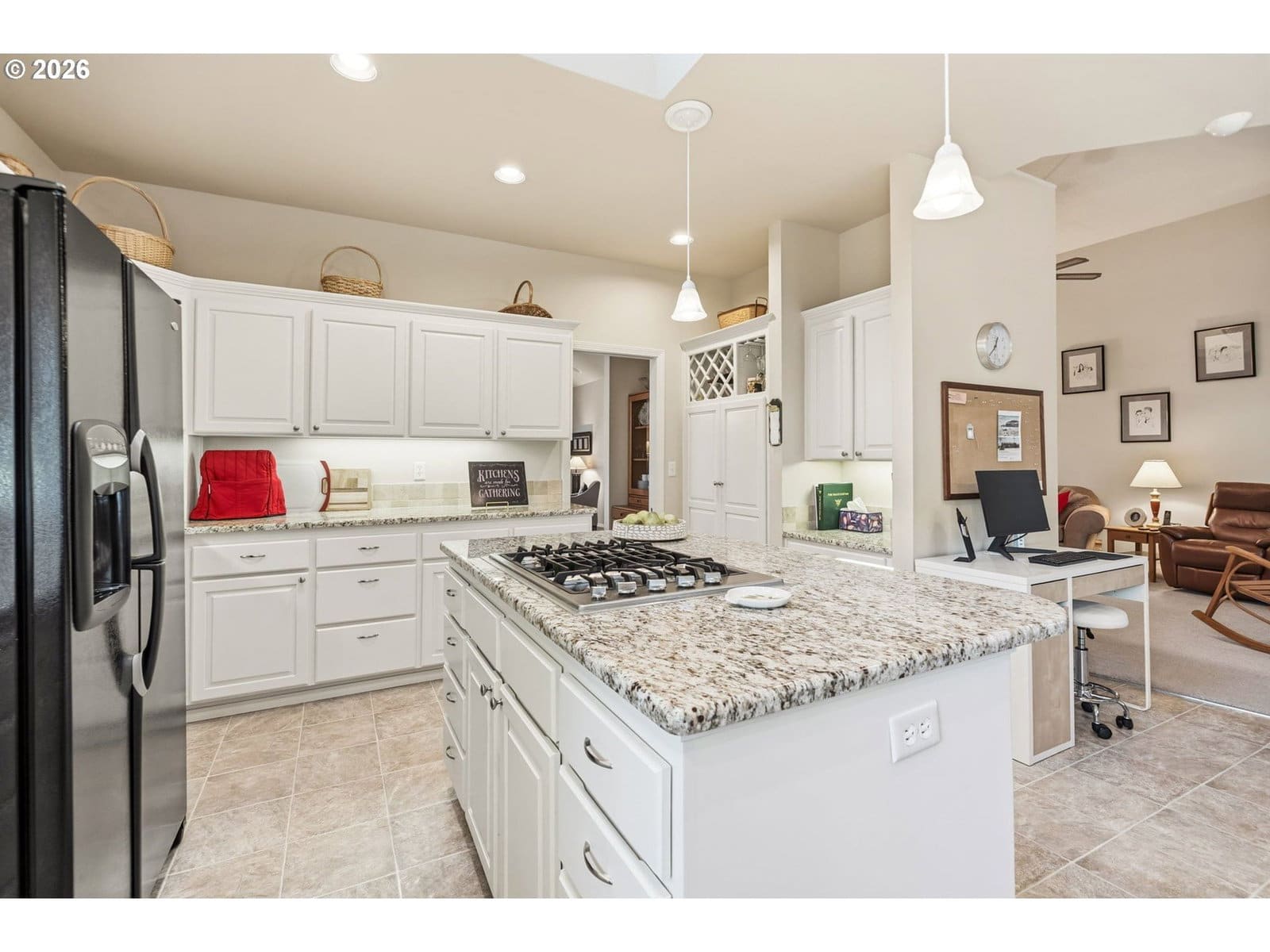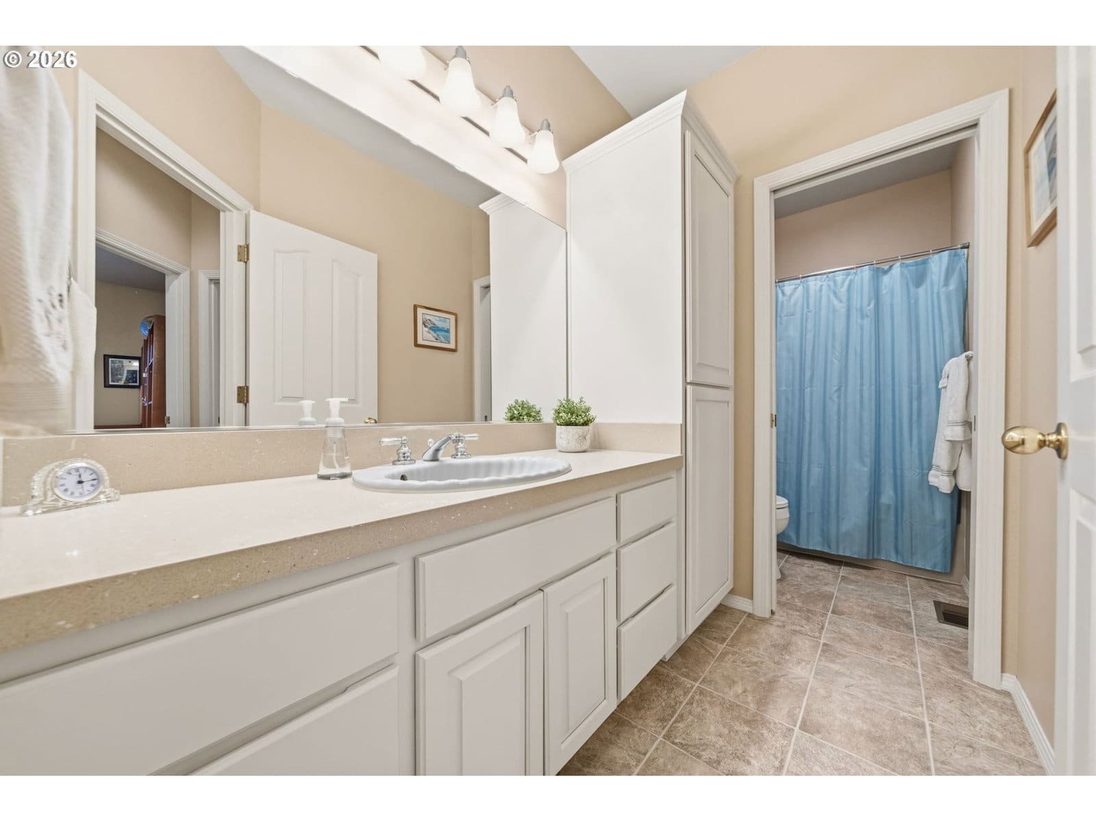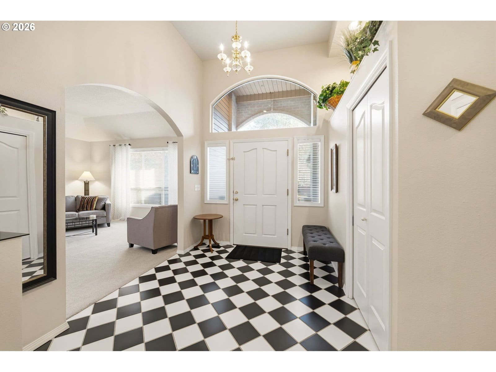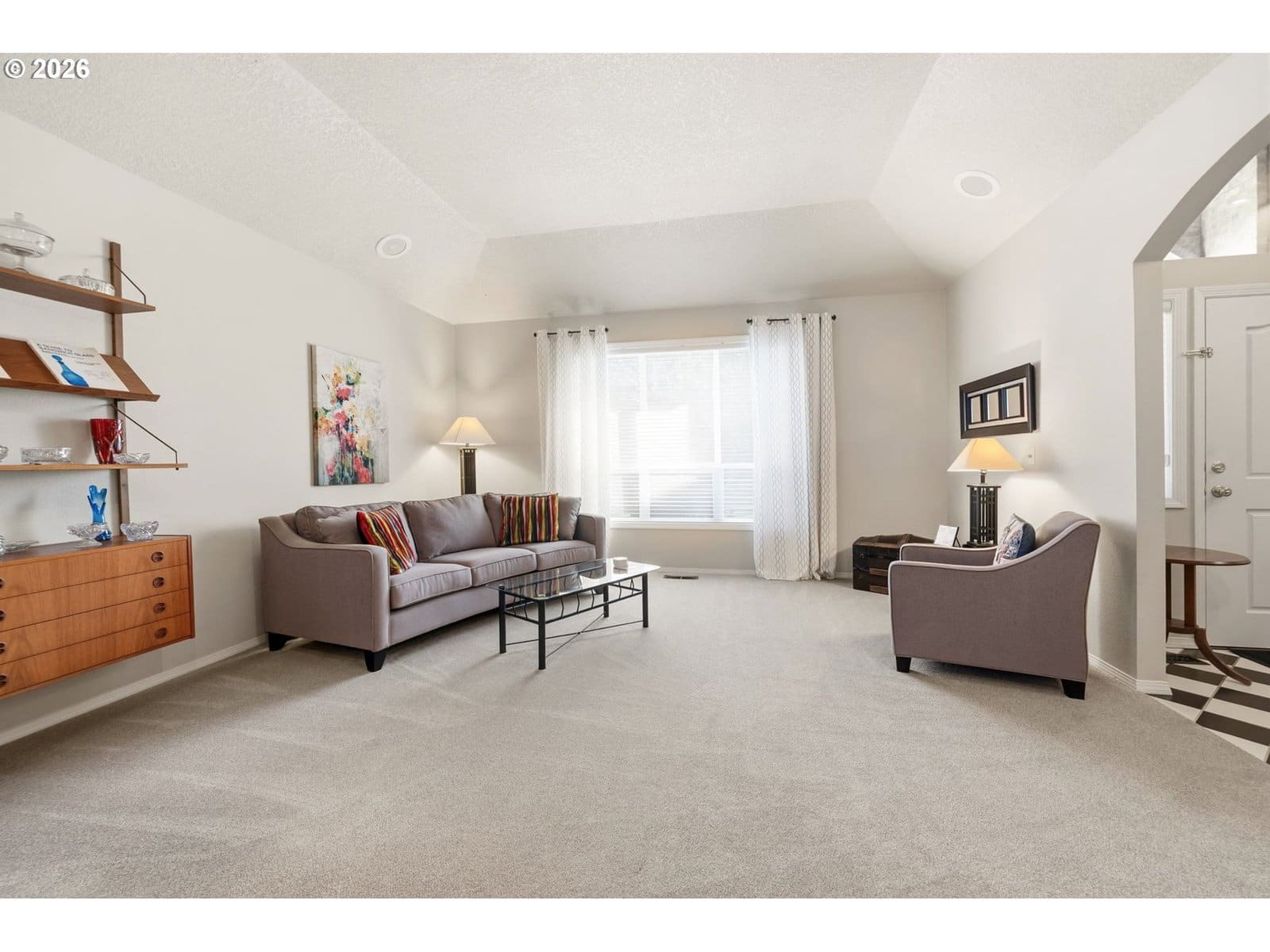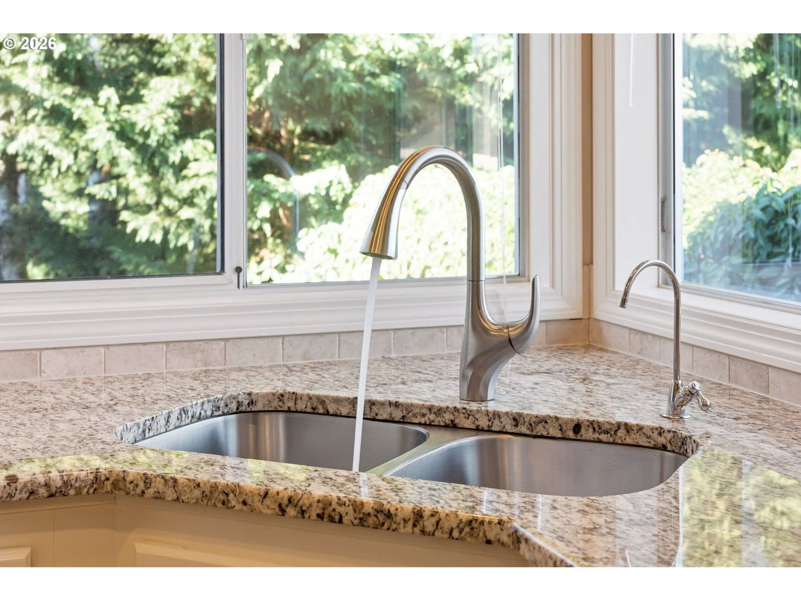 This custom one-level 3BR/2BA is just as neat as a pin and shows like new! Starting w outside, newer driveway, wide pathway to front door, and exterior paint all completed in 2020. Brickwork w ‘eyebrow’ archway leads to covered entry. Once inside black and white tiles on diagonal make for a pleasing and classic aesthetic. Formal living RM off to the right w double-sided fireplace shared w family RM. Continue thru to dining area w alcove for showcase or artwork. Head to kitchen w vaulted ceiling and skylight, white cabs, solid surface counters, 4-burner gas cook island w eating bar, Bosch dishwasher, built-in Whirlpool micro, and convection oven. Appliance garage, pantry, built-in desk, and eating nook. All feels spacious and open, light and bright. From eating nook, access covered wood deck w new railing in 2025. Enjoy outdoor gatherings and BBQ in all seasons! Family RM offers custom floor to ceiling wall unit and fireplace. Tall and vaulted ceilings. Warm neutral interior paint creates a very inviting appeal. Just off family RM double doors lead into a generous RETREAT of a primary suite leads to spacious en-suite offering a soak tub w waterfall adding to a spa-like appeal, separate shower, separate and private toilet. Dual sinks, solid surface countertop, and walk-in closet. This home has been lovingly maintained, lightly lived in w a ‘shoes off policy’. Carpet looks beautiful. HVAC system new in 2023. Beautifully landscaped and professionally maintained w front yard sprinklers. Backyard offers area for above ground gardening and storage space under deck. Largely privatized w fencing and tall arborvitae. Feels wonderfully private both inside and out. 3-car garage w painted floor. Great neighborhood and friendly Home Owner Association. Dues are $483 annually covers common areas and management. Wonderful proximity to Tualatin Hills Park & Rec, trails, parks, EZ access to HWY 26, quick commute to hi-tech, w endless options for shopping, groceries, dining, and more. Jenne Lake Park Project
