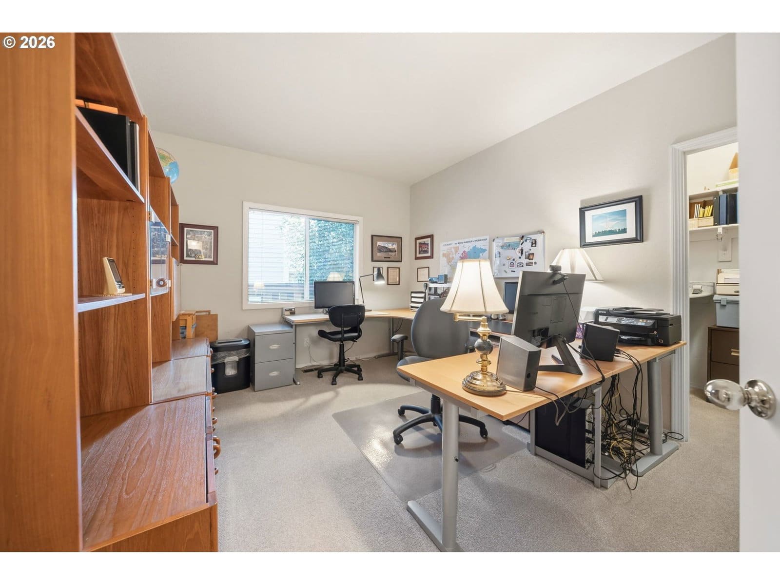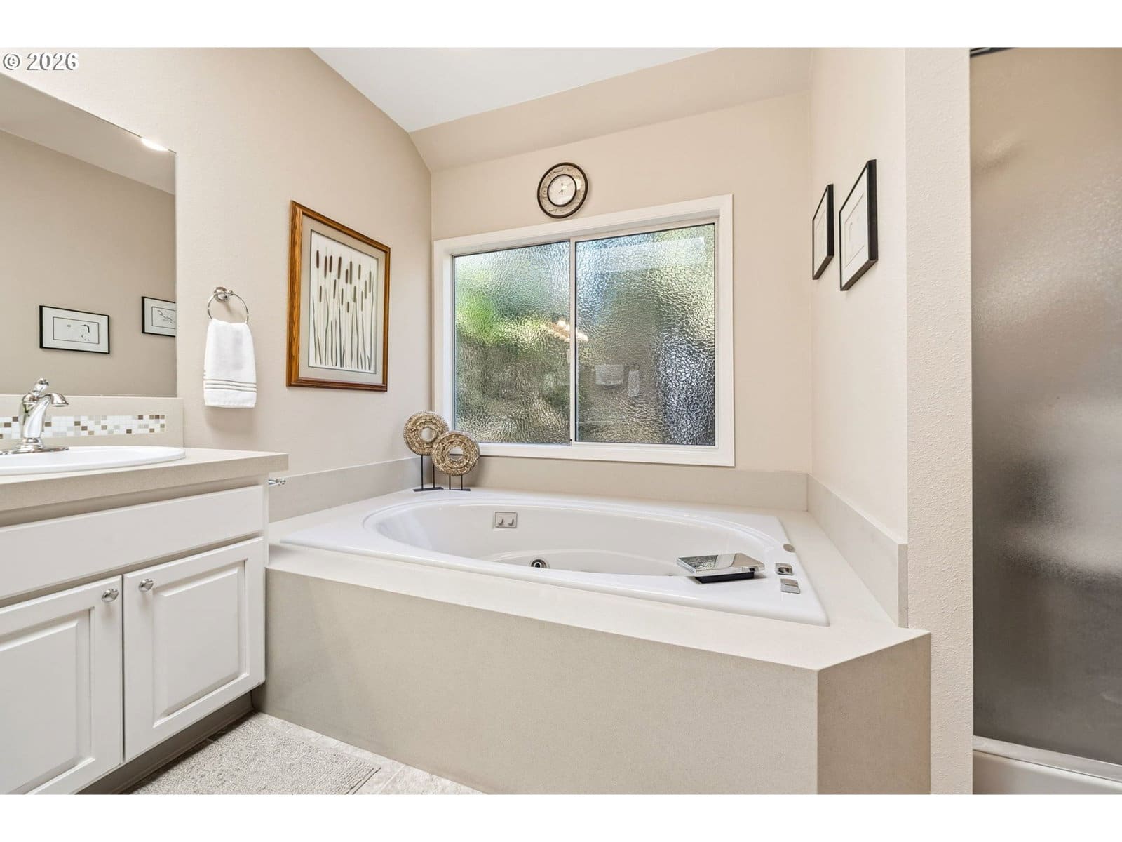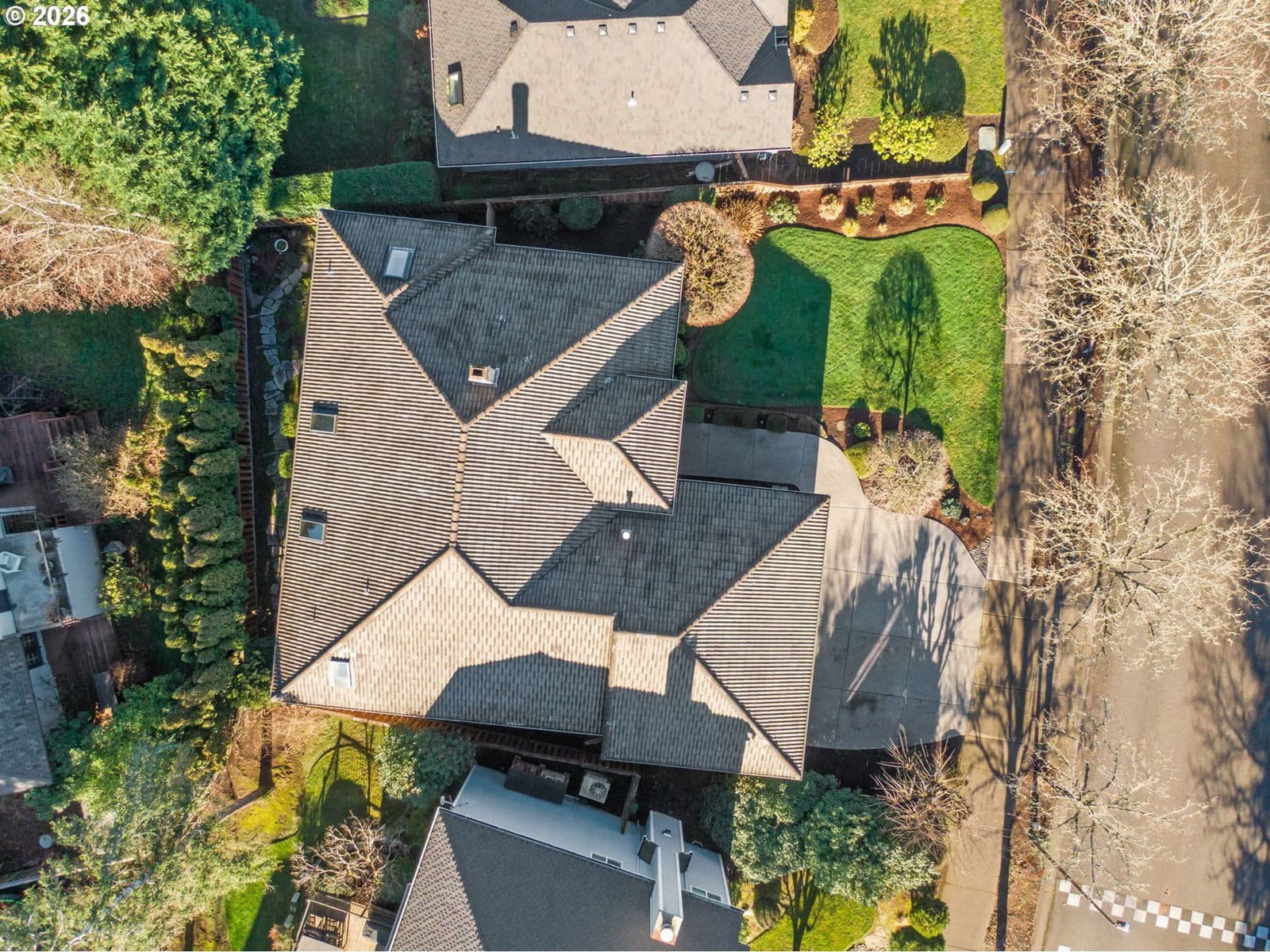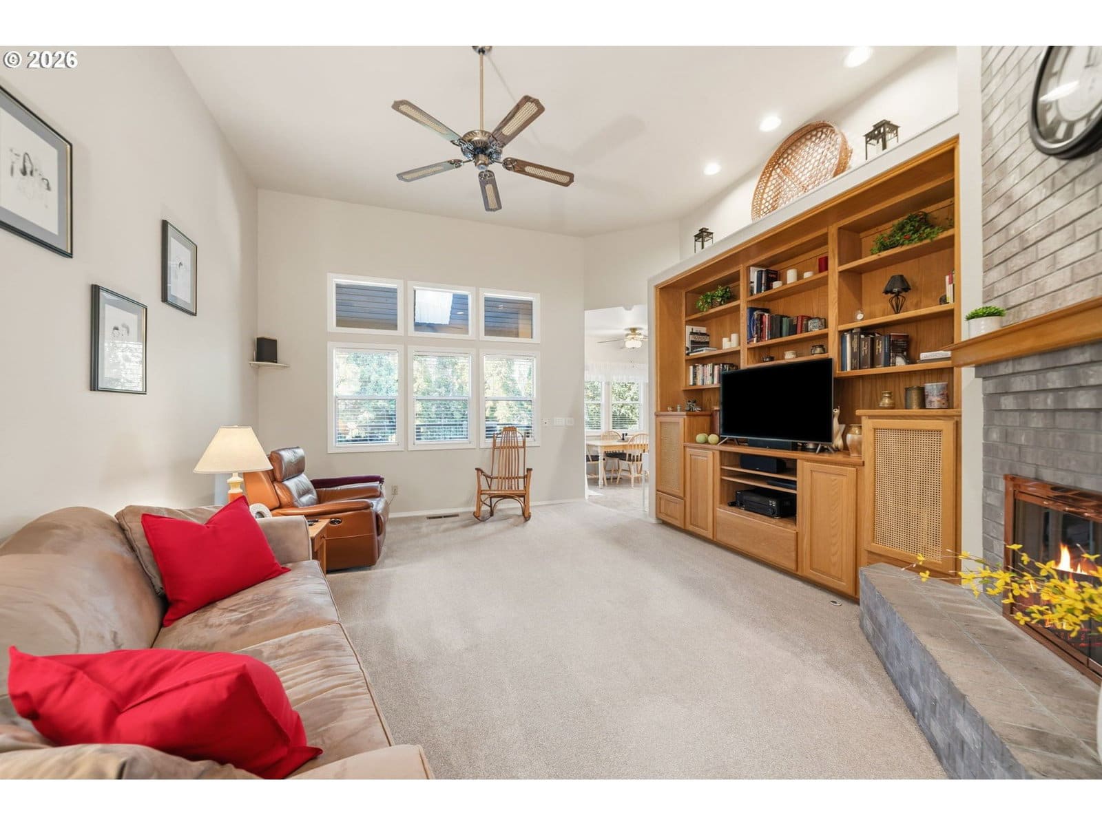 This custom one-level 3BR/2BA is just as neat as a pin and shows like new! Starting w outside, newer driveway, wide pathway to front door, and exterior paint all completed in 2020. Brickwork w ‘eyebrow’ archway leads to covered entry. Once inside black and white tiles on diagonal make for a pleasing and classic aesthetic. Formal living RM off to the right w double-sided fireplace shared w family RM. Continue thru to dining area w alcove for showcase or artwork. Head to kitchen w vaulted ceiling and skylight, white cabs, solid surface counters, 4-burner gas cook island w eating bar, Bosch dishwasher, built-in Whirlpool micro, and convection oven. Appliance garage, pantry, built-in desk, and eating nook. All feels spacious and open, light and bright. From eating nook, access covered wood deck w new railing in 2025. Enjoy outdoor gatherings and BBQ in all seasons! Family RM offers custom floor to ceiling wall unit and fireplace. Tall and vaulted ceilings. Warm neutral interior paint creates a very inviting appeal. Just off family RM double doors lead into a generous RETREAT of a primary suite leads to spacious en-suite offering a soak tub w waterfall adding to a spa-like appeal, separate shower, separate and private toilet. Dual sinks, solid surface countertop, and walk-in closet. This home has been lovingly maintained, lightly lived in w a ‘shoes off policy’. Carpet looks beautiful. HVAC system new in 2023. Beautifully landscaped and professionally maintained w front yard sprinklers. Backyard offers area for above ground gardening and storage space under deck. Largely privatized w fencing and tall arborvitae. Feels wonderfully private both inside and out. 3-car garage w painted floor. Great neighborhood and friendly Home Owner Association. Dues are $483 annually covers common areas and management. Wonderful proximity to Tualatin Hills Park & Rec, trails, parks, EZ access to HWY 26, quick commute to hi-tech, w endless options for shopping, groceries, dining, and more. Jenne Lake Park Project