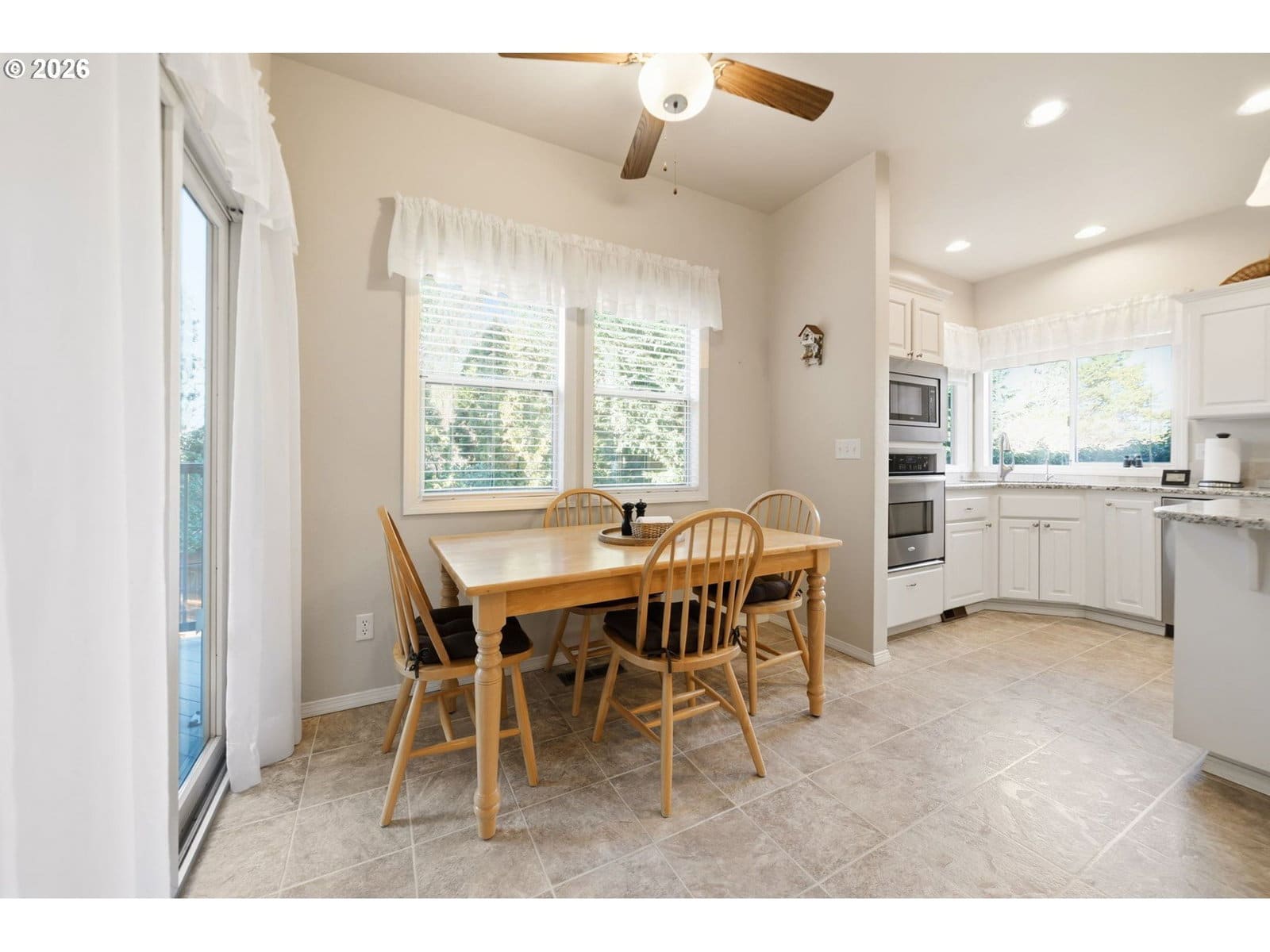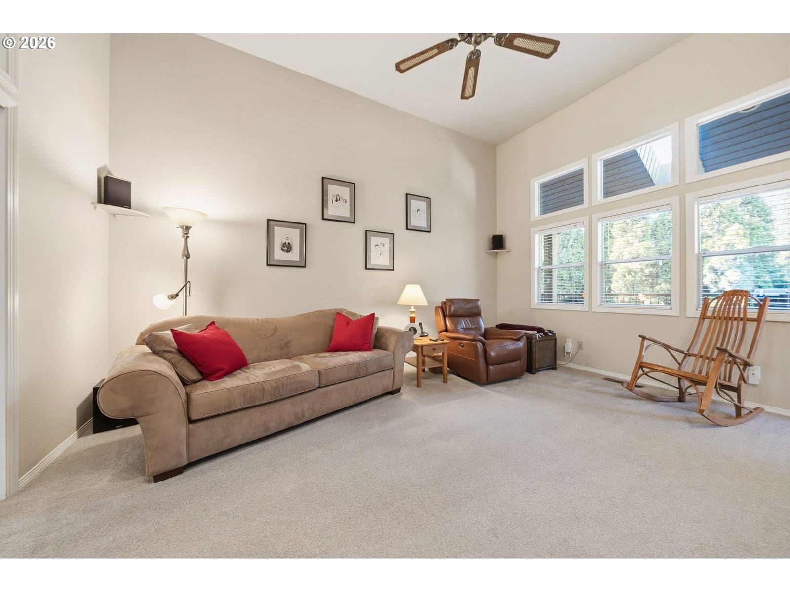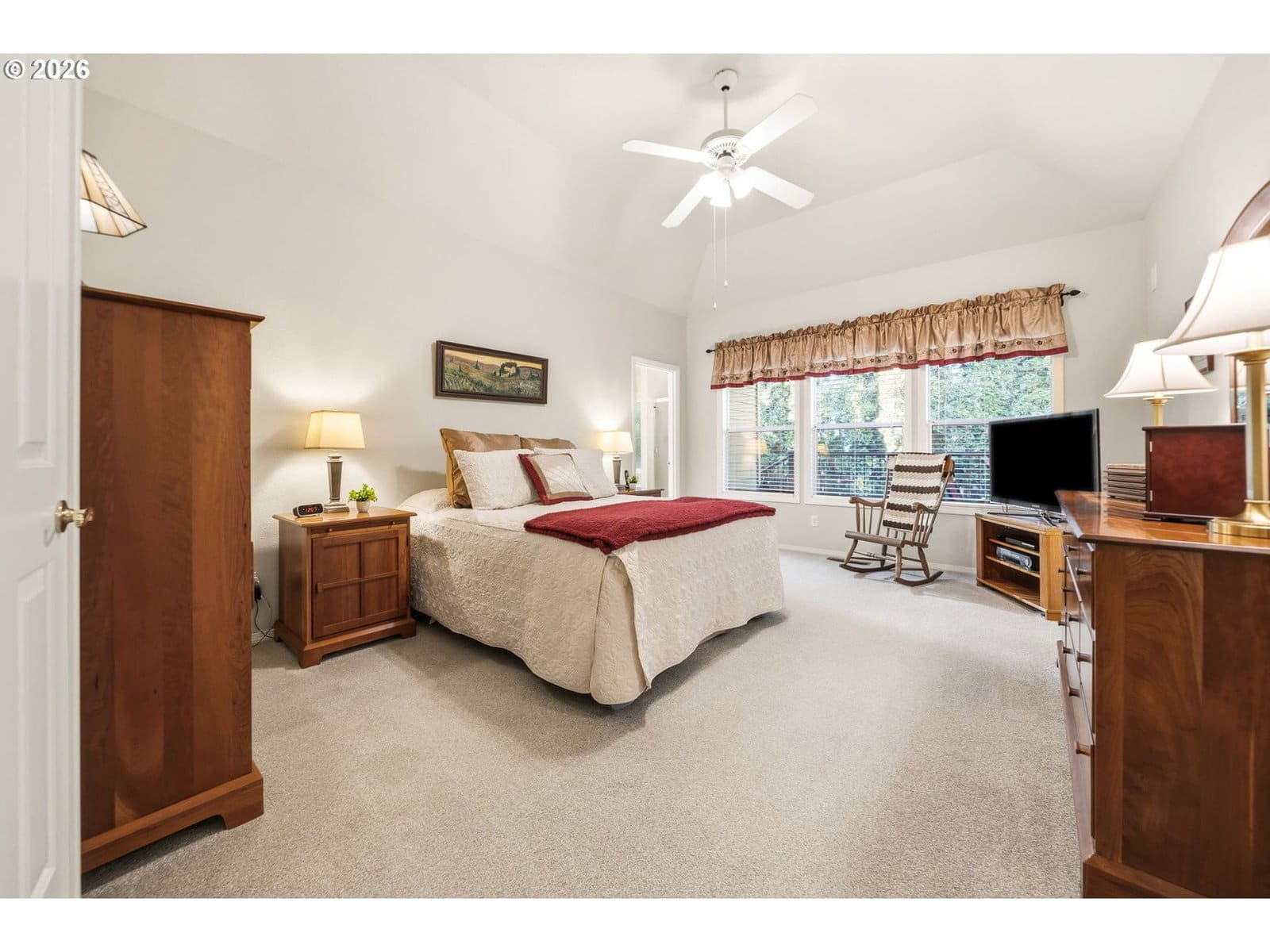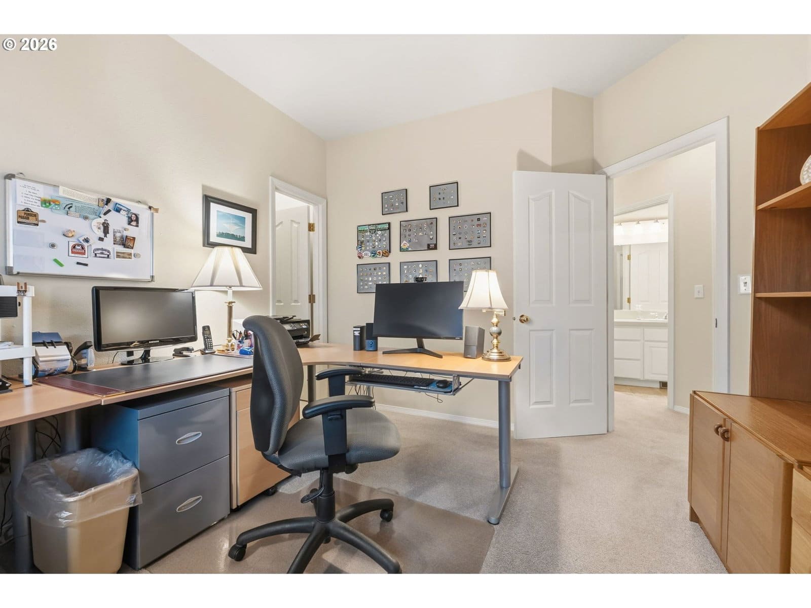 This custom one-level 3BR/2BA is just as neat as a pin and shows like new! Starting w outside, newer driveway, wide pathway to front door, and exterior paint all completed in 2020. Brickwork w ‘eyebrow’ archway leads to covered entry. Once inside black and white tiles on diagonal make for a pleasing and classic aesthetic. Formal living RM off to the right w double-sided fireplace shared w family RM. Continue thru to dining area w alcove for showcase or artwork. Head to kitchen w vaulted ceiling and skylight, white cabs, solid surface counters, 4-burner gas cook island w eating bar, Bosch dishwasher, built-in Whirlpool micro, and convection oven. Appliance garage, pantry, built-in desk, and eating nook. All feels spacious and open, light and bright. From eating nook, access covered wood deck w new railing in 2025. Enjoy outdoor gatherings and BBQ in all seasons! Family RM offers custom floor to ceiling wall unit and fireplace. Tall and vaulted ceilings. Warm neutral interior paint creates a very inviting appeal. Just off family RM double doors lead into a generous RETREAT of a primary suite leads to spacious en-suite offering a soak tub w waterfall adding to a spa-like appeal, separate shower, separate and private toilet. Dual sinks, solid surface countertop, and walk-in closet. This home has been lovingly maintained, lightly lived in w a ‘shoes off policy’. Carpet looks beautiful. HVAC system new in 2023. Beautifully landscaped and professionally maintained w front yard sprinklers. Backyard offers area for above ground gardening and storage space under deck. Largely privatized w fencing and tall arborvitae. Feels wonderfully private both inside and out. 3-car garage w painted floor. Great neighborhood and friendly Home Owner Association. Dues are $483 annually covers common areas and management. Wonderful proximity to Tualatin Hills Park & Rec, trails, parks, EZ access to HWY 26, quick commute to hi-tech, w endless options for shopping, groceries, dining, and more. Jenne Lake Park Project