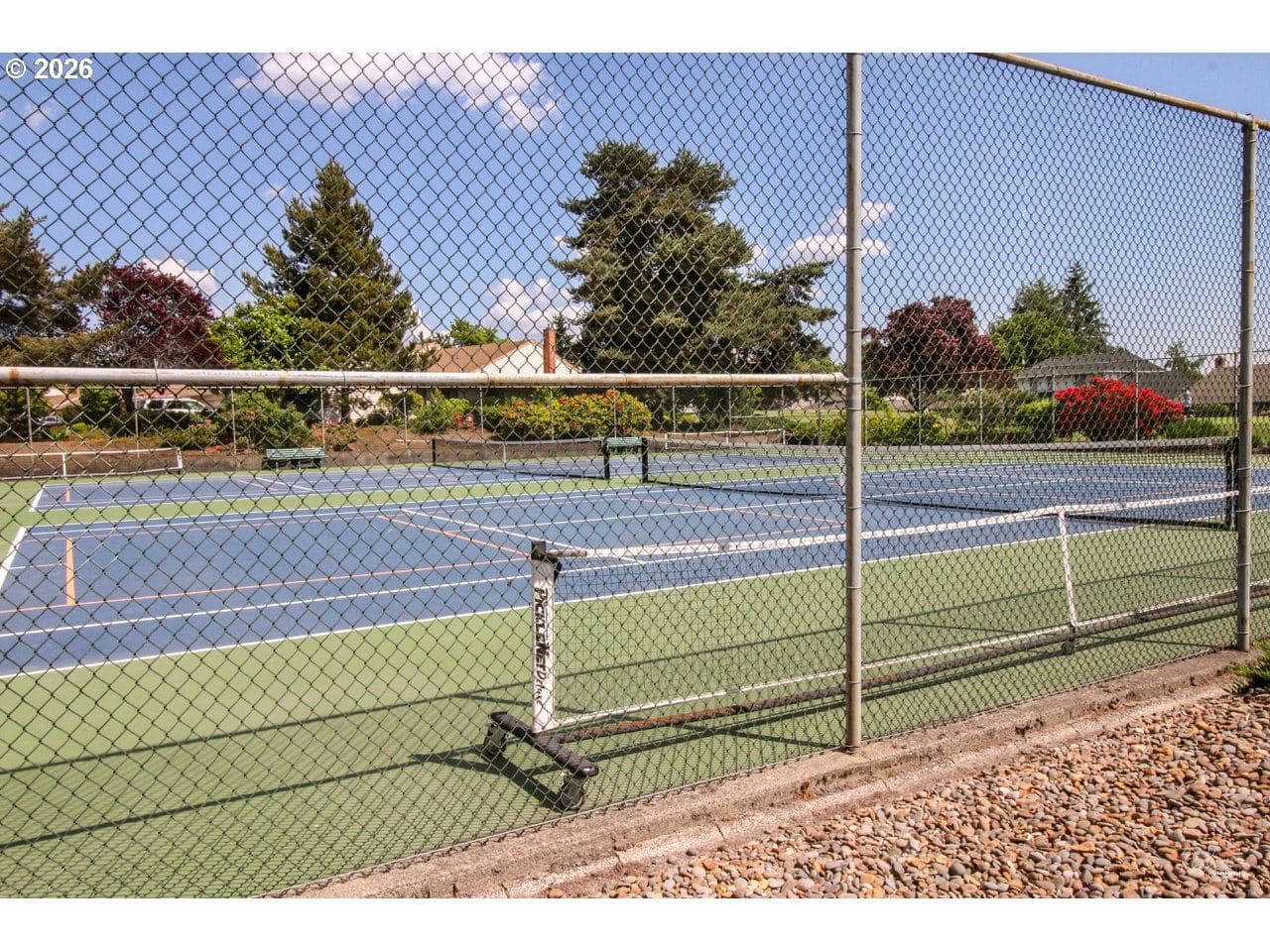 Welcome to The Fountains at Summerfield, a beautifully maintained 55+ community offering comfort, convenience, and exceptional amenities. This secure building features a private entrance to your ground-level, 2-bedroom, 2-bath condo with an open and inviting floor plan. The spacious living room with gas fireplace leads to your south-facing covered patio, where you can enjoy views of the landscaped grounds and fountain. The home also offers a large dining area, an eat-in kitchen with stainless steel appliances and warm wood trim and laminate flooring throughout. The primary bedroom features a private full bath and large closet. The second bedroom is light and bright—perfect for guests or a home office. An oversized detached single-car garage is just steps from your front door and ample guest parking is available. Residents enjoy access to a clubhouse, pool, library, fitness center, tennis and pickleball courts and a 9-hole golf course with scenic ponds and fountains. Ideally located just minutes from shopping, dining, and everyday essentials. Don’t miss this opportunity to enjoy everything Summerfield has to offer!