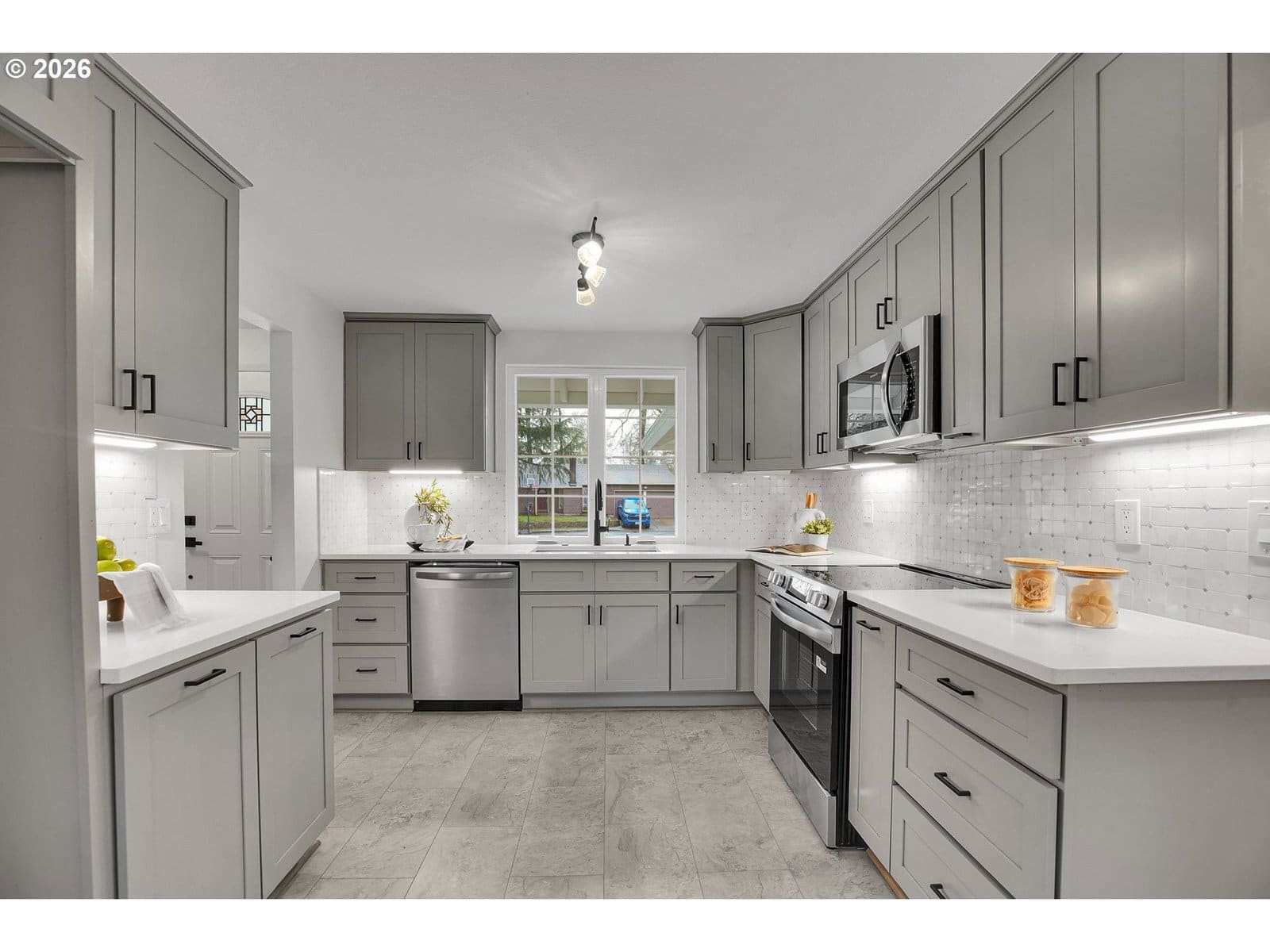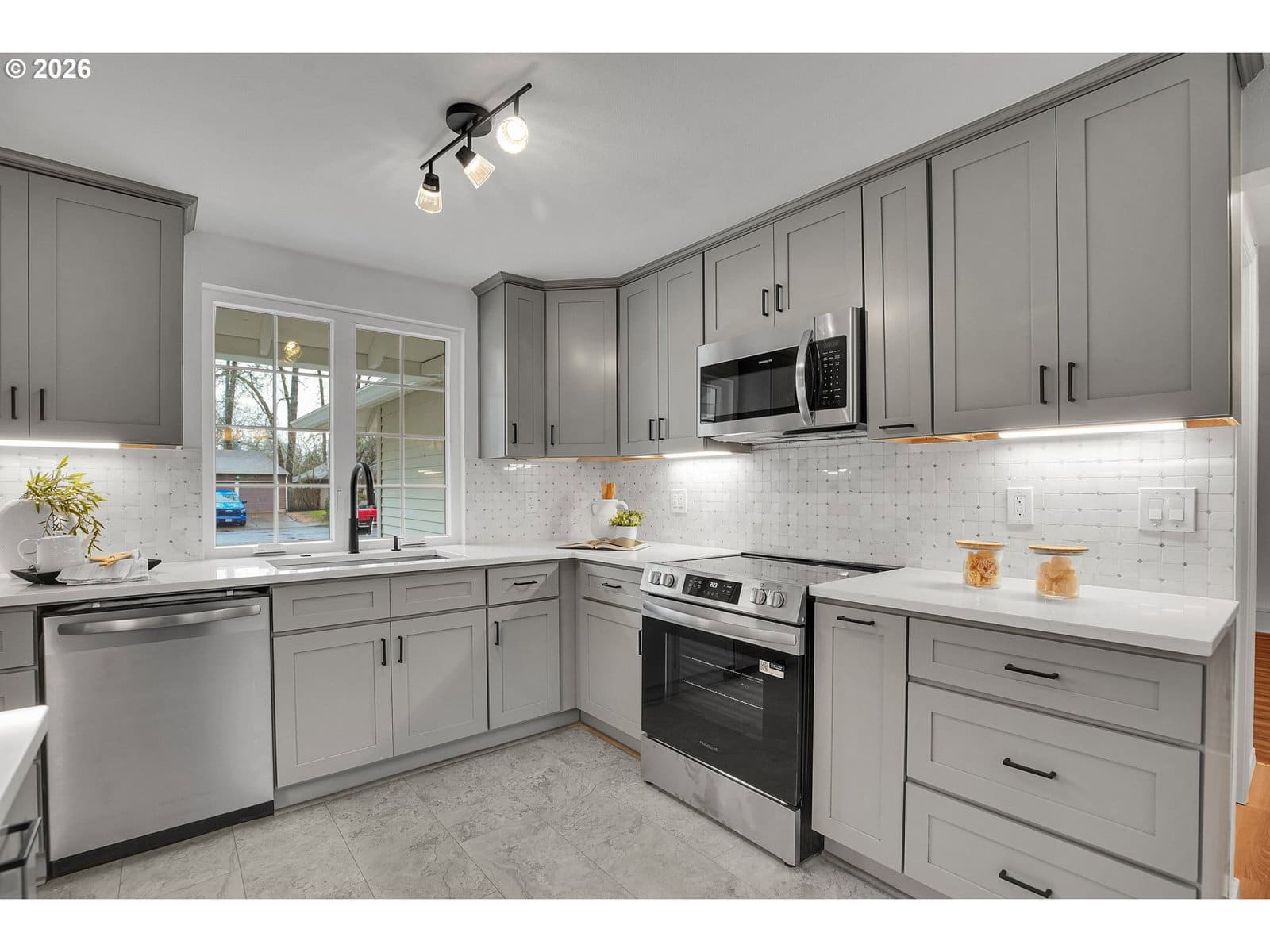 Tastefully updated single-level ranch tucked on a quiet cul-de-sac, minutes to parks, schools, shopping, and dining. Inside, enjoy a bright, inviting layout filled with natural light, a formal living room with a classic brick fireplace, and a separate dining area perfect for hosting. The upgraded kitchen features shaker cabinets with soft-close drawers, quartz countertops, tile backsplash, under-cabinet lighting, and ss appliances. The primary suite includes dual closets and a private en-suite with a designer-tile walk-in shower. A spacious secondary living room adds flexibility for a bonus lounge, home office, or playroom. Fresh interior paint and modern fixtures create a clean, cohesive feel throughout. Major improvements include a brand new roof for added peace of mind. This home has central air conditioning, a gas furnace, and an indoor laundry space. Outside, fresh landscaping boosts curb appeal, while the private backyard offers a nature-inspired setting with a paver patio and firepit. Front and back yard both equipped with zoned sprinkler system. With timeless updates, easy indoor-outdoor living, and a prime location near countless amenities, this home is truly move-in ready. Owner is the listing agent.