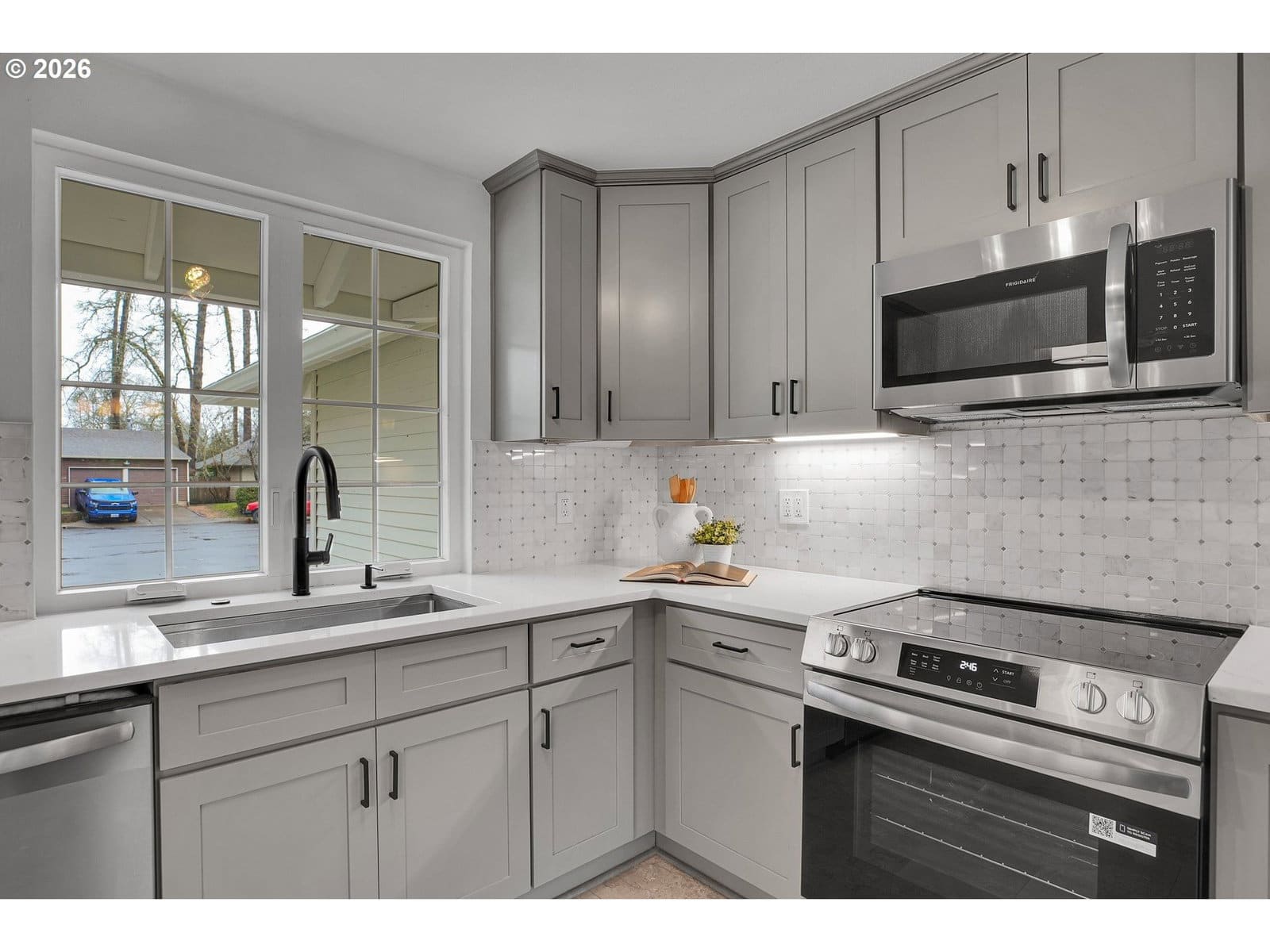 Gas Water Heater, Dishwasher, Disposal, Microwave, Plumbed For Ice Maker