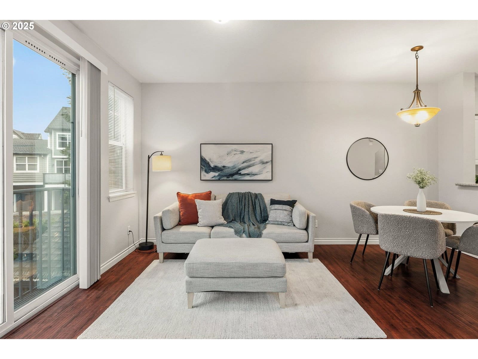 Experience vibrant city living in this modern townhouse-style condo perfectly positioned about a mile east of Downtown Vancouver in the Columbia Way neighborhood. It is only a block from restaurants, businesses, a coffee shop and a bike/walking trail along the river. Condo amenities include a pool, hot tub, workout room and a party room. This home offers an unbeatable location where everything you need is just a short stroll away. The open-concept great room is filled with natural light, featuring a stylish kitchen, dining area and an inviting living room with a Juliette balcony. The private balcony off of the kitchen extends your living space outdoors, perfect for morning coffee or evening sunsets. The spacious primary suite boasts vaulted ceilings and a walk-in closet. A full bathroom and convenient laundry finish off the top floor. A tuck under one car garage adds extra storage and ease of access. Combining design, everyday comfort and an incredible neighborhood, this condo offers the ultimate opportunity to live, work, and play in one of Vancouver’s most desirable areas.