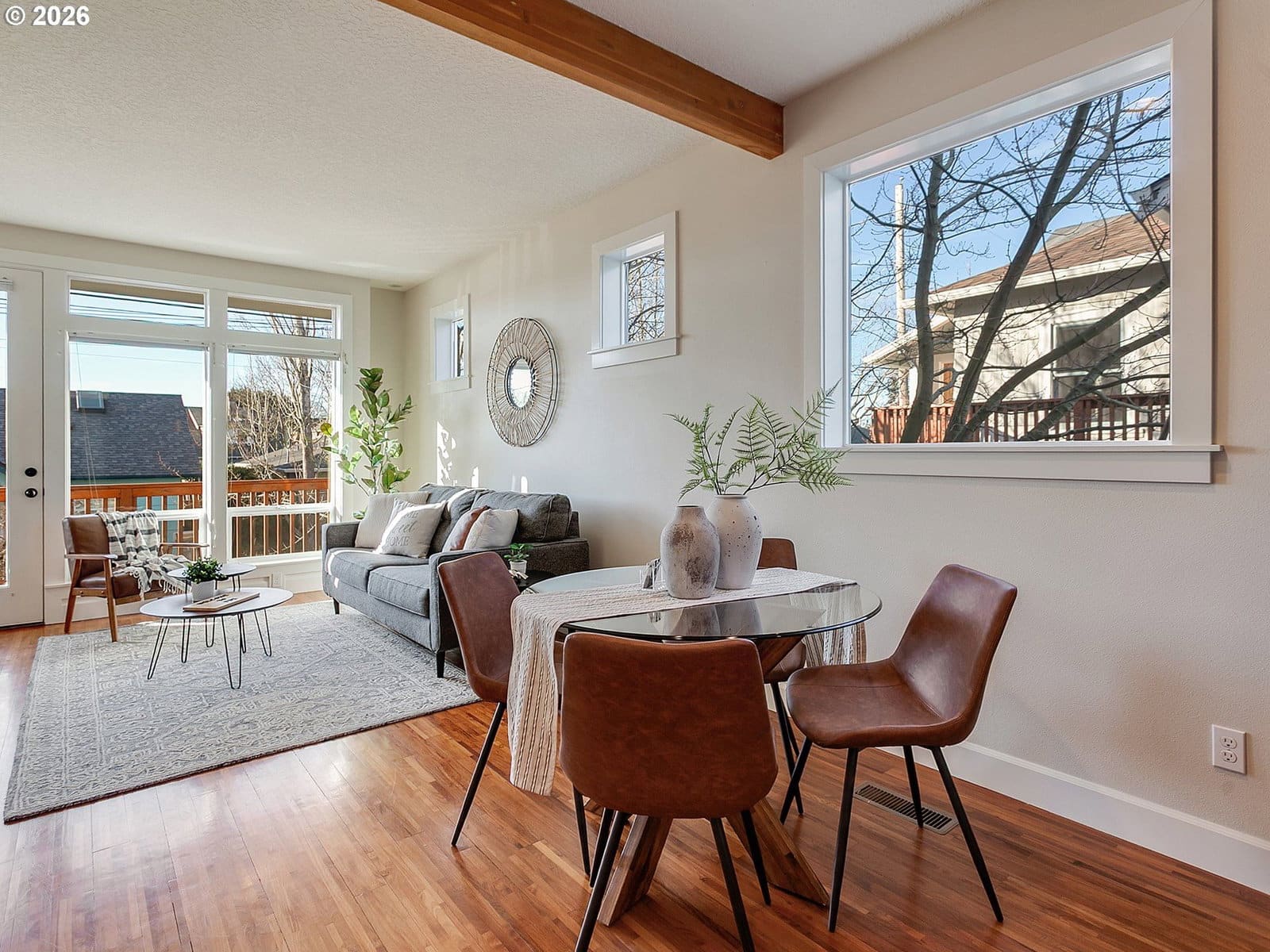 This stylish, light-filled home near Mt. Tabor offers 3+ bedrooms and 2.5 baths with a layout that’s easy to live in and flexible for today’s needs. The lower level works great as a home office, guest space, or business setup. The kitchen has quartz countertops, stainless steel appliances, and a stackable washer/dryer for everyday convenience. Upstairs, vaulted ceilings give the bedrooms an open, airy feel. Enjoy a large front deck that feels like another room, plus a fenced backyard with space to garden, grill, or dine outside. Just blocks to SE Division, Mt. Tabor Park, trails, and all your favorite neighborhood spots. [Home Energy Score = 7. HES Report at https://rpt.greenbuildingregistry.com/hes/OR10200577]