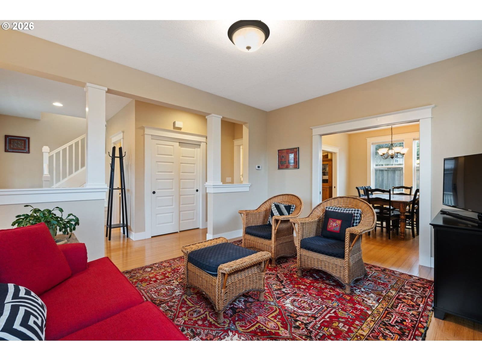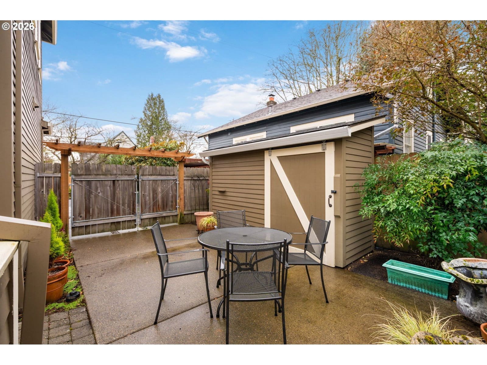 Sweet Hollywood/Rose City Craftsman with all the luxuries of 2009 construction. This home offers three bedrooms and two full baths upstairs, with spacious living, dining, and kitchen areas on the main level. Enjoy high ceilings, detailed millwork, and the peace of mind of modern systems—updated electrical, PEX plumbing, vinyl windows, and full-home insulation. The old-house charm without the old-house upkeep! Period details include large pocket doors on both sides of the formal dining room, a swinging kitchen door, cozy gas fireplace, wrapped windows, and a built-in storage bench at the base of the stairs. The efficient lot provides a long driveway for off-street parking and gated parking that can double as a patio space. Professional hardscaping and landscaping elevate the curb appeal, while a generous front porch and covered back patio make outdoor living easy in every Portland season. Smart storage throughout with an upstairs laundry closet and cabinetry, linen storage, walk-in and double closets in the bedrooms and attractive outdoor shed. Tile bathrooms, quartz kitchen counters, and a brand-new water heater with alarm and 10-year warranty complete the package. Furnace with new control board and roof are regularly serviced. Totally turnkey, private, low-maintenance, and ideally located—this one has it all.