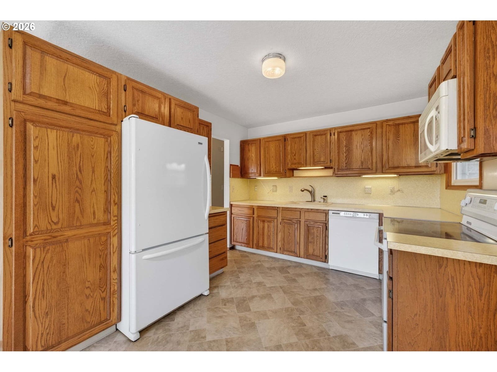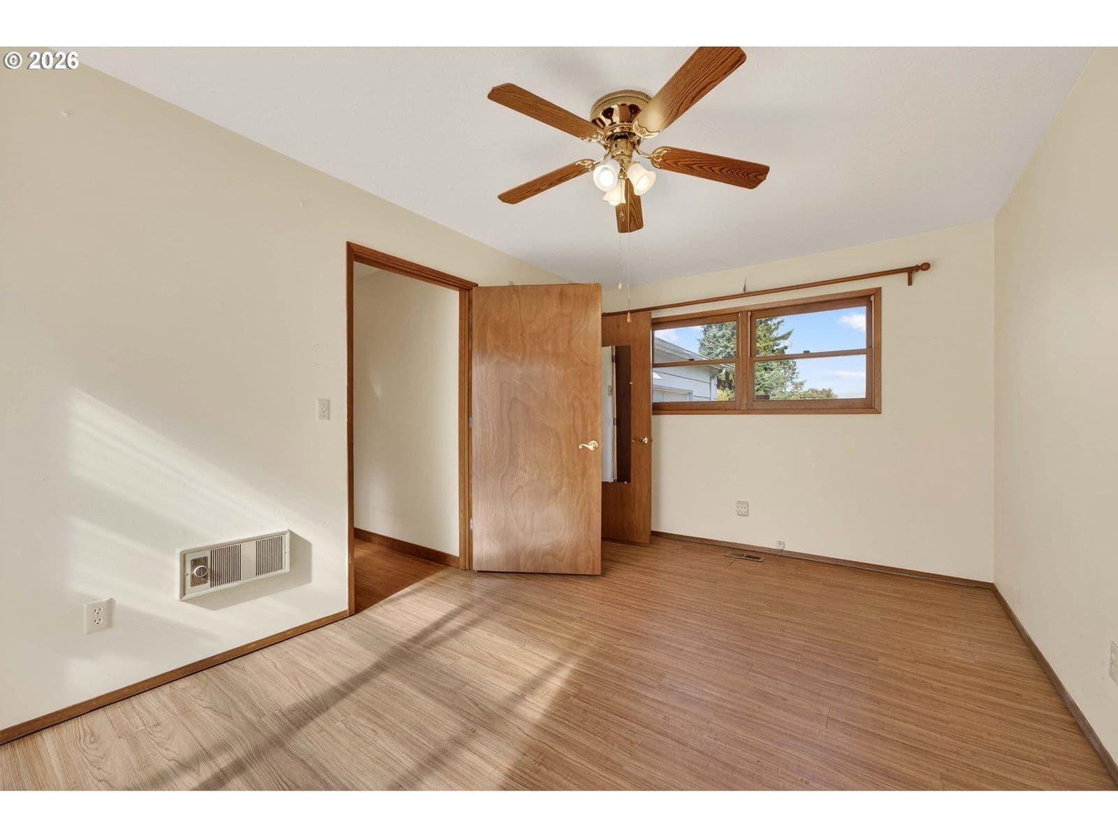 Same owner since 1976! This home sits on a quiet street and has had excellent care! Pride of ownership shows! Situated on a .50 acre lot with a huge 205' deep x 70' wide backyard that backs up to Centennial High School's softball field. Many upgrades in this home. Kitchen cabinets have been replaced with lots of pantry pull outs and details. Large primary bath remodeled with a 5' X 3' roll-in shower. Home is set up for easy wheelchair access and use by its current owner. 4th bedroom has been converted to laundry room, but could be changed back. Complete roof tear off and replacement in 2021. New high-efficiency furnace and A/C in 2024. Enjoy a relaxing indoor/outdoor retreat in the completely enclosed sun porch, measuring 20 X 13. Attached workshop in rear of home is 24 X 23 inside measure and has garage door with opener, outside entrance door, many windows, lots of built-in shelving, work benches, and a pull down ladder up to lighted attic storage. Whole house has extensive hardwoods and laminate floors. Close to shopping, restaurants, schools, and Lynchwood Park. Unobstructed Mt. St. Helen’s views! Lot for sale next door (.47 acres) $199,900 RMLS# 284933270. [Home Energy Score = 6. HES Report at https://rpt.greenbuildingregistry.com/hes/OR10242809]