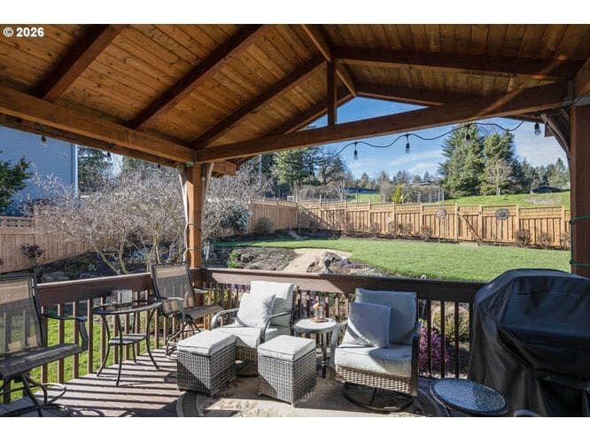 Nestled in the heart of Oregon wine country, this beautiful Dundee Hills home at 1038 SW Arrowhead Place, Dundee, Or. offers warmth, comfort, and exceptional livability on a quiet cul-de-sac. Built in 2002 and meticulously maintained, this inviting 2,104 sq. ft. residence features 4 bedrooms and 3 full bathrooms with a thoughtful layout designed for everyday living and entertaining. The immaculate kitchen boasts granite countertops, tile backsplash, abundant counter space, and generous storage. The adjacent dining area opens to a covered deck—perfect for entertaining or relaxing while enjoying the beautifully landscaped, fenced backyard that opens to a park and additional green space. The spacious upper family room features large windows that capture peekaboo mountain and valley views, along with a cozy gas fireplace that creates a welcoming gathering space. The primary bedroom with en suite bath is conveniently located on the main level. The lower level includes an excellent bonus room with great potential for a theater or media room, along with a generously sized bedroom, full bathroom, and laundry area—ideal for guests or flexible living. Additional highlights include a deeper-than-average garage providing extra storage, new exterior paint (2024), new interior blinds (2025), a new gas water heater (2023), and front and backyard sprinkler systems. New sod was installed in the yards in 2025 for easy maintenance. Sidewalks on one side of the home lead to the backyard, offering convenient access. The garage refrigerator and freezer are also included in the sale. There is a gas line on deck for a BBQ hook up. Seller has stated HOA has no board in place for Falcon Crest HOA and dues are no longer being collected and all buyers are to verify and do all own due diligence themselves. This is a true Dundee Hills treasure—offering comfort, quality, and an unbeatable location in wine country.