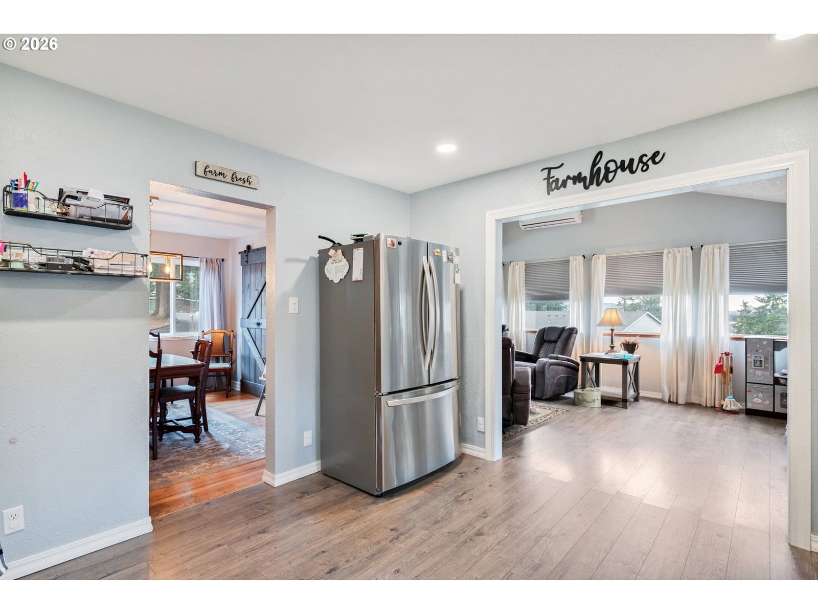Rare opportunity to own a beautifully upgraded 2,800+ sq ft home on nearly an acre in town with stunning city views. This expansive home has been extensively renovated with a NEW roof with solar panels, updated windows, fresh interior and exterior paint, new flooring, electrical, and plumbing, offering modern comfort and peace of mind. The home features a completely remodeled kitchen with new stainless-steel appliances and a HUGE walk-in pantry, flowing seamlessly into spacious living areas perfect for entertaining. Retreat to the oversized primary suite with walk-in closet, creating a comfortable private sanctuary. Stay cozy with a charming woodstove and enjoy year-round efficiency with new ductless heat pumps. The property offers exceptional versatility with an oversized attached 2-car garage, detached shop, and large outbuilding ideal for a home office, studio, or hobby space. An attached 1 bed / 1 bath ADU with kitchen and private entrance through the garage provides outstanding flexibility for multi-generational living, guests, or rental income. Set behind a gated entry and fully fenced for privacy, the grounds feature fruit trees and expansive outdoor space—all while being conveniently located right in town. A rare combination of space, upgrades, versatility, and views.