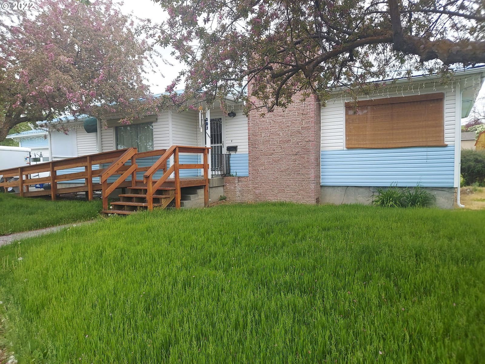 Double lot on corner. 2307 SF 2 bd. 1 ba. on main floor, metal roof, fireplace. 2 rooms used as bd plus bath in basement. NAVION Propane fired instant hot water & propane heat.Fireplace. Large oversized garage. Covered patio. RV parking. Chip sealed drive & xtra parking area.