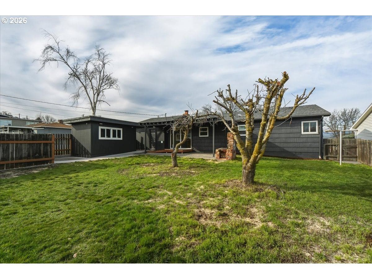 Beautifully remodeled single story on large corner lot in excellent established location.Open bright and light living room with cozy fireplace. NEW paint in and out. NEW luxury vinyl plank flooring through-out. Remodeled kitchen features NEW stainless appliances, NEW cabinets, NEW quartz counters. Lots of counter space. 3 bedrooms plus bonus/4th bedroom. dining room. forced air furnace. Covered patio and built in BBQ for entertaining.BIG fenced yard with a spacious storage building Extra parking on side. Walk to town from this convenient location!