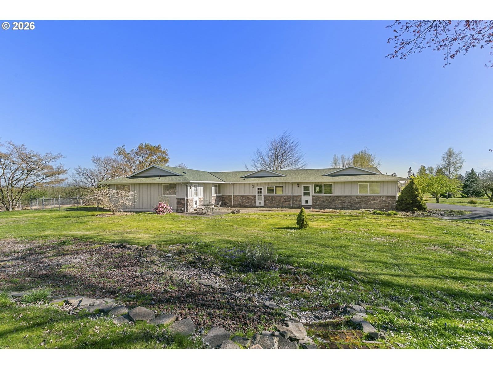 OPEN HOUSE 1/4/26, 1:00-4:00 PM. Welcome to your own piece of Oregon history and charm in Butteville, one of the state’s oldest communities and just moments from Champoeg State Park. This rare single-level home sits on over 5 acres of beautifully maintained land, offering space to live, grow, and create the lifestyle you’ve been dreaming of. With dual living potential, the thoughtful floor plan includes five bedrooms and three full bathrooms, featuring two primary suites—ideal for multi-generational living, guests, or simply spreading out in comfort. The home is spacious, warm, and move-in ready, yet it also includes remodel plans, allowing you to customize your dream home. A newer roof & HVAC system provides peace of mind, while future upgrades enable the property to grow with you. Step outside to explore the incredible amenities. A detached three-car garage and a massive 60x30’ shop open up endless opportunities for hobbies, projects, or storage. The paved driveway makes for easy access, and RV parking with full hookups means you’re always adventure-ready—or prepared to host friends and family in style.The land itself is a highlight. Pick fresh fruit from your own orchard, enjoy the peaceful sounds of the countryside, and watch sunsets from the back porch. With over 5 acres, there’s room for gardening, animals, or simply relaxing in your private retreat. Living in Butteville means being part of a community rich in history. Just down the road, Champoeg Park offers hiking, biking, camping, and river access—while also being the historic site where Oregon’s provisional government was formed. This property offers a rare opportunity to live in close proximity to both nature and history, while enjoying modern conveniences nearby. Space, history, flexibility, and opportunity—this home offers the best of it all.
