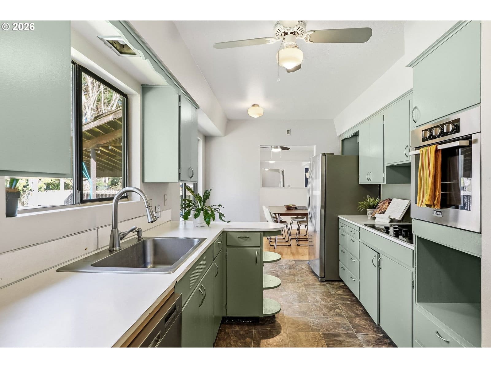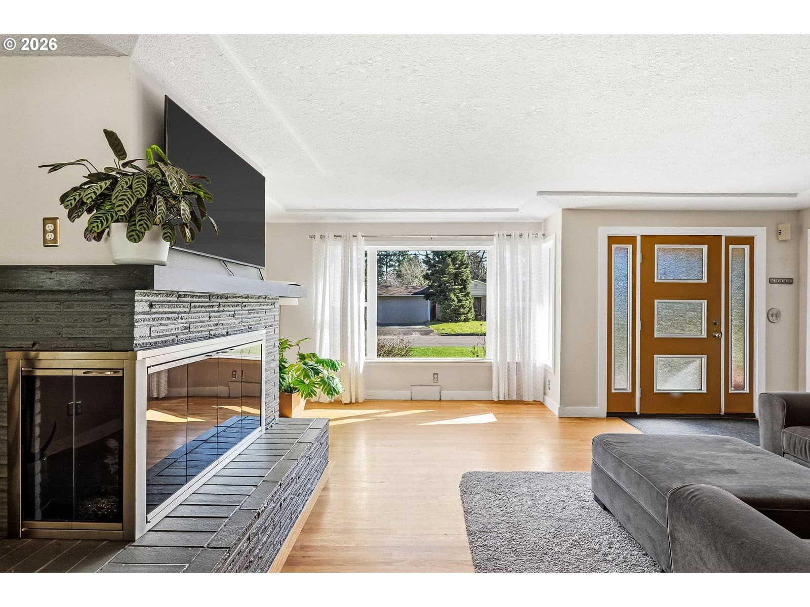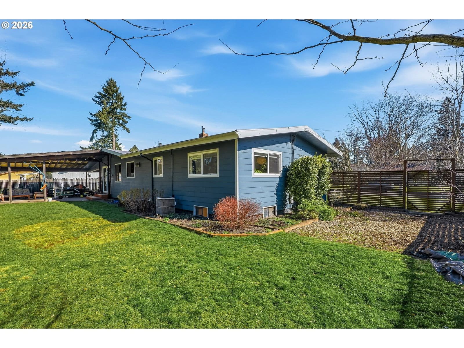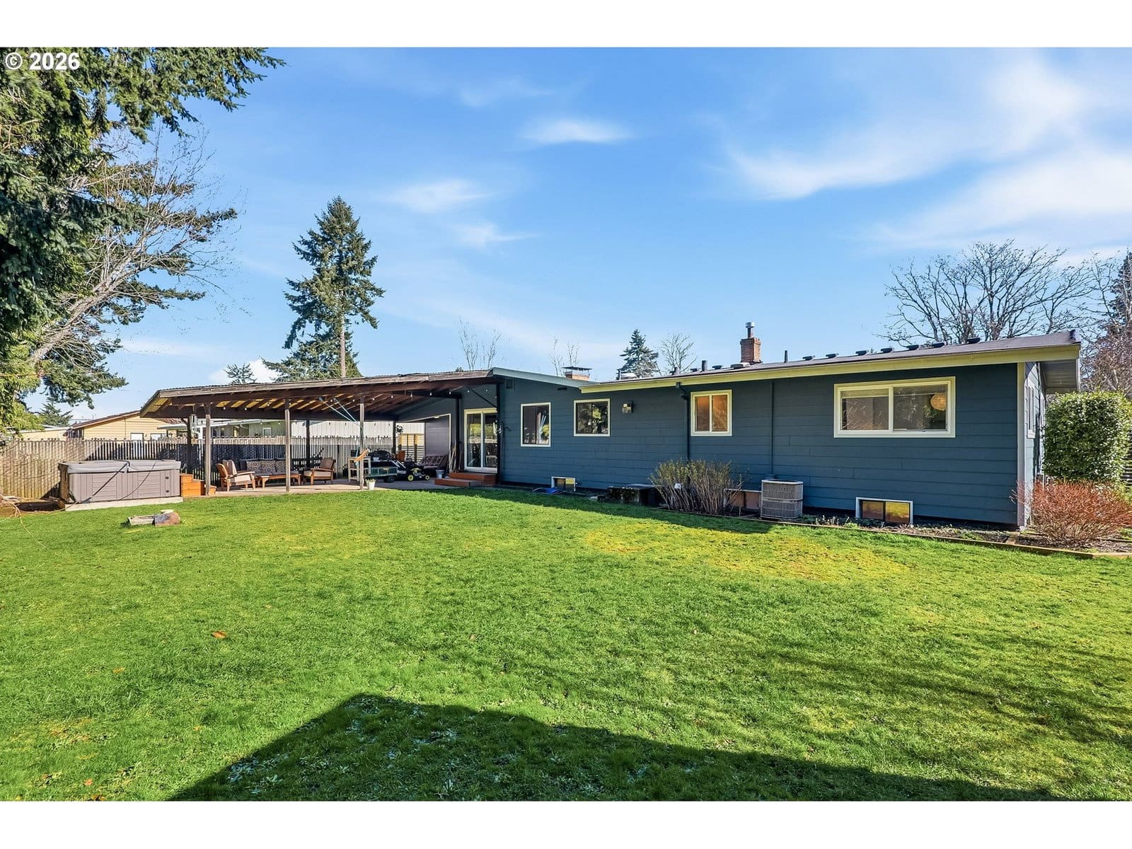 Welcome home to this warm and inviting ranch-style retreat offering timeless charm with modern updates throughout. Beautiful hardwood floors flow seamlessly across the main level, creating a bright and welcoming atmosphere the moment you step inside. The freshly painted kitchen features stainless steel appliances and stylish finishes, making it a perfect space for everyday living and entertaining. Three comfortable bedrooms are thoughtfully laid out on the main floor, complemented by two stunning brick fireplaces — one gas and one wood-burning — adding both character and cozy ambiance to multiple living spaces. Step outside to a charming front deck that instantly feels like home, while the expansive backyard offers endless possibilities for relaxing and gathering. Enjoy the stamped concrete patio, pergola, and hot tub — ideal for summer evenings and year-round entertaining. The large outbuilding with electricity provides incredible flexibility for a workshop, hobby space, or extra storage. The partially finished basement expands your living options with a cozy family room, dedicated laundry space, and an additional room perfect for a home office, gym, or guest area. With modern paint colors, hardwood floors throughout, thoughtful updates, and exceptional indoor-outdoor living, this home offers both comfort and opportunity in a truly inviting setting. A rare and incredible opportunity to own a property that feels like home the moment you arrive. [Home Energy Score = 3. HES Report at https://rpt.greenbuildingregistry.com/hes/OR10245435]