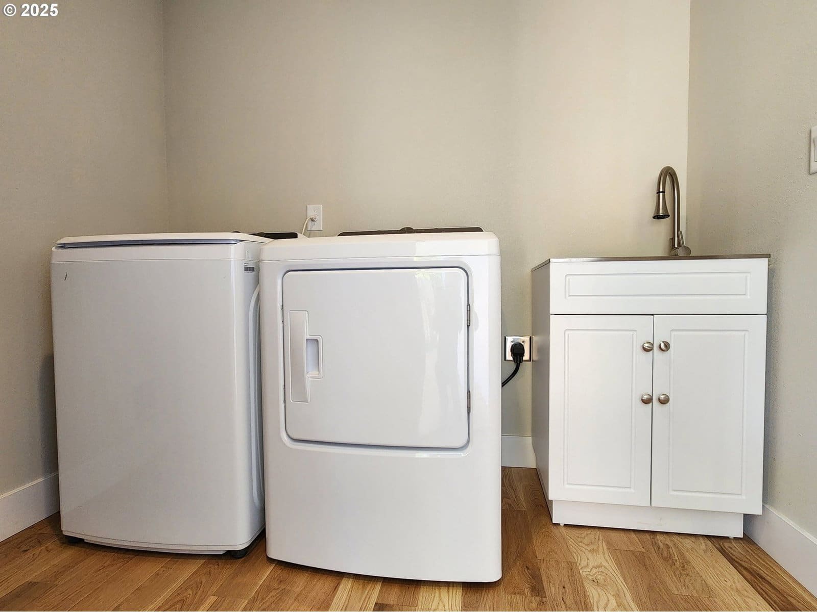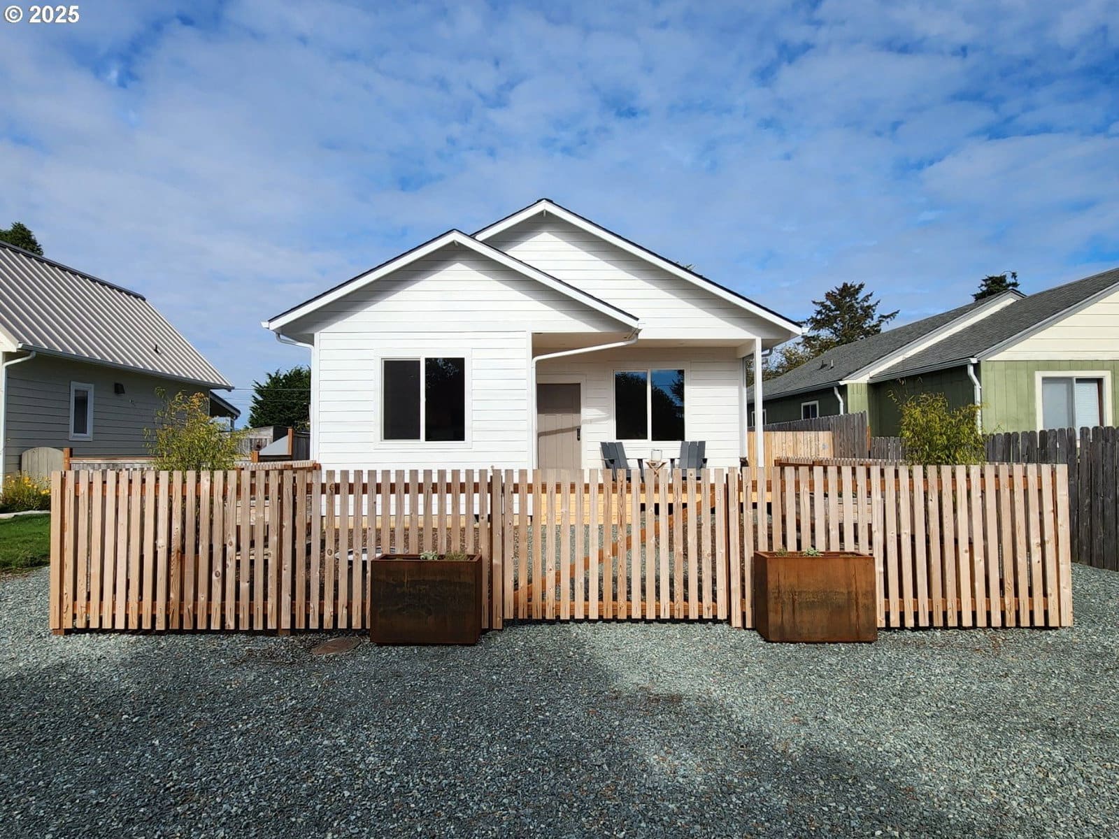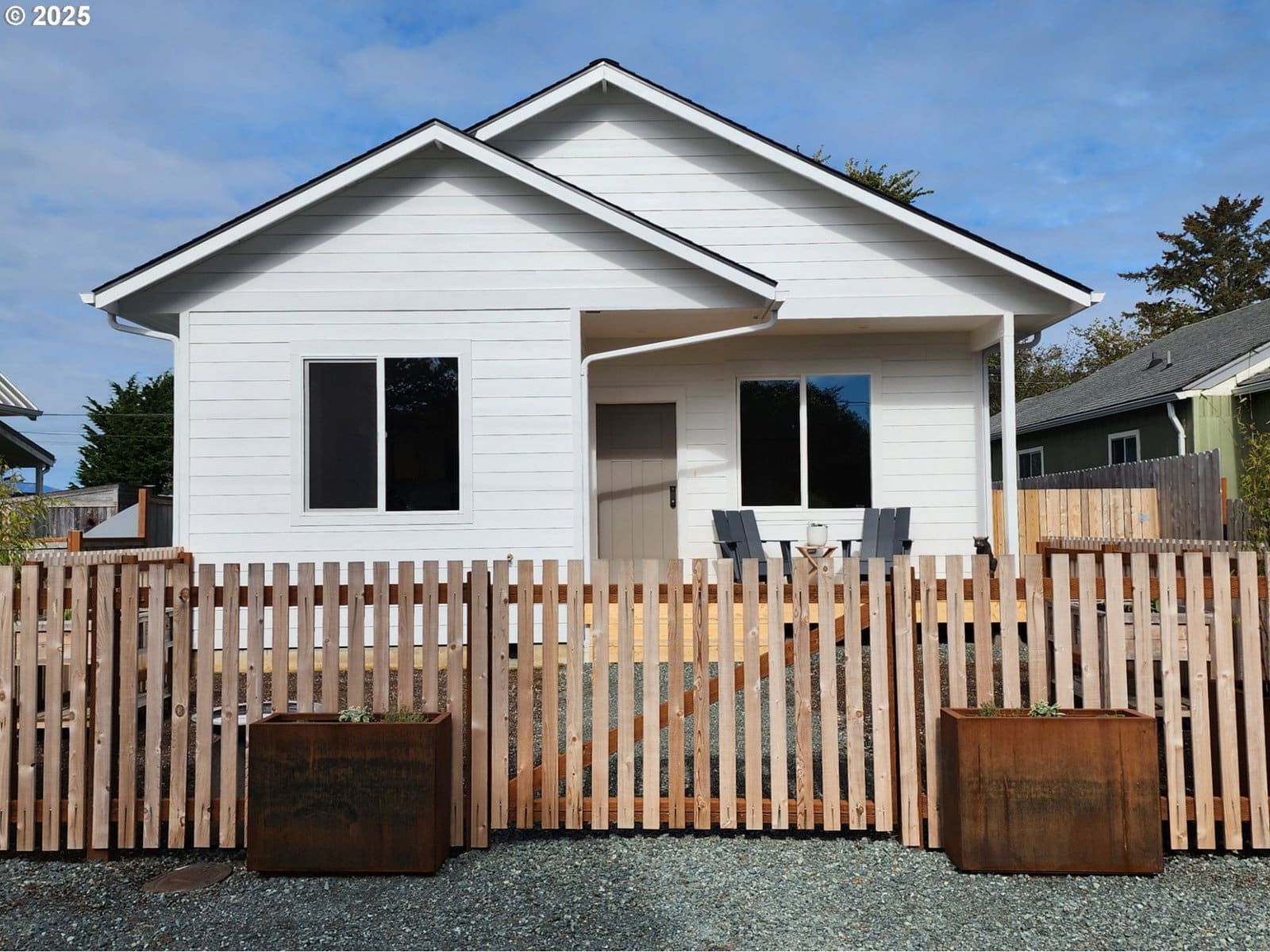 Welcome to this stunning 2-bedroom, 2-bath home built in 2023, offering the perfect mix of modern comfort and coastal charm. Located just minutes from Old Town Bandon and the scenic boardwalk, you’ll enjoy the convenience of in town living with shopping, dining, and the beach all close by. Step inside to find solid oak flooring throughout and an abundance of natural light that enhances the home’s warm, inviting feel. The kitchen features beautiful granite countertops, warm wood cabinetry, and an open layout that’s perfect for entertaining. The primary suite includes a full bath with a walk-in shower, a spacious walk-in closet, and stylish barn doors for added character. Enjoy outdoor living on your private back patio with new fence. An attached garage with alley access adds both convenience and functionality. Recent upgrades include new siding, floors, exterior paint and new front and back decks. Built to last and designed with comfort in mind, this home offers the best of modern living in a prime Bandon location.
