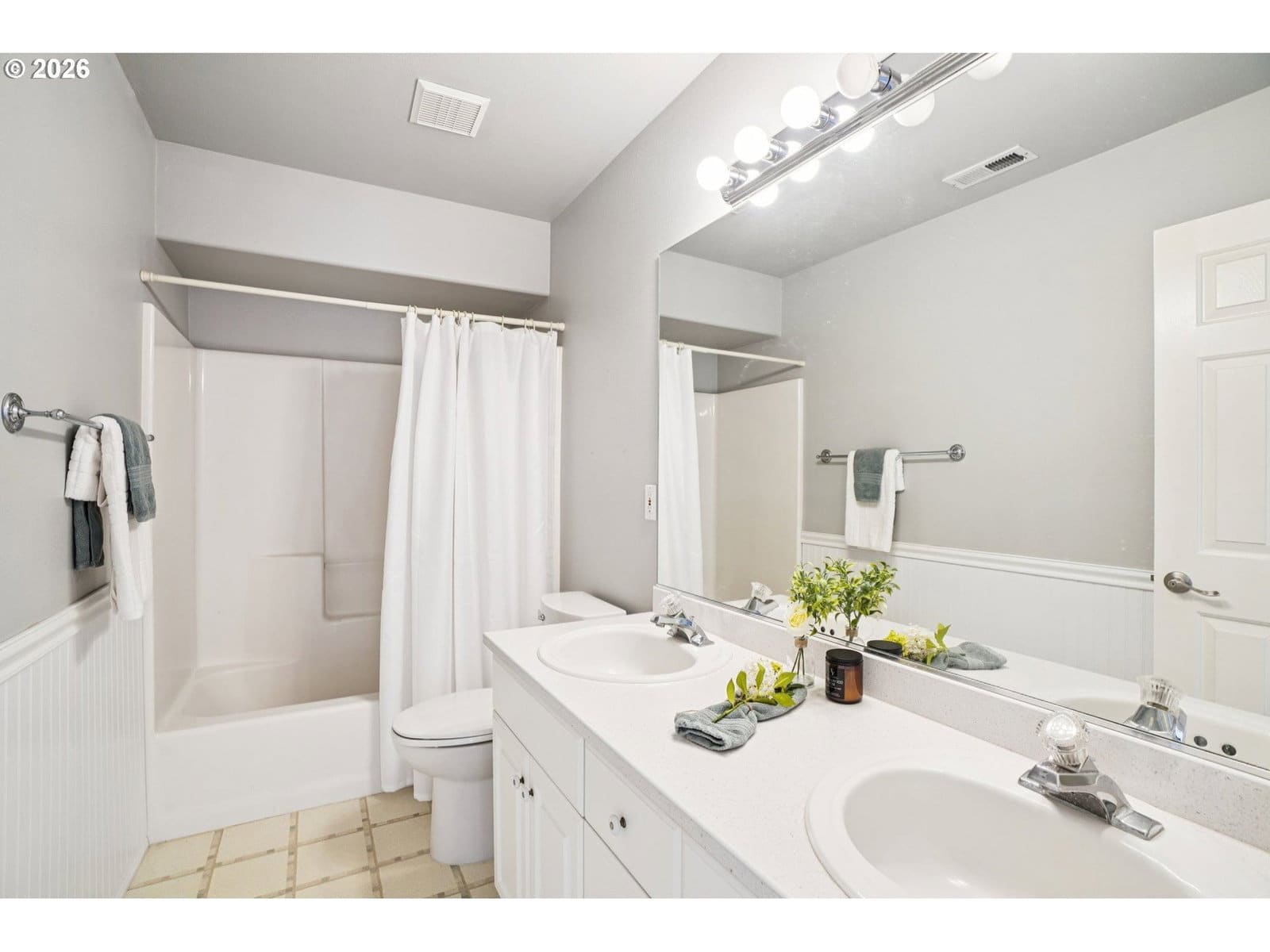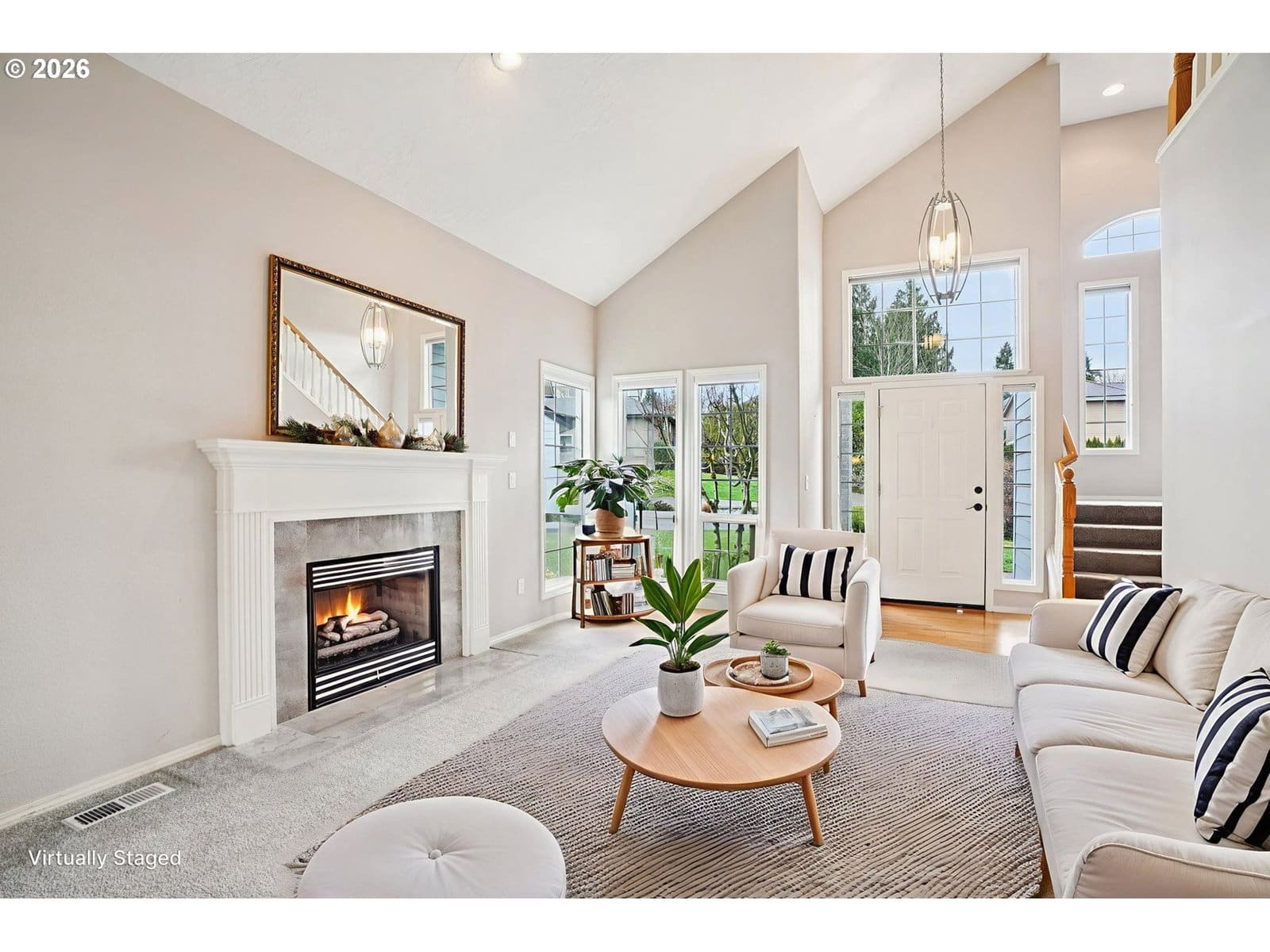Tucked away on a quiet cul-de-sac, this well-maintained 2-story home offers privacy, functionality, & an exceptional location. Situated on a greenbelt lot backing to Cougar Creek, the property provides peaceful territorial views & added privacy, w/ convenient access just one block away to the Cougar Creek path.The versatile floor plan includes a Den/bdrm on the main level, ideal for guests, multi-generational living, or a home office. Hardwood floors enhance the main living areas, & the layout offers comfortable living & entertaining spaces throughout. Enjoy the private backyard setting with a deck designed for outdoor gatherings & relaxation. Additional features include a 3-car garage, newer roof, newer exterior paint, & central air conditioning for year-round comfort. The home is plumbed for central vacuum & pre-wired for a security system. Located within a top-rated school district, this property combines a desirable setting with thoughtful updates and strong curb appeal.