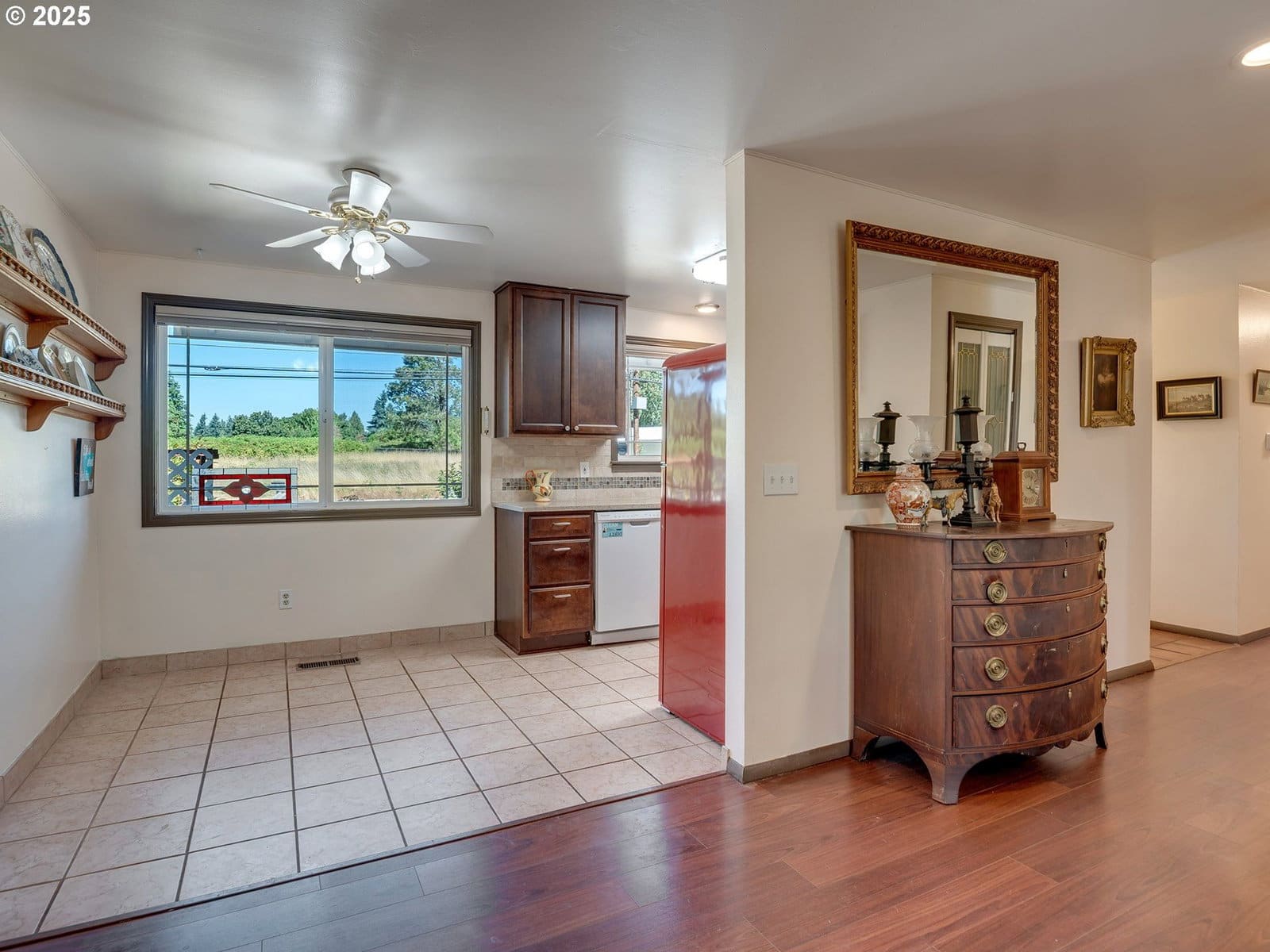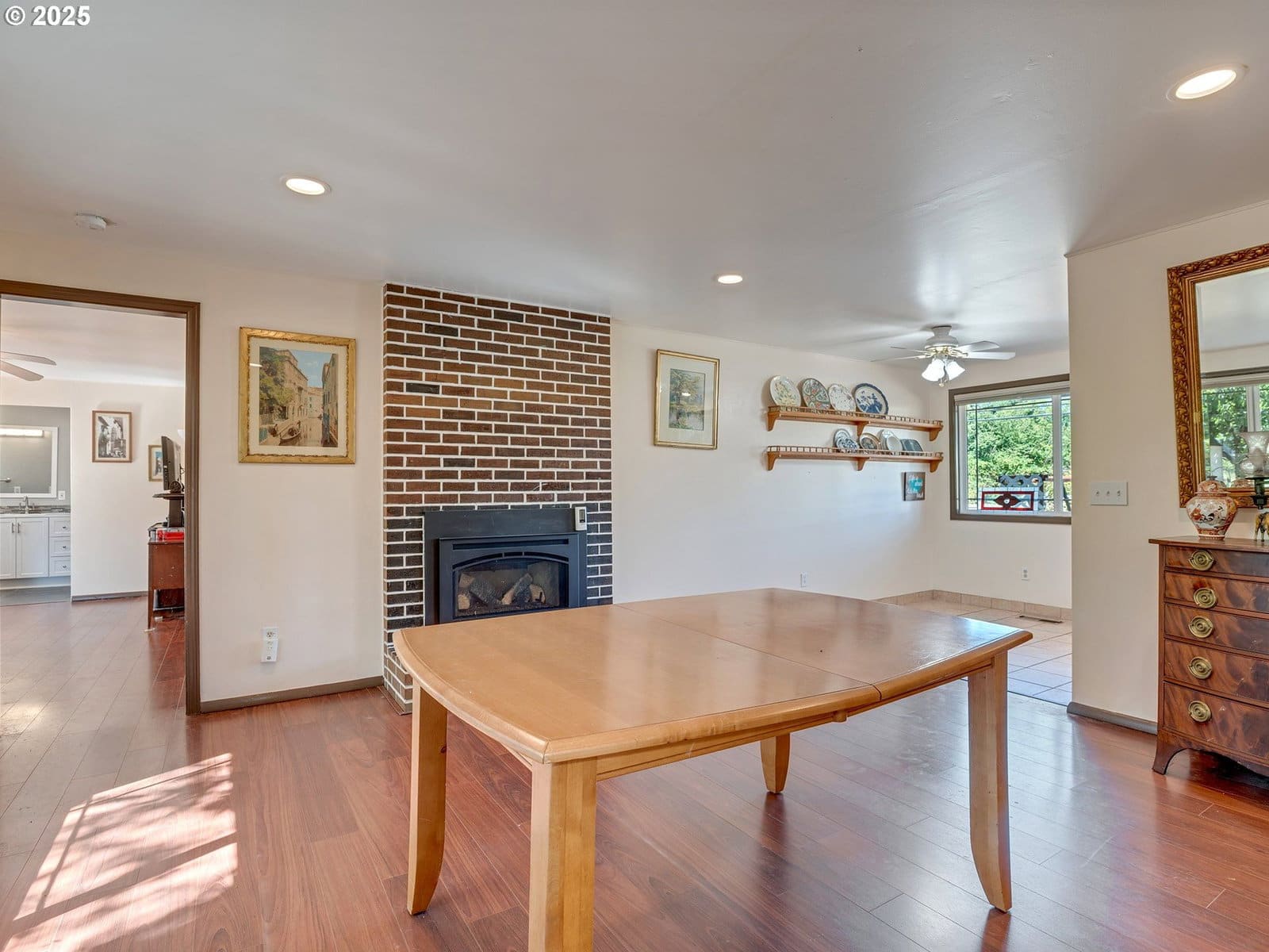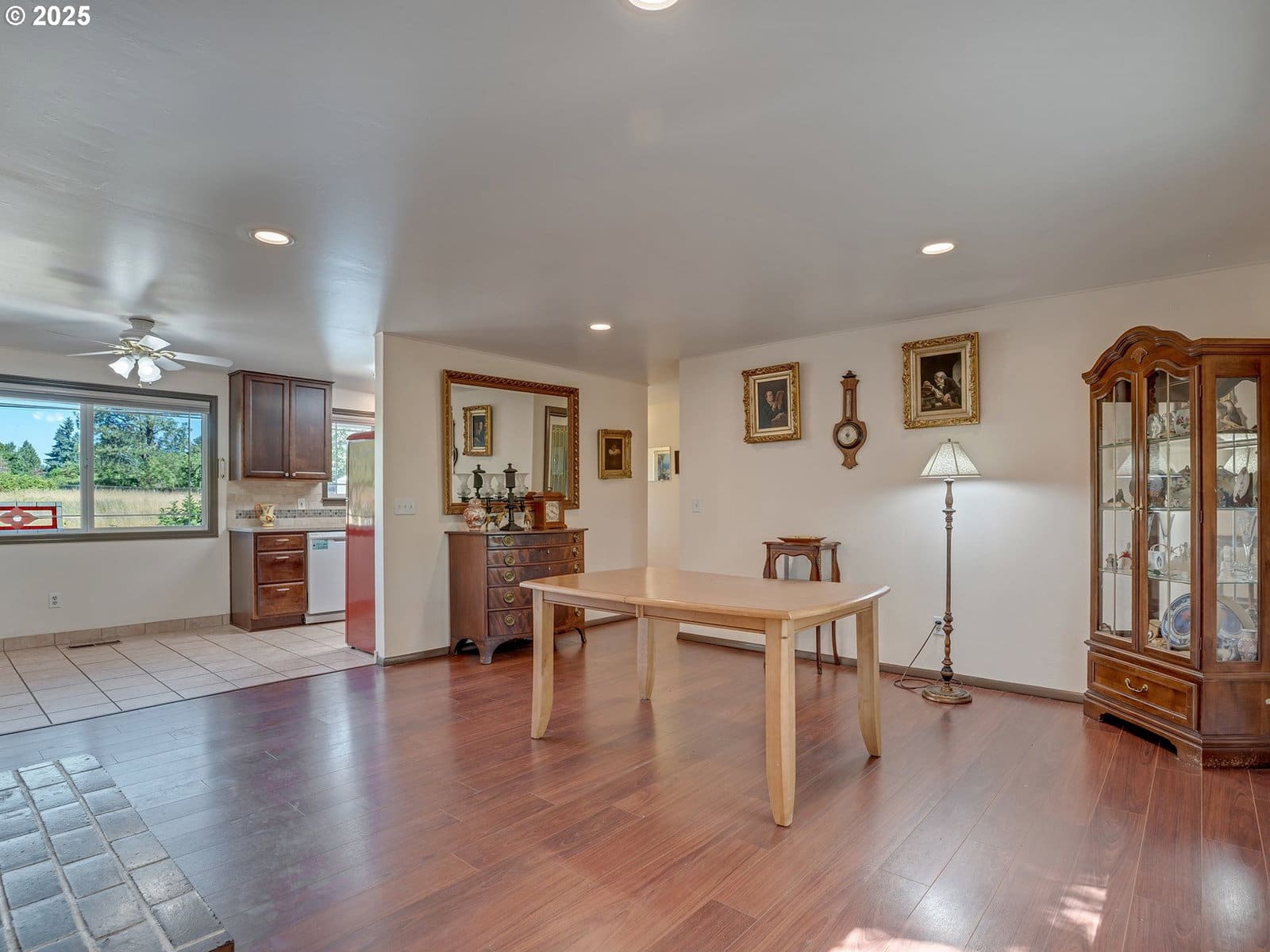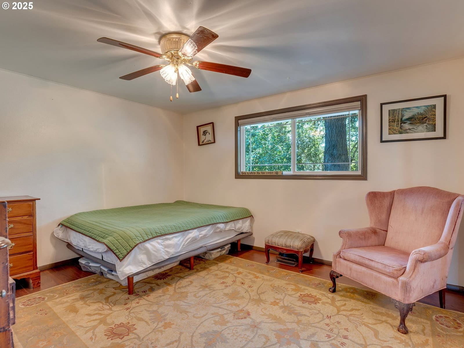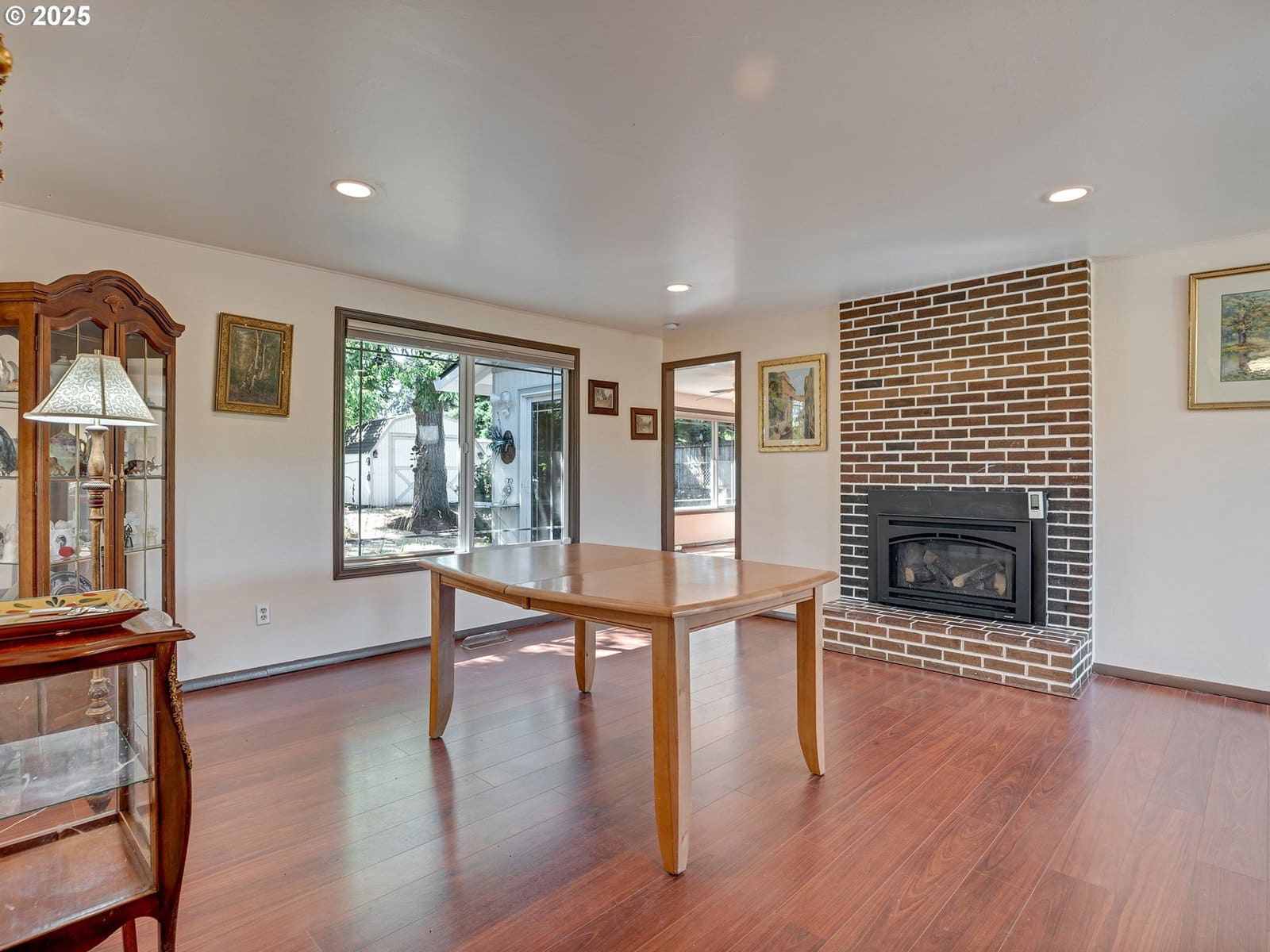 Open House Sunday 1/18 1:30pm to 3:30pm. Excellent single level home in the popular Finnegans neighborhood on a wonderful, lusciously landscaped large (0.28 acre) private lot surrounded by greenspace on three sides and with flowers galore and multiple fruit trees including apples, plums, cherries, a grape arbor and a filbert tree! This bountiful lot also has the convenience of a circular driveway, backyard patio and two sheds (12x16 & 12x8) for ample outdoor storage. Inside the easy flow floorplan consists of three bedrooms (two with new carpeting as of June 2025), two bathrooms, an extended kitchen for either additional work/storage space or an eat-in option. Use the center room for either a living room or dining room with a cozy fireplace and the additional room as you wish for bonus space. Other features include mostly solid surface floors, double paned vinyl windows with newer blinds throughout (approx 2019), updated kitchen in 2019 (with quartz countertops, soft close cabinets and drawers and pull out shelves), updated bathroom in 2025, water heater approx 6yrs old, HVAC (with central A/C) approx 4yrs old, newer roof (2025), updated paint inside and out (approx 2019), updated canned lighting added in 2024, crawlspace refresh including Visqueen vapor barrier and insulation (2024). Home also comes with a newer Generac generator and is part of the Clackamas River Water District. Annual HOA dues of $79/year are for greenspace and park/rec facility maintenance only.