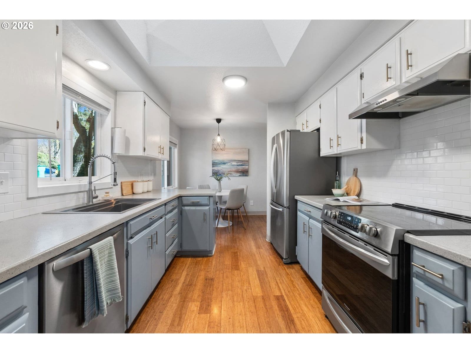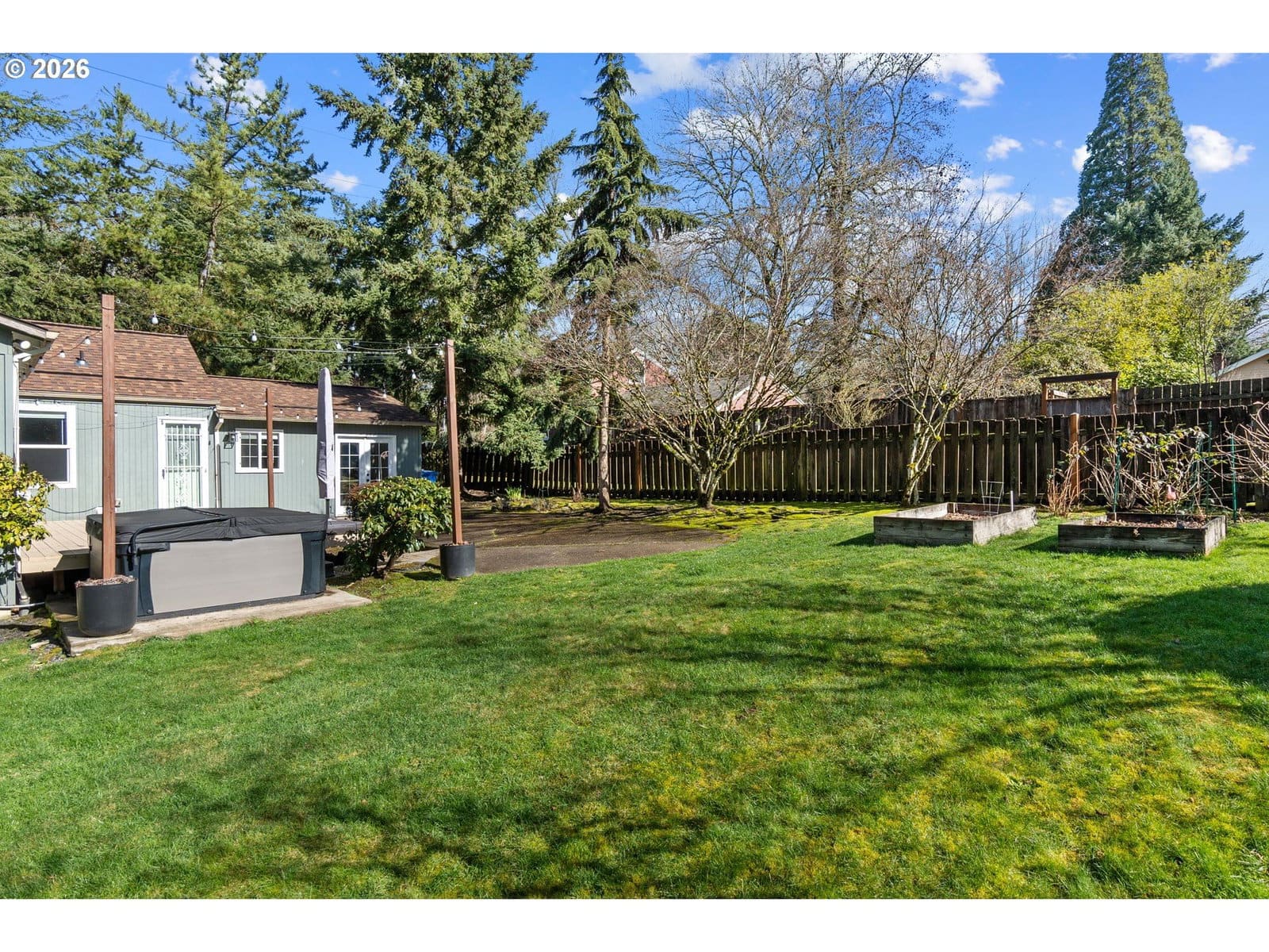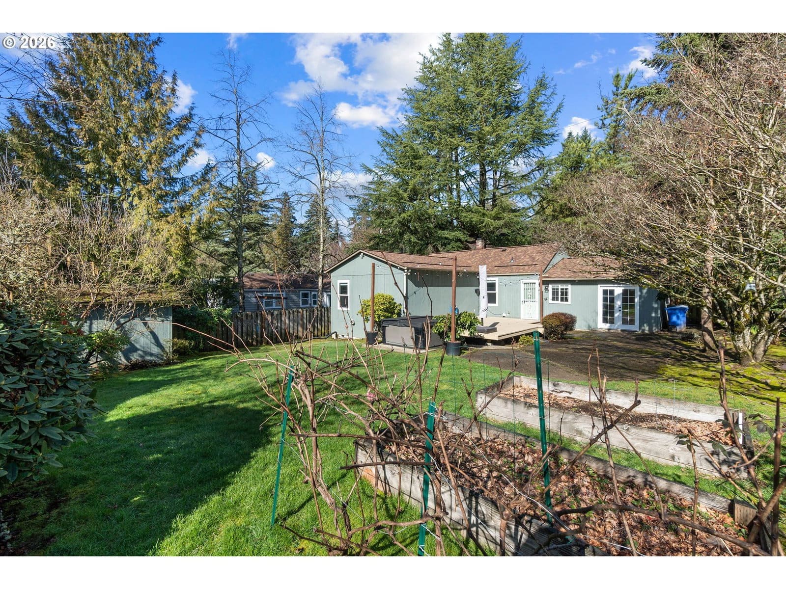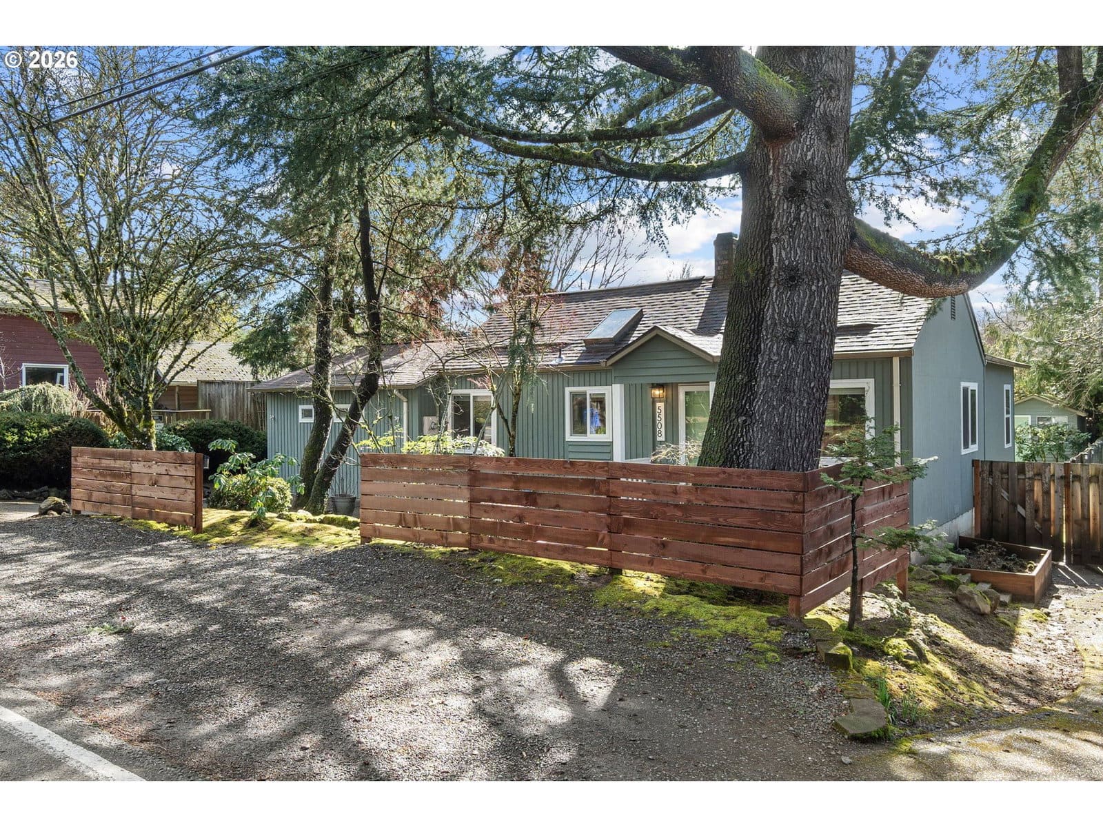 Adorable Home in Hayhurst. Come through the zen like front garden into a beautiful large living room with western facing light pouring in that afternoon sun. Soothing paint colors calm the spaces and easy maintenance with bamboo floors throughout. A fresh update to the kitchen with painted cabinets, SS appliances and sink, tile backsplash on both sides and added sun coming through the skylight. Cozy informal eating area perfectly placed for entertaining and close to the extra pantry cabinet. Primary bedroom is generously sized with two deep closets for all your necessary clothing storage. New carpet in the both bedrooms, also in the extra bonus room which can be used as another bedroom, family or party room. Access from this room as well from the laundry room leads you to the huge patio and wood deck area, perfect for entertaining on those warm days ahead! You’ll delight in the big grass yard, garden beds and berries as the seasons change the matured landscape. A tool shed is conveniently placed in the back and provides plenty of storage. A new roof has been recently installed and the newer windows help keep your utility bills down. With quick access to neighborhood amenities and close by parks, this home is ready for you to start living! See our virtual tour links for more information. [Home Energy Score = 2. HES Report at https://rpt.greenbuildingregistry.com/hes/OR10113216]