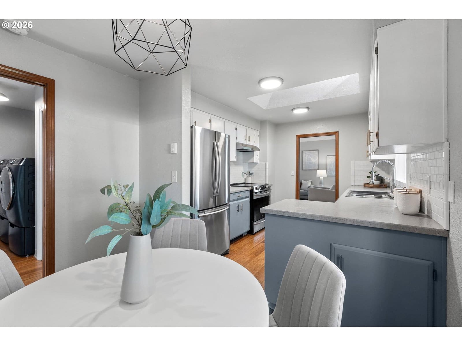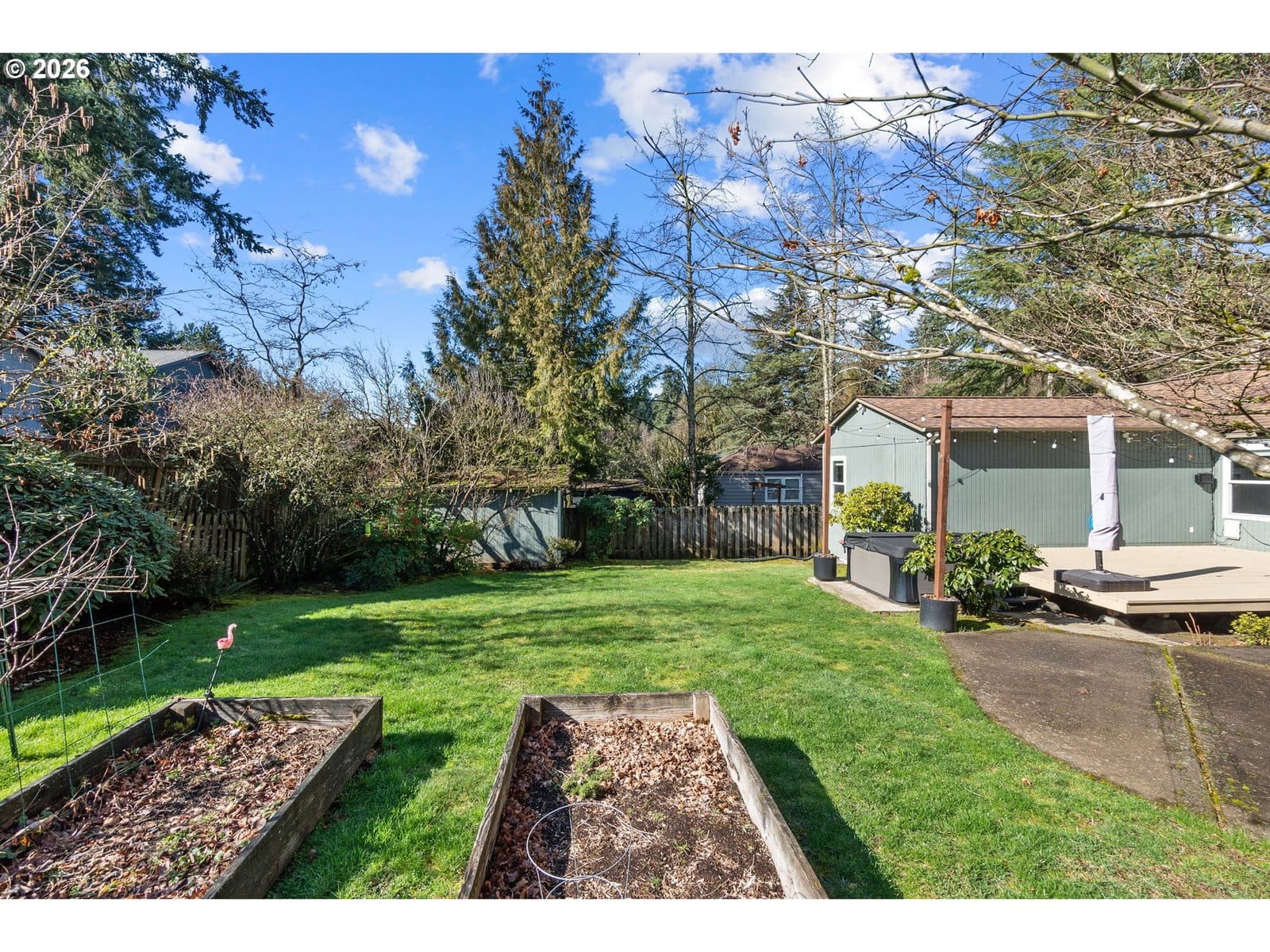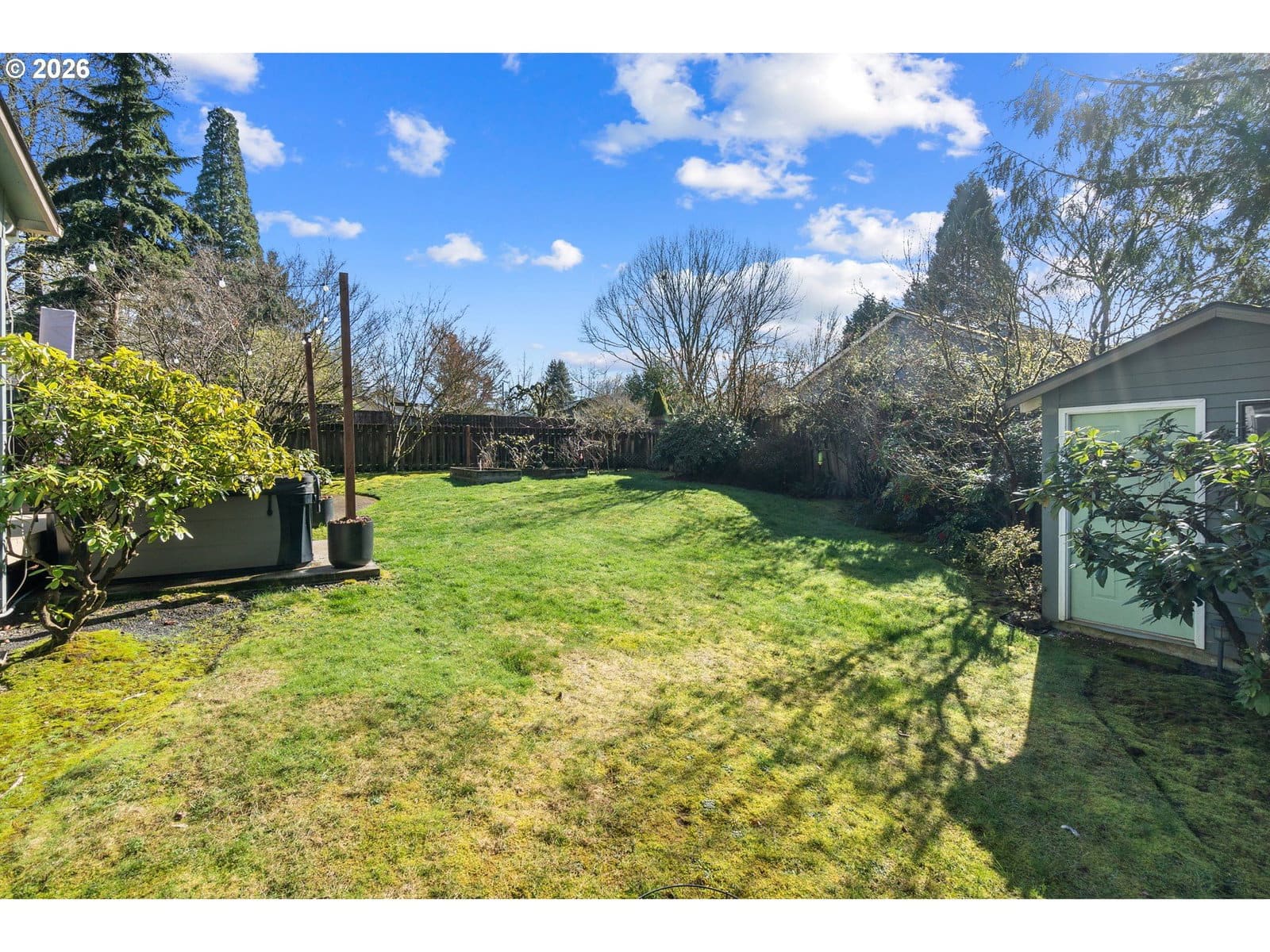 Adorable Home in Hayhurst. Come through the zen like front garden into a beautiful large living room with western facing light pouring in that afternoon sun. Soothing paint colors calm the spaces and easy maintenance with bamboo floors throughout. A fresh update to the kitchen with painted cabinets, SS appliances and sink, tile backsplash on both sides and added sun coming through the skylight. Cozy informal eating area perfectly placed for entertaining and close to the extra pantry cabinet. Primary bedroom is generously sized with two deep closets for all your necessary clothing storage. New carpet in the both bedrooms, also in the extra bonus room which can be used as another bedroom, family or party room. Access from this room as well from the laundry room leads you to the huge patio and wood deck area, perfect for entertaining on those warm days ahead! You’ll delight in the big grass yard, garden beds and berries as the seasons change the matured landscape. A tool shed is conveniently placed in the back and provides plenty of storage. A new roof has been recently installed and the newer windows help keep your utility bills down. With quick access to neighborhood amenities and close by parks, this home is ready for you to start living! See our virtual tour links for more information. [Home Energy Score = 2. HES Report at https://rpt.greenbuildingregistry.com/hes/OR10113216]
