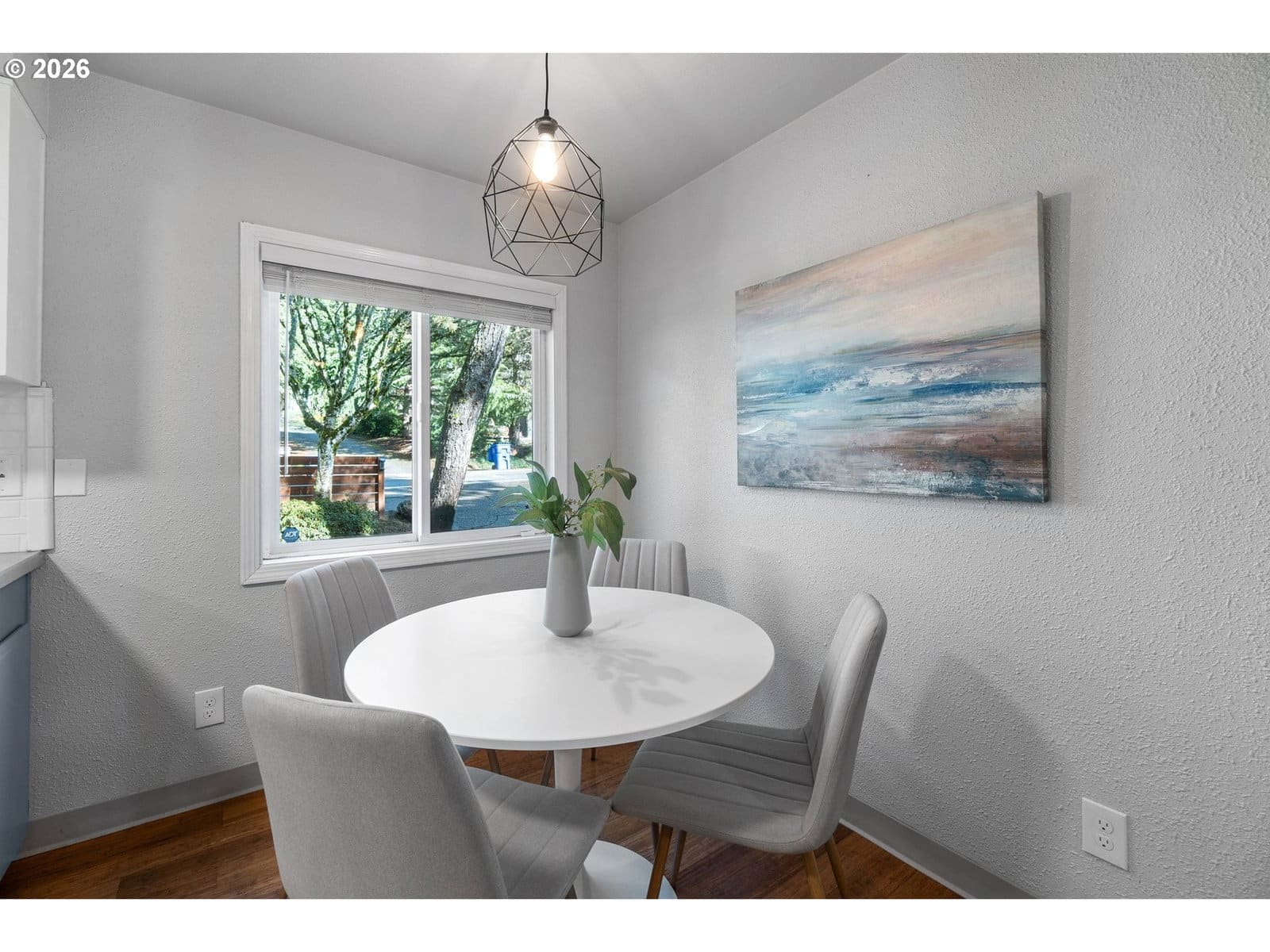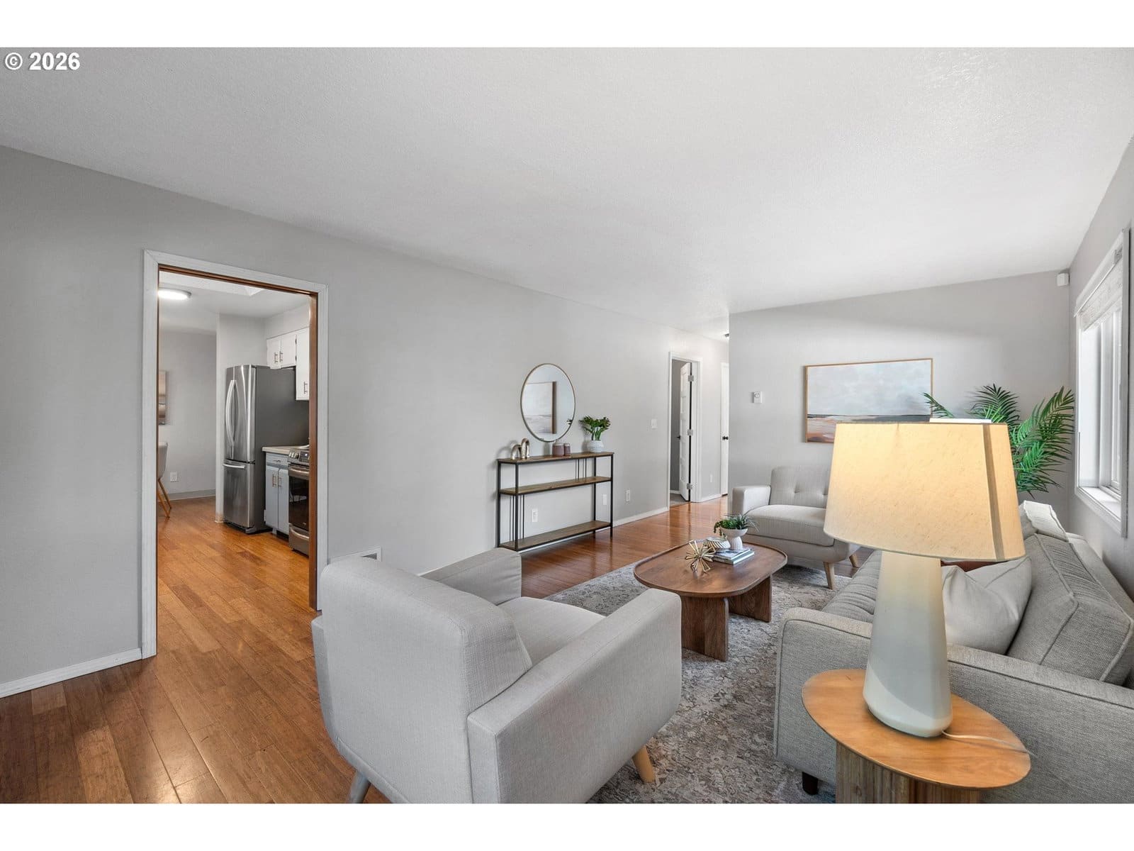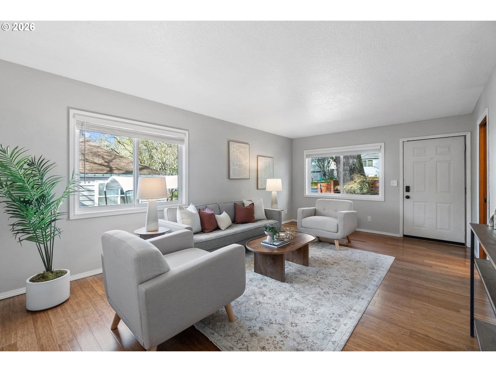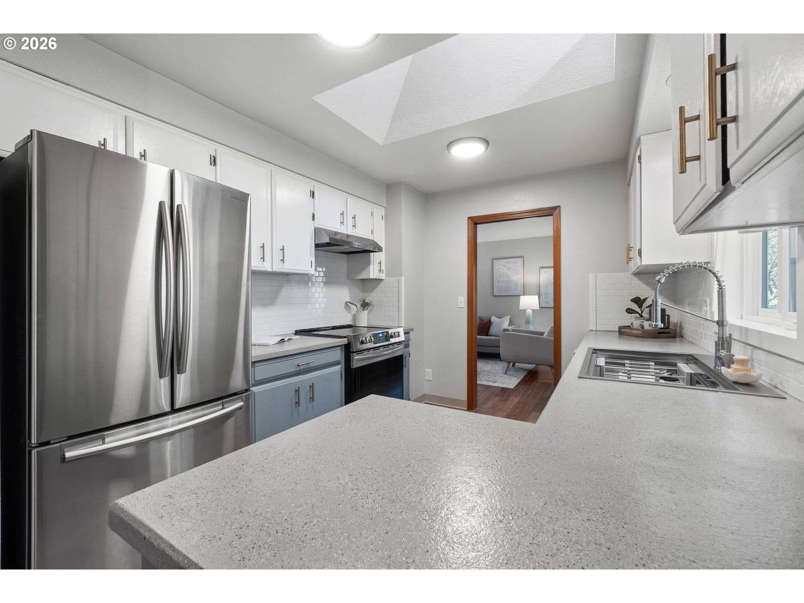 Adorable Home in Hayhurst. Come through the zen like front garden into a beautiful large living room with western facing light pouring in that afternoon sun. Soothing paint colors calm the spaces and easy maintenance with bamboo floors throughout. A fresh update to the kitchen with painted cabinets, SS appliances and sink, tile backsplash on both sides and added sun coming through the skylight. Cozy informal eating area perfectly placed for entertaining and close to the extra pantry cabinet. Primary bedroom is generously sized with two deep closets for all your necessary clothing storage. New carpet in the both bedrooms, also in the extra bonus room which can be used as another bedroom, family or party room. Access from this room as well from the laundry room leads you to the huge patio and wood deck area, perfect for entertaining on those warm days ahead! You’ll delight in the big grass yard, garden beds and berries as the seasons change the matured landscape. A tool shed is conveniently placed in the back and provides plenty of storage. A new roof has been recently installed and the newer windows help keep your utility bills down. With quick access to neighborhood amenities and close by parks, this home is ready for you to start living! See our virtual tour links for more information. [Home Energy Score = 2. HES Report at https://rpt.greenbuildingregistry.com/hes/OR10113216]