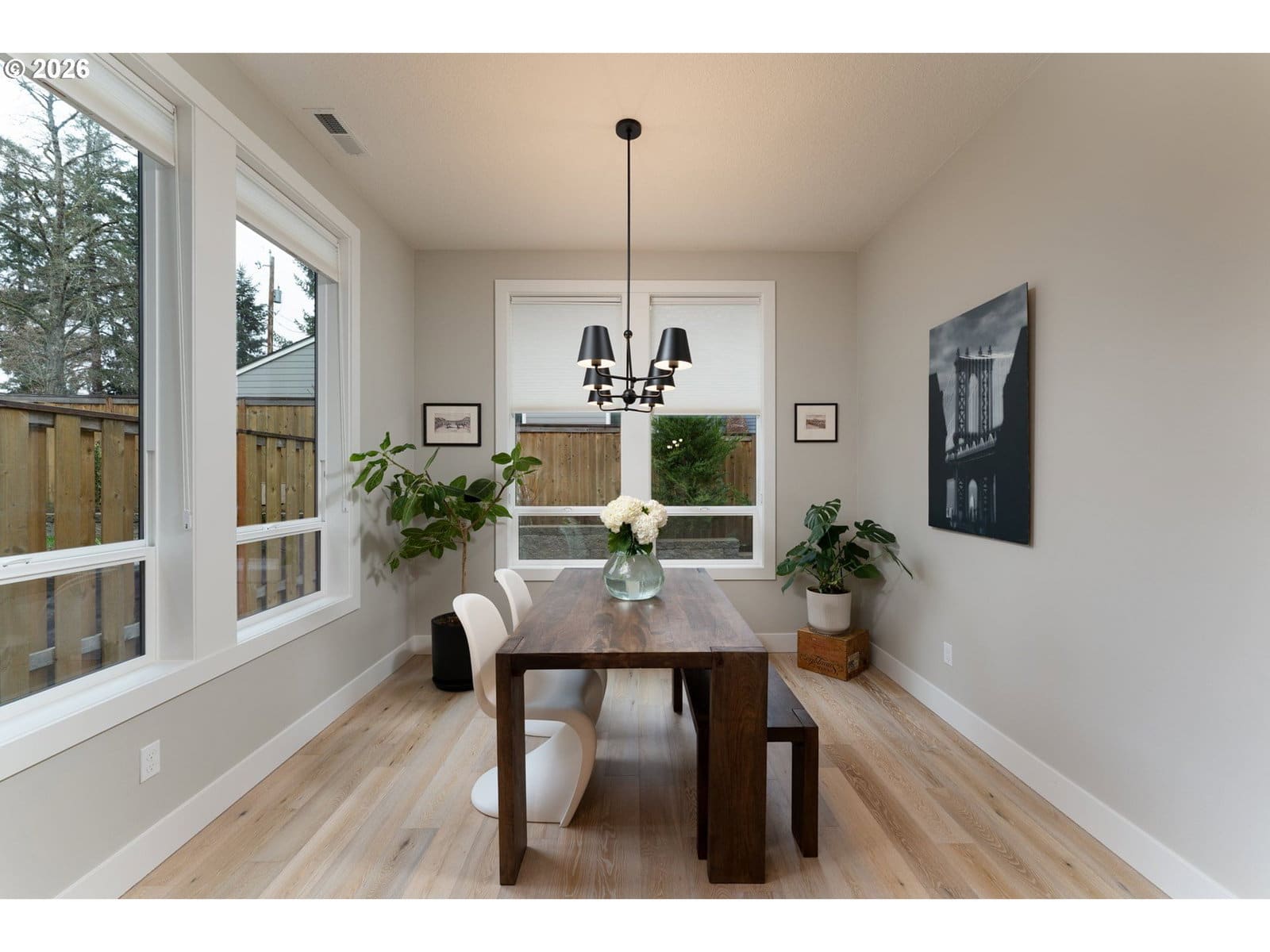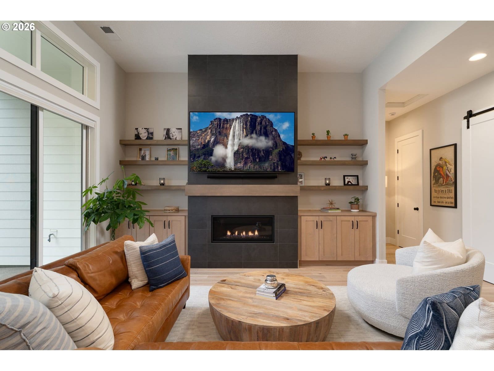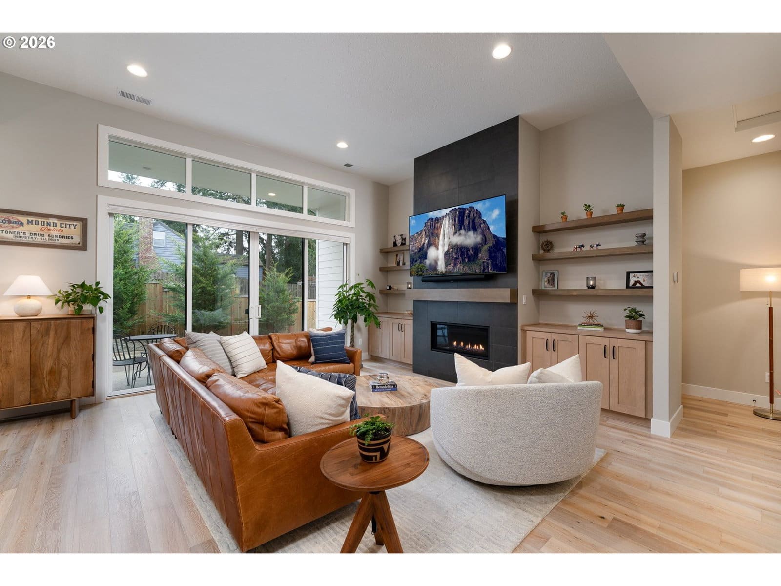Modern Contemporary Farmhouse situated in the heart of Garden Home. Garden Terrace is an 8-lot development on a dead end street blocks to Trader Joes, Old Market Pub, Fanno Creek Trail, and Moonshadow Park with easy access to Red Tail Golf Course, Portland Golf Club, Multnomah Village and Washington Square. The surround neighborhood is pedestrian, dog and even horse friendly. Completed in 2023 by Westwood Homes and loaded with architectural details and designer finishes, this home has been lightly-lived in, well-cared for and clean as a whistle. Interior finishes include engineered hardwood and tile floors, custom cabinetry, automatic and room darkening window treatments. The main level primary suite includes 10-foot ceilings, dual vanities, soak tub, separate glass/tile shower & large walk-in closet. The kitchen includes quartz counters and island, Thermador appliances including 36-inch (6 burner) gas range with integrated range hood and large pantry. The great room has 12-foot ceilings, gas fireplace, open shelving with additional built-ins. Generous den with large closet and additional small storage area. Utility/mud room with folding shelf, barn door and boot/coat bench and hooks. The upper level includes two bedrooms, full bath and additional 4th bedroom or bonus room. Two-car garage with additional space ideal for shop, work bench or exercise space. Exterior amenities includes a low maintenance grounds, fenced yard, covered patio plumbed with gas. Recent improvement and updates include a new front yard and landscape, rear flagstone path, trees and landscape, second fence gate, garage sink and extra hose bib. Ultra quiet and close-knit community with Washington County Taxes. Seller is licensed real estate broker in the State of Oregon. The current annual HOA fee is $619.76 to fund the reserves. The annual fee should drop to $400-$450 next year.