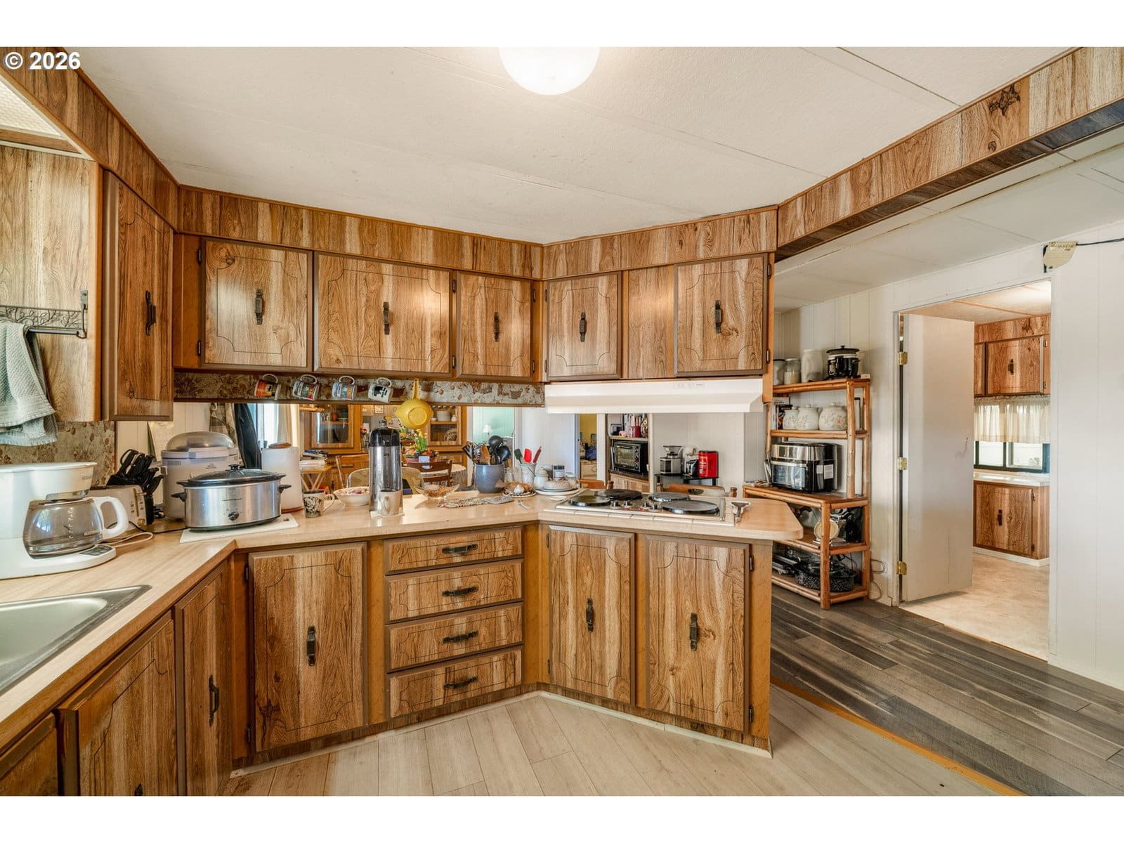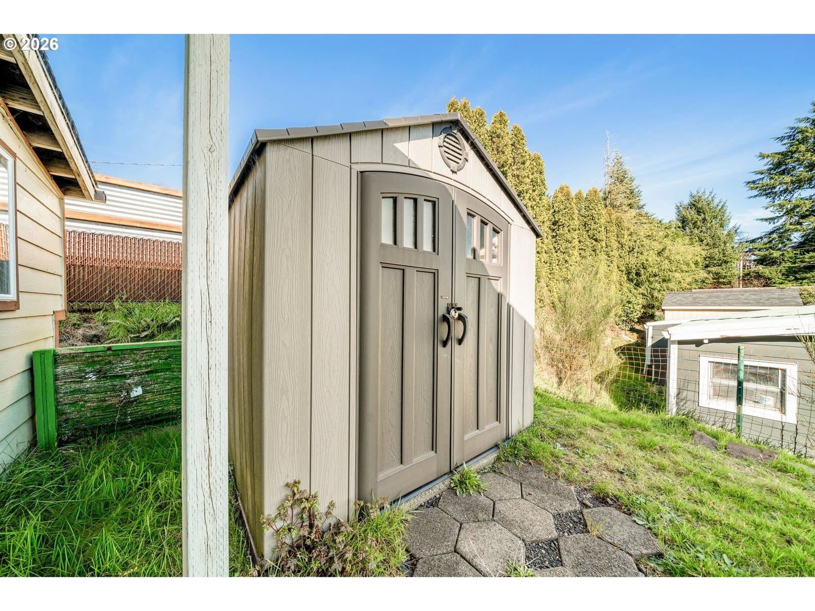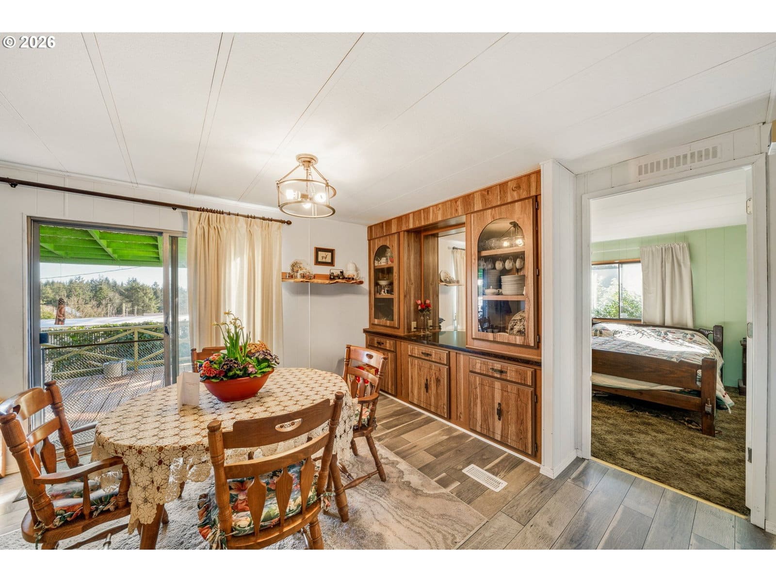 Whether you are seeking a primary residence or a low-maintenance weekend getaway, this Bay City home offers a great opportunity for affordable living on the North Coast. The home is designed for utility, featuring a dedicated craft room and plenty of storage throughout. A built-in hutch adds extra character to the dining room, and the property includes functional updates such as new laminate flooring and a remodeled bathroom to name a few. The exterior features a fully fenced yard and an additional parking area perfect for a boat or RV, catering to outdoor enthusiasts. Situated near Tillamook Bay, the home offers easy access to local crabbing and fishing. With tie-downs already in place and practical shop-style storage, this residence provides a versatile and cost-effective setup for enjoying the local lifestyle.