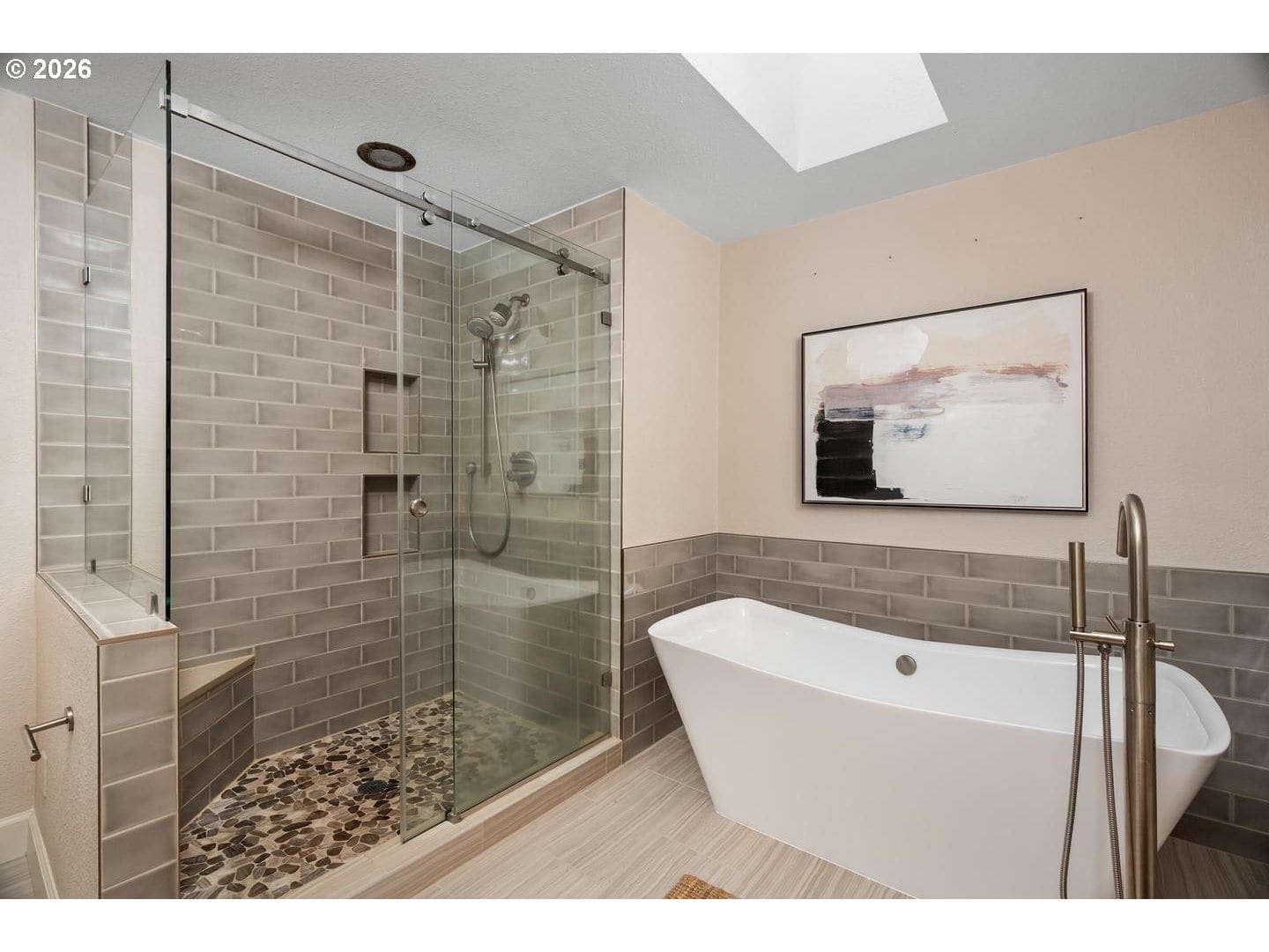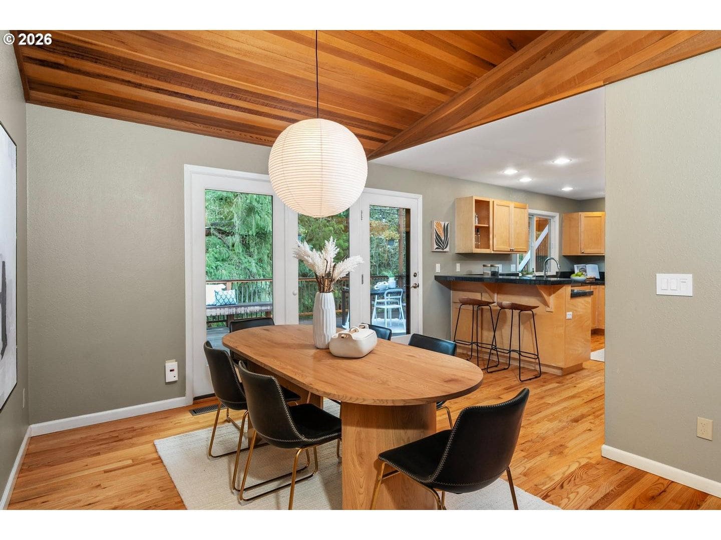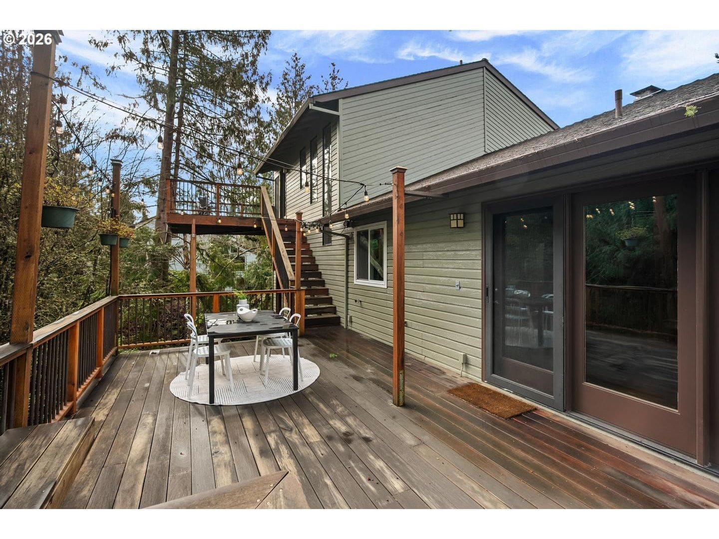 Originally built in 1981, this stunning northwest contemporary stands proudly on almost a quarter acre lot in the sought after West Haven neighborhood. As you approach the home you are welcomed by a paver patio, stunning plantings and a grand front door landing. Entering the home you find yourself in a large foyer with custom flagstone underfoot, drawing you into the home's gorgeous main floor. The living room is magazine-worthy, boasting vaulted ceilings clad in gorgeous clear vertical grain cedar, updated flooring and a stunning wood burning fireplace that anchors the room. Moving seamlessly into the dining room and beyond to the kitchen you immediately witness the home's mid-century influences highlighted by its surface treatments and classic circular flow pattern. The kitchen has been updated to include granite counters, maple shaker cabinetry and stainless steel appliances while the dining room boasts an expansive three panel, full light French door to the backyard deck.Moving beyond the almost 1000 square foot main floor you will find a private, upstairs primary suite. Vaulted ceilings clad in cedar, updated flooring and its own private deck balance perfectly against the stunning, remodeled en suite bathroom which features a custom, double vanity, free standing tub, gorgeous tiled shower and walk-in closet. Moving back downstairs you will find approximately 1500 square feet of finished space in the daylight basement. Three additional bedrooms, a third bathroom, laundry room and large family room / media room highlight the lower level which also offers direct access to a private patio through expansive patio doors. As with the careful interior stewardship, the exterior has been carefully updated and maintained. Multi-level decking, featuring IPE hardwoods offer direct access to the backyard from the upper floors, while terraced grounds maximize the property's utility and stunning backdrop which includes a picturesque creek & established trees.