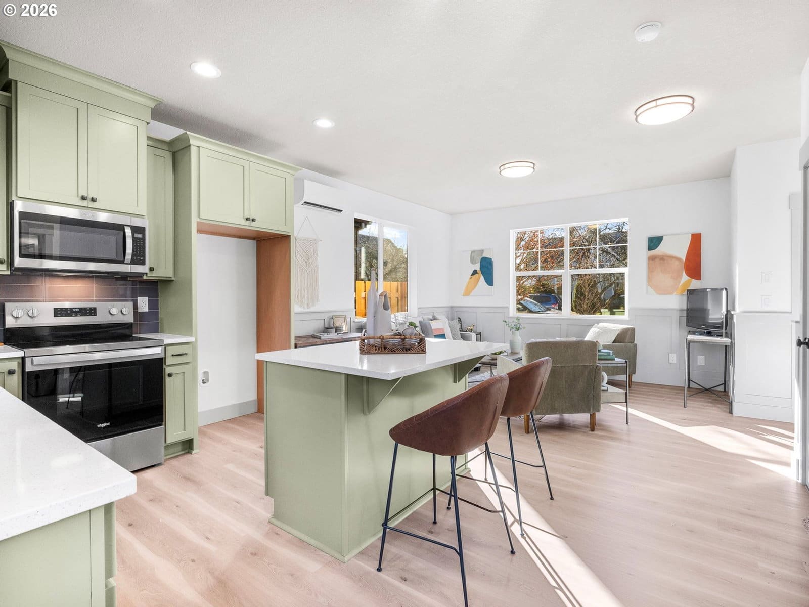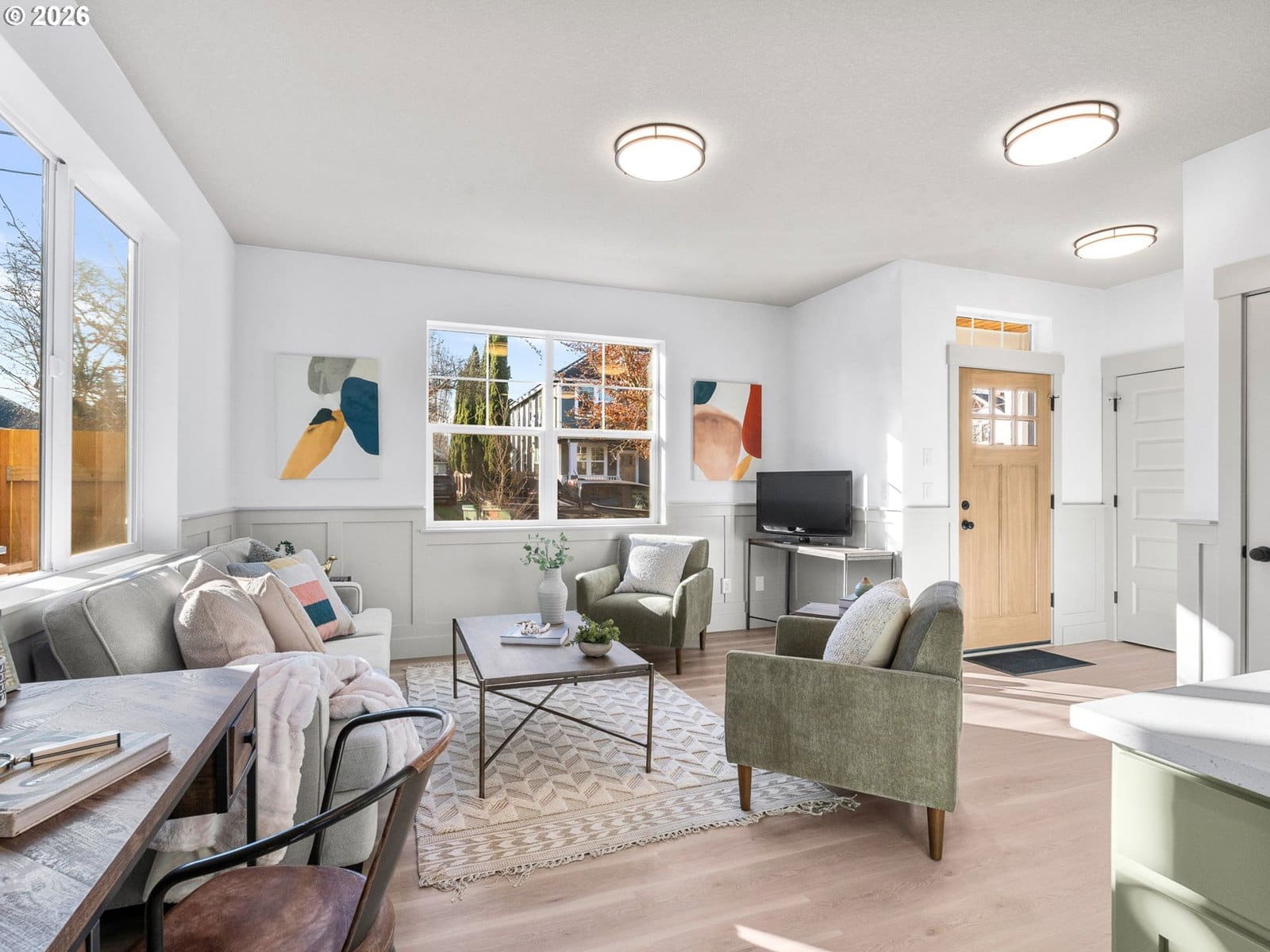 ello there, I’m a brand new cottage in the heart of St. Johns, thoughtfully designed for easy, low-maintenance living so you can spend more time enjoying life and less time on upkeep. I offer a private, fully fenced yard with artificial grass that’s ideal for pets while eliminating mowing, watering, and seasonal yard work. The backyard also features a covered patio with cedar soffits and a ceiling fan, creating a comfortable outdoor space you can enjoy year-round. Inside, my main floor offers a spacious great-room layout with wainscoting and direct access to the backyard, making everyday living and entertaining effortless. Tall ceilings and oversized windows bring in abundant natural light, while durable, high-quality finishes are designed to last. I live as a two-bedroom home with two full bathrooms upstairs and a convenient half bathroom on the main level, with laundry located upstairs for added efficiency. Built by a respected local boutique builder known for classic craftsman-style homes, I include a 2-10 Builder Warranty for peace of mind, and the builder is offering a limited-time $5,000 appliance package upgrade promo for an acceptable offer. Step outside and enjoy a five-minute walk to popular food carts including St Johns Beer Porch, Two of Us, Burrito Mojado, and Mero Gyro, just .2 miles from New Seasons Market, and a ten-minute walk to Roosevelt High School. I’m close to the iconic St. Johns Bridge and one mile from Cathedral Park, offering trails, river views, and open green space. With a Walk Score of 72 and Bike Score of 91, getting around is easy. Energy-efficient mini-split systems provide heating and cooling for year-round comfort. Unlike many new construction homes, I am not a condo, have no HOA, and you own the underlying lot outright. My list price is for buyers eligible for Portland Housing Bureau’s System Development Charge Exemption program. [Home Energy Score = 10. HES Report at https://us.greenbuildingregistry.com/green-homes/OR10242917] [Home Energy Score = 10. HES Report at https://rpt.greenbuildingregistry.com/hes/OR10242917]