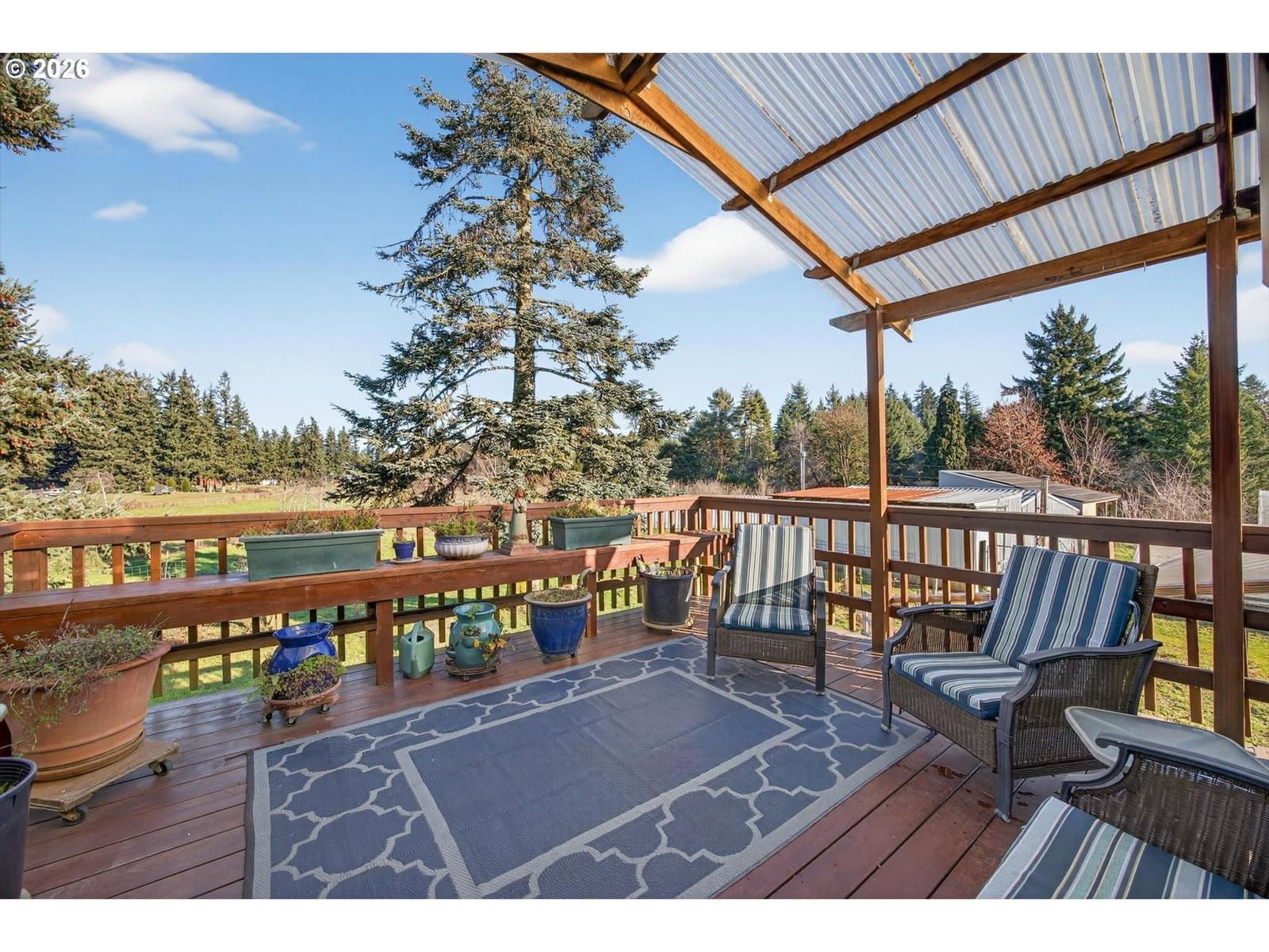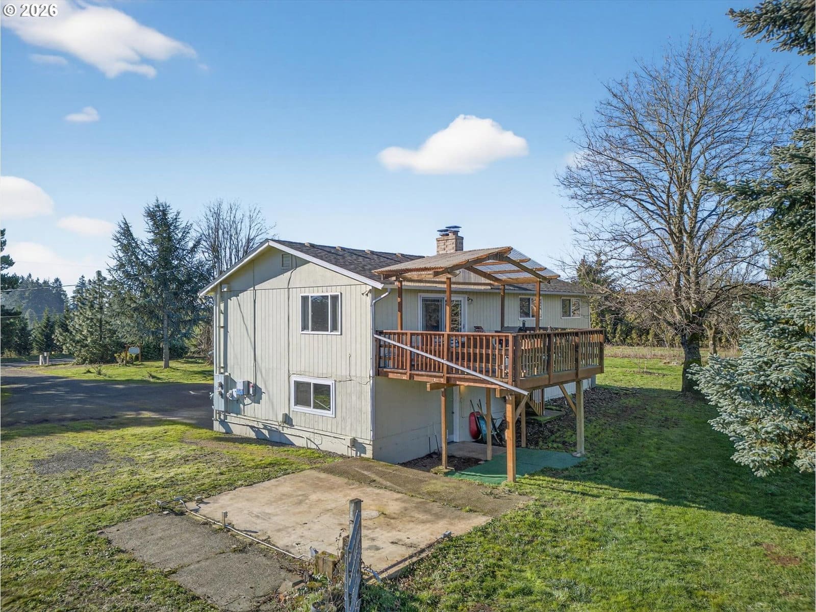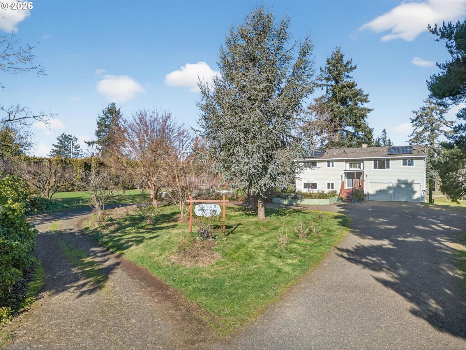 Set on 6.77 level acres in the quiet countryside outside Canby, this turn-key rural property offers a rare blend of usable acreage, established agricultural improvements, and energy-efficient living. Ideal for buyers seeking a mini farm or hobby farm lifestyle, the property is fully set up for immediate use.The 1,870 sq. ft. home is warm, inviting, and move-in ready, featuring hardwood, bamboo, slate, and laminate flooring, a pellet stove, fireplace with heatilator, and a Lennox heat pump. Recent updates include a newer roof, updated supply-side plumbing, septic improvements, vinyl windows, and a remodeled kitchen with cherry wood countertops, updated cabinetry, and appliances. A sliding door opens to a partially covered deck overlooking pasture and orchard. The finished lower level provides flexible living space with laundry and additional bedroom and bathroom options.Outside, the land is the standout feature. The property includes approximately 500 fruit trees, with hundreds of dwarf apple trees across dozens of varieties, along with pears, quince, and mature sweet cherry trees. Additional plantings include raspberries, blueberries, gooseberries, figs, persimmons, and kiwis. Ag deferral is in place, helping keep property taxes low and supporting continued food production.Well-established infrastructure includes cross-fenced pastures with new livestock fencing, a large barn/shop with loft and work areas, greenhouse, high tunnel, raised garden beds, drip irrigation, and an RV pad with water and power on a separate access. A private well supplies all water needs.Solar panels installed on both the main home and the shop provide excellent energy efficiency and consistently low utility costs. Conveniently located less than 10 minutes to I-205 and near Oregon City, Canby, and Molalla, this is a rare opportunity to own a fully established, move-in-ready acreage property.