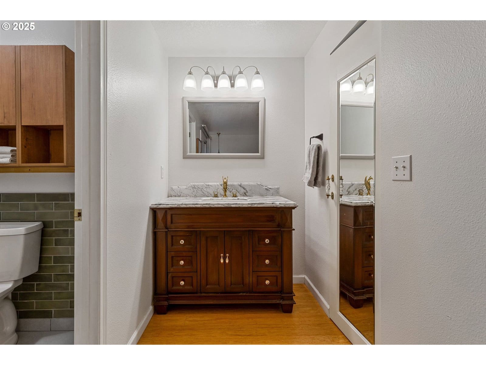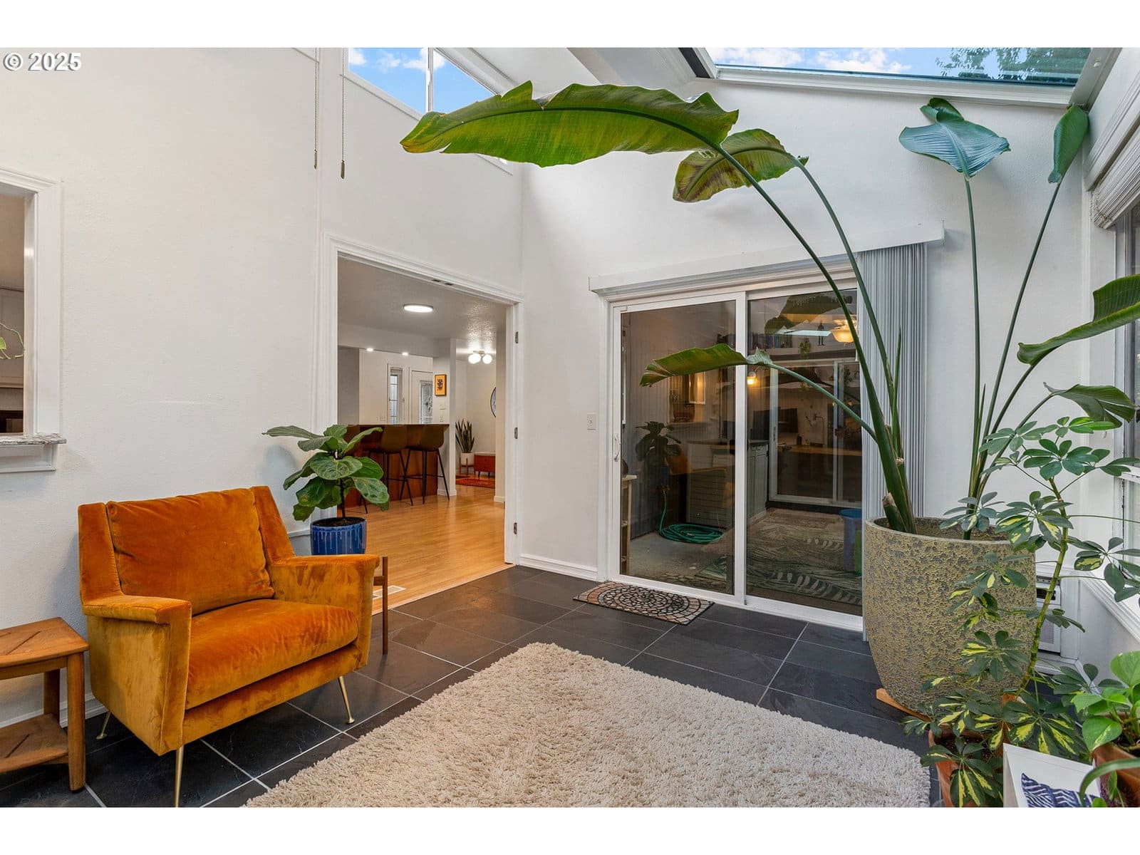 Smart and thoughtfully updated one-level home in a quiet neighborhood- yet easy access to all of the necessities. This home blends indoor and outdoor living with a spacious floorplan connecting an inviting living room with wood-burning fireplace, a large kitchen and spacious sunroom featuring a vaulted ceiling. Enjoy low-maintenance engineered hardwood flooring throughout and new tiled bathrooms. Host gatherings and celebrate occasions around the stylish bar connecting kitchen and living room spaces. The primary suite opens to the patio and backyard. The covered patio extends to a welcoming flag-stone fire pit area and relaxing vibe for evenings with you and your friends. Terraced garden areas and fully fenced backyard provide privacy and room to play. The spacious two-car garage is insulated and offers workshop space as well. Convenient access to local trails, Cooper Mountain Nature Park, highly-rated schools, shopping/dining, and major employers. This home lives large and all it needs is you!