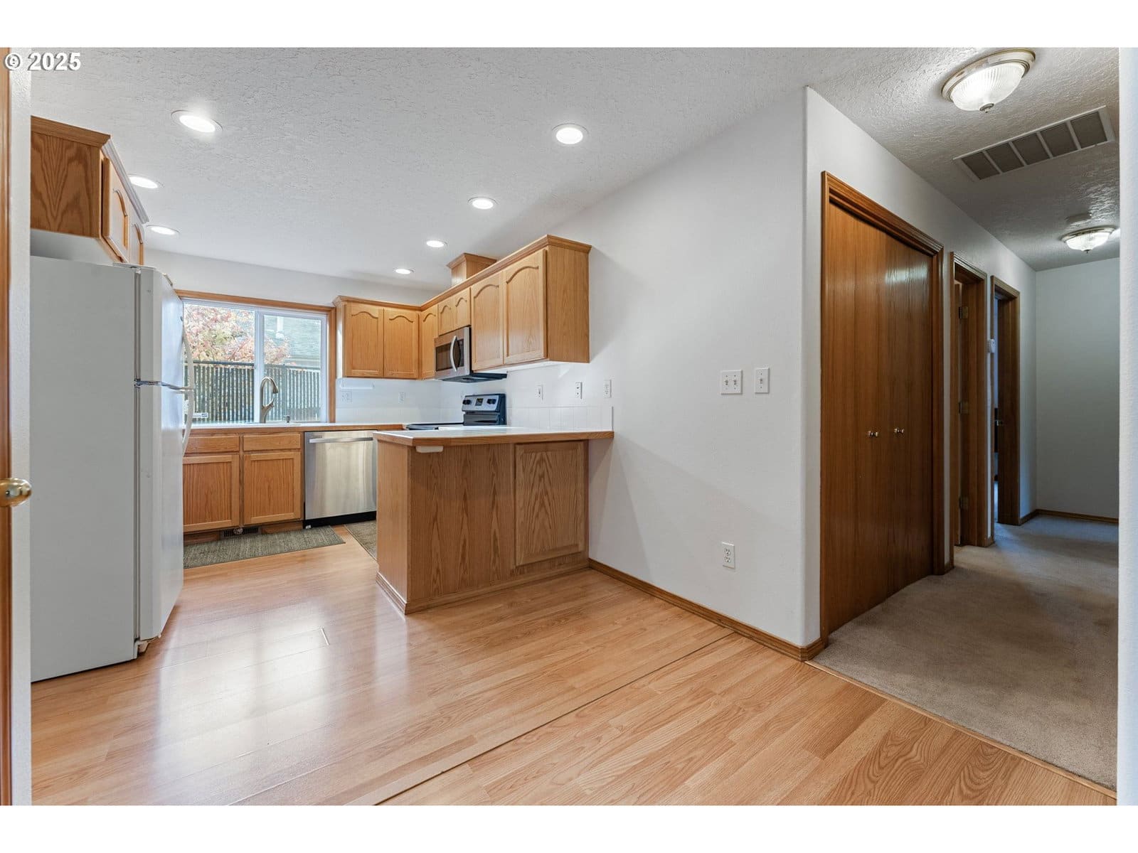 Charming One-Level Home on Quiet Cul-de-Sac This 3-bed, 2-bath home features an open layout with a spacious kitchen, dining area, and living room with gas fireplace. Primary suite includes a full bath and ample closet space. Two additional bedrooms offer flexibility for guests, work, or hobbies. Enjoy a large private, fenced backyard with room for gardening, play, or pets. New 30 year roof in April 2025. Additional highlights include a two-car attached garage, ample off street parking in driveway, forced-air heating with A/C, and low-maintenance siding. Convenient location near parks, schools, shopping, and easy access to major roadways. Move-in ready and ideal for comfortable stair free one-level living. [Home Energy Score = 7. HES Report at https://rpt.greenbuildingregistry.com/hes/OR10239376]