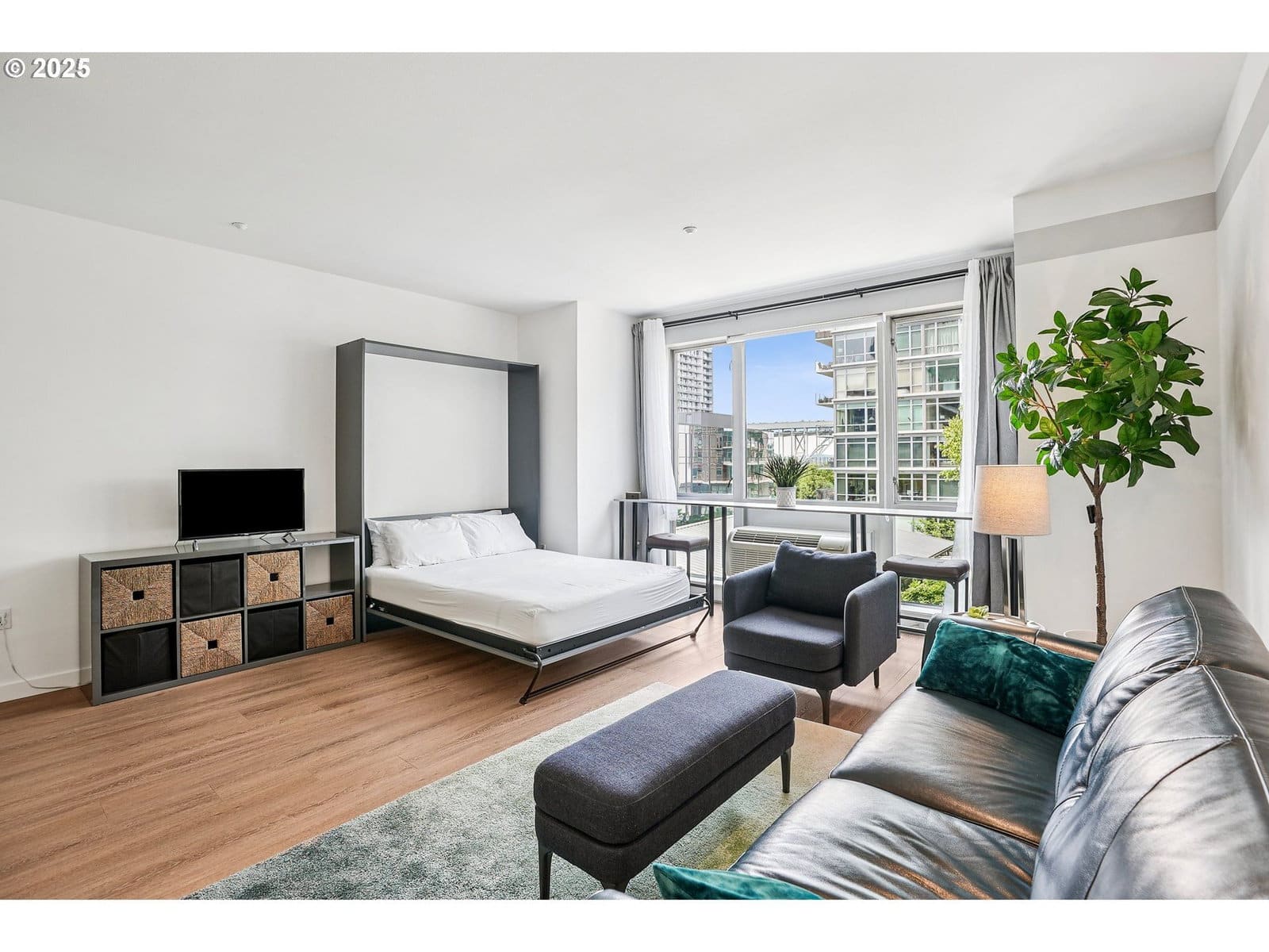 Gorgeous Sunlit Studio in the Heart of the Pearl District with DEEDED Parking and Storage!This light-filled studio offers the perfect blend of comfort and city living in one of Portland’s most sought-after neighborhoods. Floor-to-ceiling windows frame stunning views of the Fremont Bridge and urban skyline, while updated flooring, walk-in closet, in-unit laundry, and a smart, open layout make the space feel warm and conveniently modern. Lovingly maintained in spotless condition, it's the definition of move-in ready! Ideal as a full-time home or a cozy home base for city adventures. Building amenities include a well-equipped gym, community room, bike storage, and courtyard. The city is right outside your door! Many of Portland’s best restaurants, parks, shops, and entertainment options are all just moments from home, and with the streetcar, AMTRAK, riverfront trail, MAX, and easy highway access nearby the entire city is your oyster! Check out the virtual tour, or better yet, come see it for yourself. Once you see it in person you won't want to leave! Brand New Washer and Dryer just added this Fall.