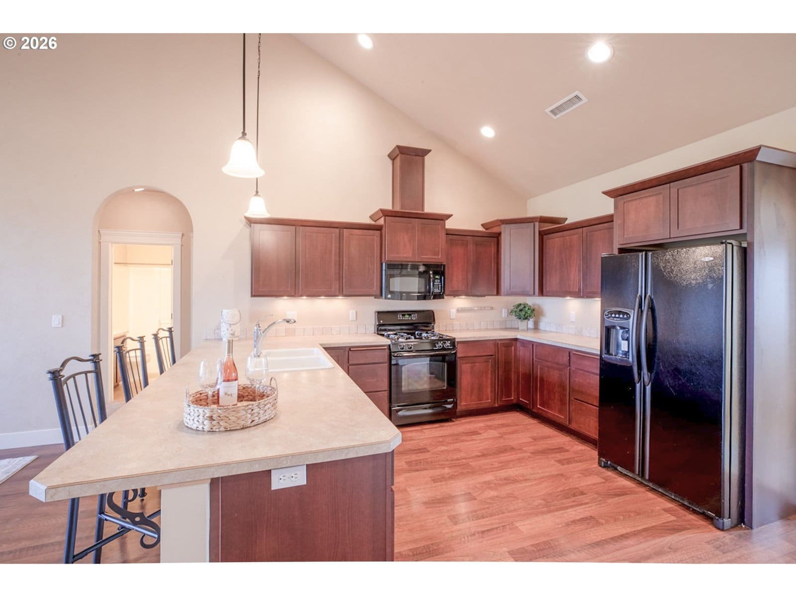 Set on a desirable corner lot with no homes behind it, this beautifully maintained single-level home offers privacy, comfort & a thoughtfully designed layout in the heart of Creswell. Surrounded by pastoral views the home feels both peaceful & welcoming from the moment you arrive. Inside, the floor plan offers excellent separation of space, ideal for both everyday living & entertaining. A more formal living room sits just off the entry & is anchored by a cozy gas fireplace—perfect for quiet evenings or hosting guests. The heart of the home opens into a stunning vaulted great room where the kitchen, dining area & great room come together in a truly open-concept design. Vaulted ceilings & walls of windows fill the space with natural light, highlighting the engineered hardwood flooring & creating a bright, airy atmosphere. The kitchen opens seamlessly to the great room & features a long eat-bar, making it an ideal gathering place for entertaining or casual meals. A door from the great room provides easy access to the private, fully fenced backyard—an inviting outdoor retreat with raised garden beds & serene views. Whether you’re enjoying a morning coffee or hosting a summer evening get-together, the outdoor space offers both beauty & privacy. The home's layout is especially well designed as the primary suite is located on one side of the house & two additional bedrooms on the opposite side, providing wonderful separation of space. The primary suite feels like a private retreat, featuring two walk-in closets & a spacious bathroom with dbl sinks, a jetted soaking tub & a separate shower. The 2 full bathrooms in the home are well-appointed & thoughtfully placed to serve both residents & guests. Its location adds to the appeal, with Emerald Valley Golf Club less than 2 miles away & Creswell’s charming small-town feel, local dining & proximity (15 minutes) to Eugene & Springfield make it an ideal place to call home.