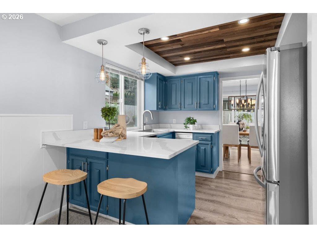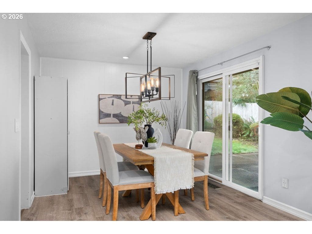 Beautiful home in a serene neighborhood has been extensively cared-for, updated, and remodeled. The primary bedroom includes double closets and a remodeled en-suite bathroom with a large walk-in shower, custom tile, lighted anti-fog mirrors, a new vanity with quartz countertop, and beautiful updated fixtures. The hall bathroom is also fully remodeled with custom tile and an extra-large bathtub suitable for taller individuals. The updated kitchen features quartz countertops, pendant and recessed lighting, a new sink, new dishwasher, new refrigerator, and new built-in microwave. But they left the amazing trash compactor — it's a rare feature you never knew you needed! Newer luxury vinyl plank flooring runs through the living areas, dining room, hallways, kitchen, and bathrooms. Additional recent improvements include a new furnace and updates to much of the plumbing, electrical, and more. Outside, the property offers a large yard with newer fencing and a detached two-car garage. Ideally situated in close-in Washington County with no HOA.