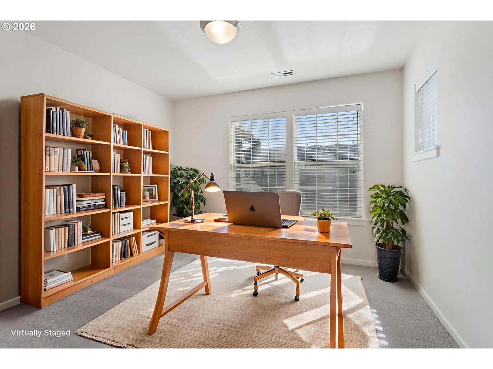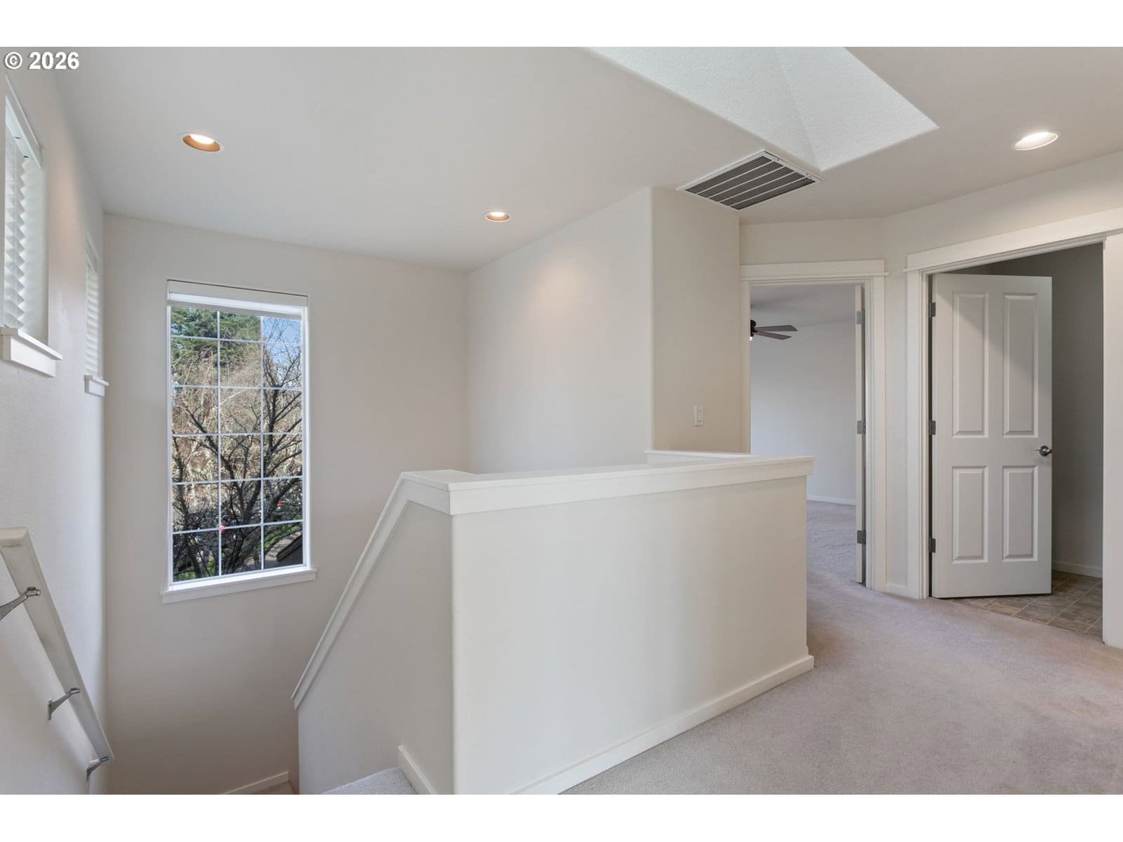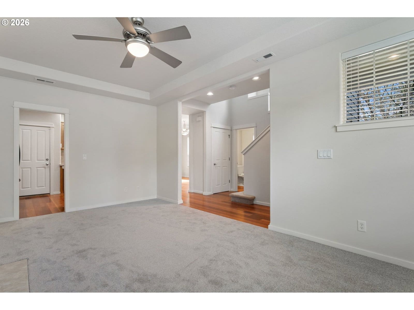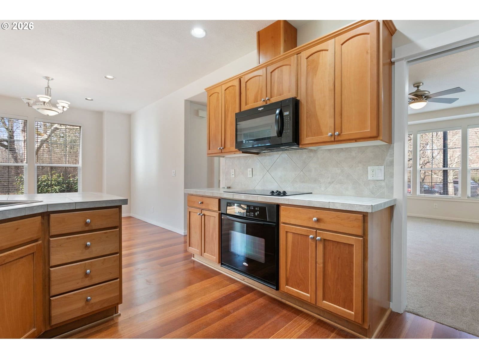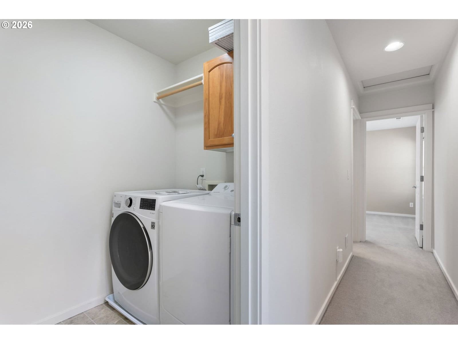 Light-filled end-unit townhome on a desirable corner lot, offering 1,704 SF of open and inviting living space. Enjoy cozying up by the fireplace in the spacious living room with new carpet. The property also features fresh interior paint. Gleaming hardwood floors welcome you in the entry and span throughout the kitchen and dining room. Upstairs you'll find the spacious primary suite with an en-suite bathroom featuring a modern vanity with double sinks and new walk-in shower, along with 2 additional bedrooms and the laundry room. While the two-car garage adds everyday convenience. Step outside to a lovely gated patio—perfect for entertaining or unwinding next a peaceful treed greenspace. Ideally located to Orenco Station MAX, popular restaurants and shops, New Seasons, Nike, Intel, and quick Hwy 26 access for an easy commute. [Home Energy Score = 6. HES Report at https://rpt.greenbuildingregistry.com/hes/OR10244236]