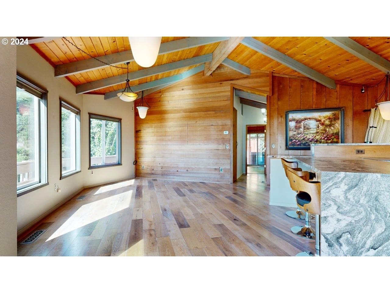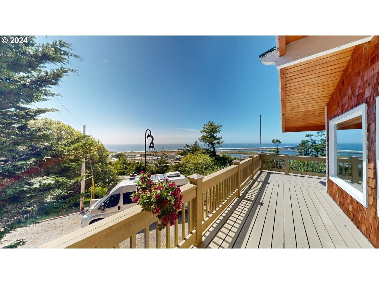 This is the kind of view people wait years for, and rarely find at this price point.Perched above it all, this Oceanview retreat delivers sweeping, unobstructed views of the Pacific Ocean and the iconic Rogue River. It is a front-row seat to nature, wrapped in privacy and surrounded by towering evergreens. Peaceful, quiet, and completely your own.And here’s where the value really stands out. This property includes an additional lot, bringing the total to a spacious .39 acres. More room, more privacy, and a setting that feels expansive.Inside, the main level is built for effortless living. Open, spacious, and filled with natural light, the layout flows beautifully from room to room. The kitchen stands out with rich maple cabinetry, a walk-in pantry, stainless steel appliances, an eating bar, and striking leather granite countertops. Vaulted ceilings with exposed beams bring warmth and character, while walls of windows frame those incredible views from nearly every angle.The living room is where it all comes together. Big ocean views, a cozy wood-burning stove, and a calming waterfall feature create a space that feels both elevated and grounded.The primary suite is located on the main level, offering easy, convenient living and a private retreat within the home. Also a working hot tub on the adjoining deck.Step outside to expansive decking and take it all in. Morning coffee, sunsets, or a quiet soak in the hot tub just off the primary suite. It is all right here. Downstairs, you have room to spread out. Two additional bedrooms, two bathrooms, a family room, a bonus room, a laundry, and a dedicated guest space make it ideal for hosting or multi-generational living. There is spacious parking at the main level, plus a separate lower-level entry with additional parking and room for an RV, making access simple and flexible.The grounds are just as thoughtful, with a private yard and greenhouse ready for your next project or passion. Schedule a showing today!