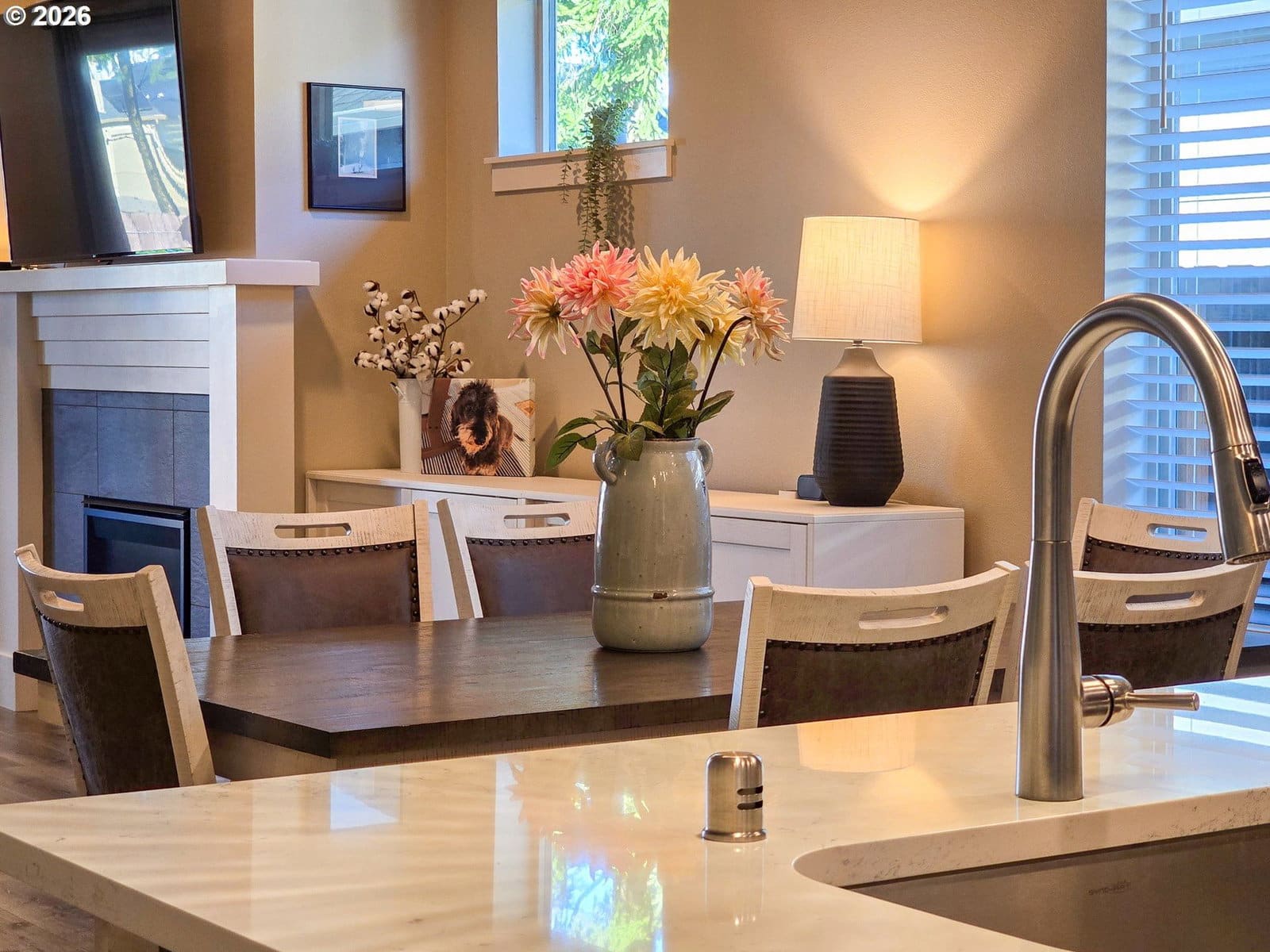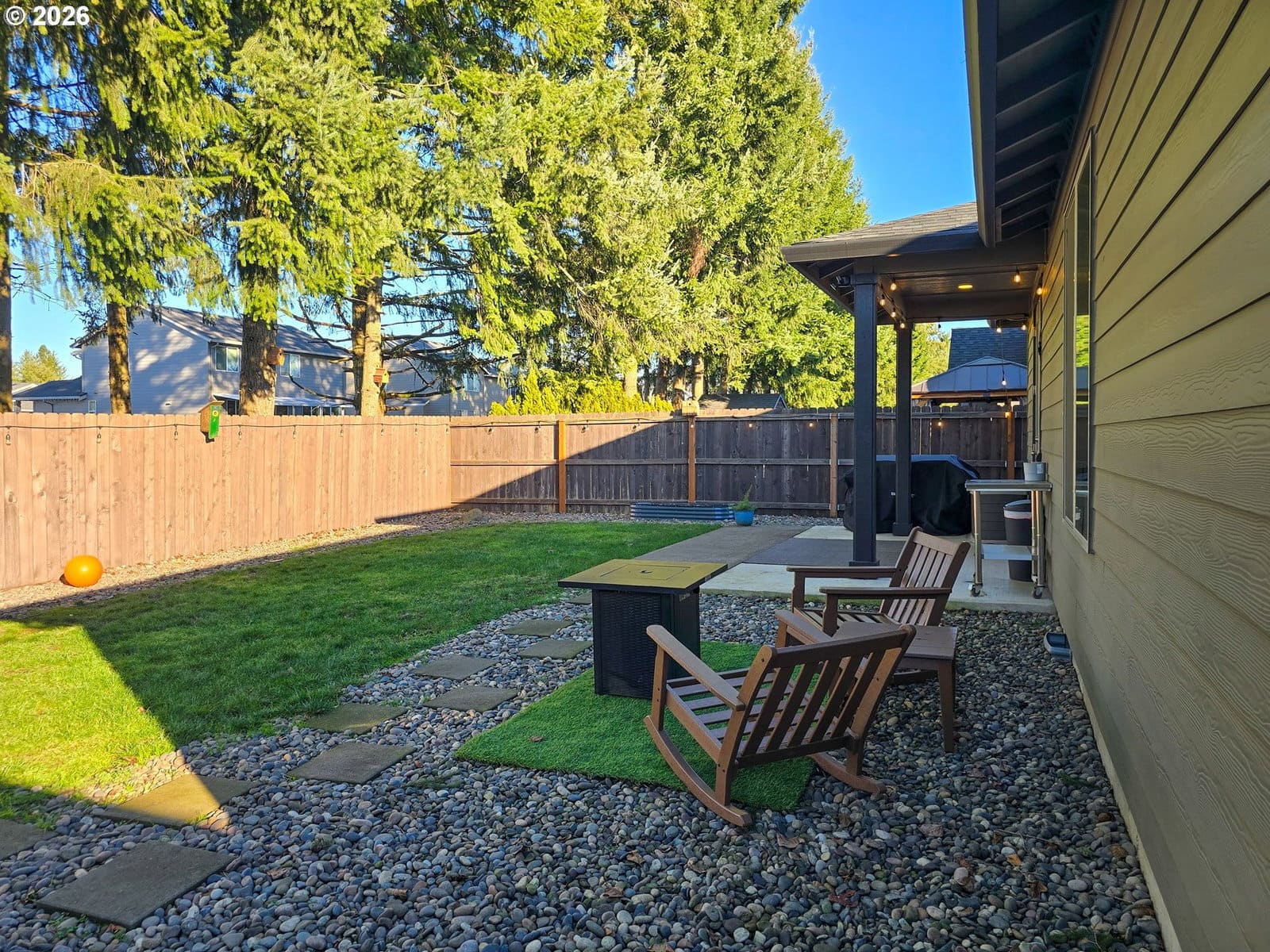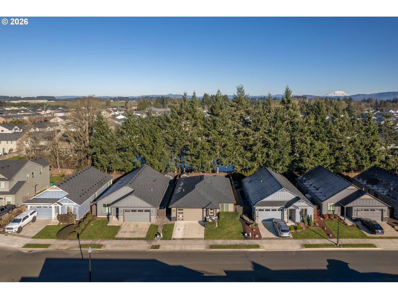 Built by Urban NW Homes, 2024 Builder of the Year by Clark County Building Industry Association, this impeccably maintained single-level 3-bed/2-bath, 1,627-sf home stands out even among newer neighborhoods for its thoughtful design, NGBS Gold Certification, and inviting comfort. Set on a large premium lot backing to a mature cedar tree line and a tranquil greenspace retention pond, the home offers a rare sense of privacy and calm while remaining bright, open, and welcoming. Inside, high, 9-foot ceilings and a bright, open great-room layout create an easy flow between the kitchen, dining, and living spaces perfect for everyday living and relaxed entertaining. The kitchen features an island, quartz slab counters, alder cabinetry, stainless appliances, a pantry, and warm finishes that feel both contemporary and timeless. A tiled gas fireplace with custom wood built-ins anchors the living area, while French doors open to an extended covered patio for seamless indoor-outdoor enjoyment. The spacious owner’s suite is a true retreat with a soaking tub, tiled shower, and refined fixtures. Quality details continue throughout, including craftsman millwork, luxury vinyl plank flooring, plush bedroom carpeting, custom blinds, ceiling fans, and a finished garage with shelving and a whole-house water softener. Outdoors, enjoy low-maintenance living with front yard care included in the HOA, a fenced backyard, raised garden beds, shed, and concrete patio. Beyond its beauty, this home delivers exceptional performance. Gold-level national green building certification, Energy Star standards, superior insulation, healthier indoor air quality, tankless water heater; NW Natural Winter bills: Feb-$49.64; Jan-$50.44; Dec-$32.52; Nov-$29.08. Tech Hub-CAT5-6, smart security features provide peace of mind, and long-term value. A rare opportunity to own a well-kept, thoughtfully built home that feels cozy, spacious, and effortlessly livable that is designed for today and built to last.