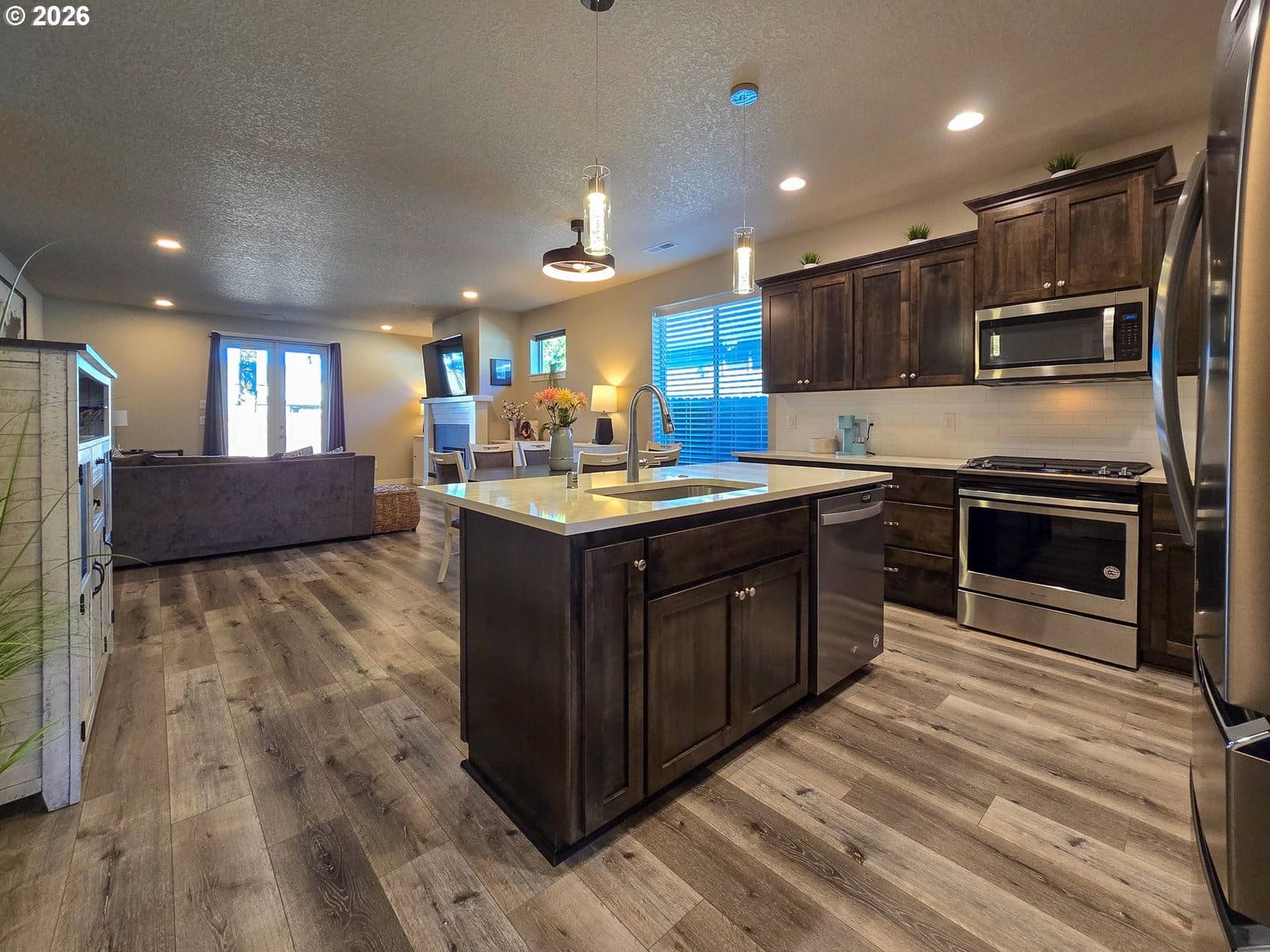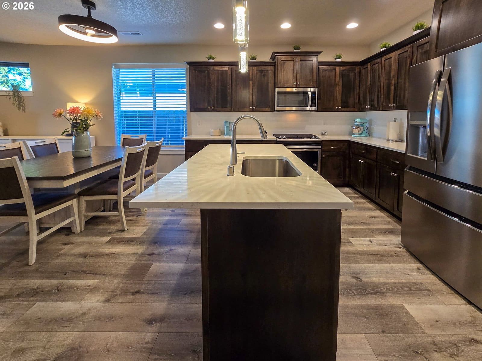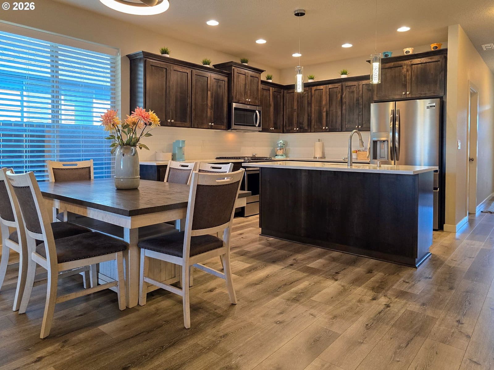 Built by Urban NW Homes, 2024 Builder of the Year by Clark County Building Industry Association, this impeccably maintained single-level 3-bed/2-bath, 1,627-sf home stands out even among newer neighborhoods for its thoughtful design, NGBS Gold Certification, and inviting comfort. Set on a large premium lot backing to a mature cedar tree line and a tranquil greenspace retention pond, the home offers a rare sense of privacy and calm while remaining bright, open, and welcoming. Inside, high, 9-foot ceilings and a bright, open great-room layout create an easy flow between the kitchen, dining, and living spaces perfect for everyday living and relaxed entertaining. The kitchen features an island, quartz slab counters, alder cabinetry, stainless appliances, a pantry, and warm finishes that feel both contemporary and timeless. A tiled gas fireplace with custom wood built-ins anchors the living area, while French doors open to an extended covered patio for seamless indoor-outdoor enjoyment. The spacious owner’s suite is a true retreat with a soaking tub, tiled shower, and refined fixtures. Quality details continue throughout, including craftsman millwork, luxury vinyl plank flooring, plush bedroom carpeting, custom blinds, ceiling fans, and a finished garage with shelving and a whole-house water softener. Outdoors, enjoy low-maintenance living with front yard care included in the HOA, a fenced backyard, raised garden beds, shed, and concrete patio. Beyond its beauty, this home delivers exceptional performance. Gold-level national green building certification, Energy Star standards, superior insulation, healthier indoor air quality, tankless water heater; NW Natural Winter bills: Feb-$49.64; Jan-$50.44; Dec-$32.52; Nov-$29.08. Tech Hub-CAT5-6, smart security features provide peace of mind, and long-term value. A rare opportunity to own a well-kept, thoughtfully built home that feels cozy, spacious, and effortlessly livable that is designed for today and built to last.