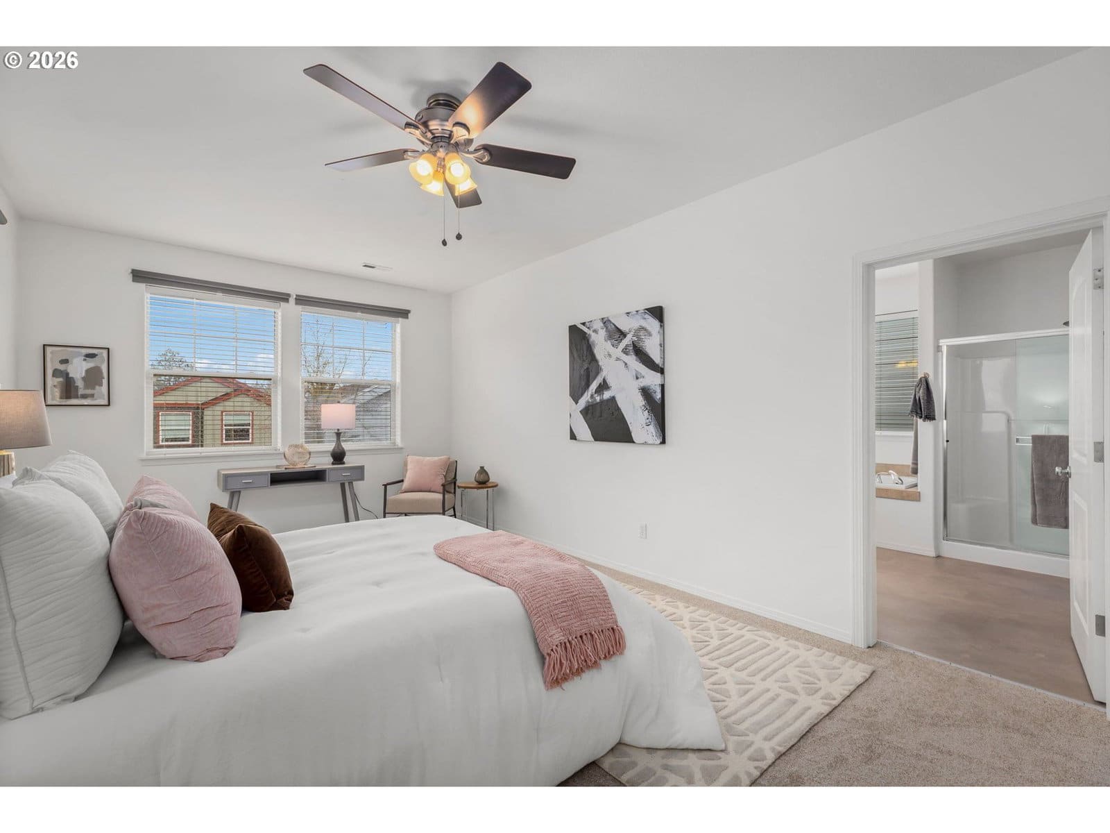 ***OPEN HOUSES THIS WEEKEND! Saturday 2/28 and Sunday 3/1 from 1-3pm!***With ALL NEW interior paint, gorgeous new LVP on the main, and pristine NEW carpet upstairs, this spacious home is bright and airy with oversized windows! High ceilings on both levels. The greatroom features a large living space with gas fireplace and well thought-out kitchen with gas stove, stainless appliances, and island with seating. From the dining room, enjoy easy access to a fenced backyard with oversized patio. Upstairs is a luxurious primary bedroom with ensuite bathroom, soaking tub, double sinks, and walk-in closet. Conveniently located laundry room with folding counter and newer washer & dryer. Two large bedrooms with walk-in closets and oversized bathroom upstairs. Convenient location near Intel, Nike, public transportation, shopping, dining and parks. All appliances stay and no HOA.