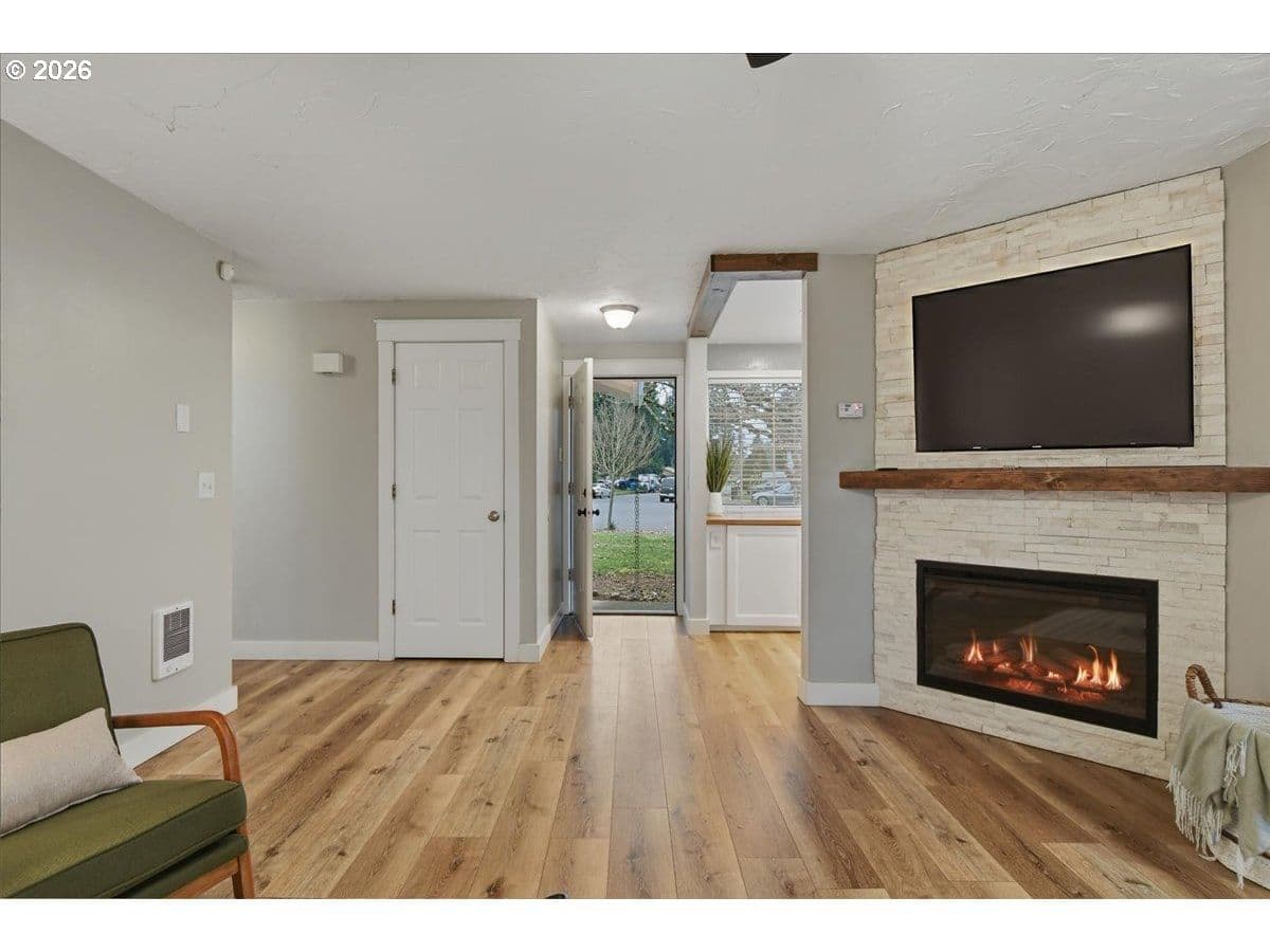 Be the next lucky homeowner to call this stylishly upgraded 3-bed 2-bath ranch your new home! Nestled in east Vancouver's Scarborough Estates, this bright one-level gem with attached 2-car garage is absolutely dialed in, both inside & out! The kitchen features generous butcher block and quartz countertops with cupboard & cabinet space galore. The open living room leads to a dining nook with a view and sliding door to the landscaped backyard and patio. An electric fireplace in the living room ensures that relaxing and cozy vibes are always ready for full effect. Upgrades include LVP through the kitchen, living & dining areas. Both bathrooms have been revamped. The primary bedroom is spacious, with an ensuite bathroom, vaulted ceilings, and a walk-in closet. French doors in the primary offer a calming view and access to the patio & fire pit. The backyard is fenced, and includes a shed and raised bed. Clean, clever landscaping out back create a true extended living space. Location, tasteful upgrades, and main-level living make this darling ranch an incredible opportunity to be at home!