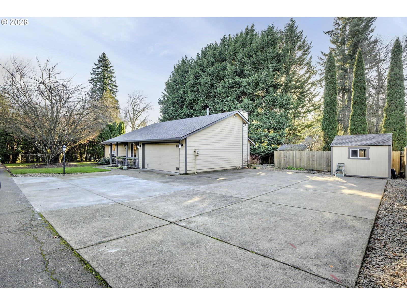 Beautiful single-level home in a private, tranquil setting. This 3-bedroom, 2-bath residence offers a quiet retreat surrounded by mature trees and a private backyard. Features include vaulted ceilings, a spacious primary suite with an en-suite bath, RV parking, and an extended driveway with an additional storage shed.Recent updates include a new toilet in the primary bathroom, new kitchen dishwasher, new kitchen faucet, and a new garage door opener. The garage is enhanced with custom cabinets, and the home offers additional attic storage with installed flooring.Move-in ready and thoughtfully maintained, this home is ready for its next family. All furniture is negotiable, making for a smooth and flexible transition.