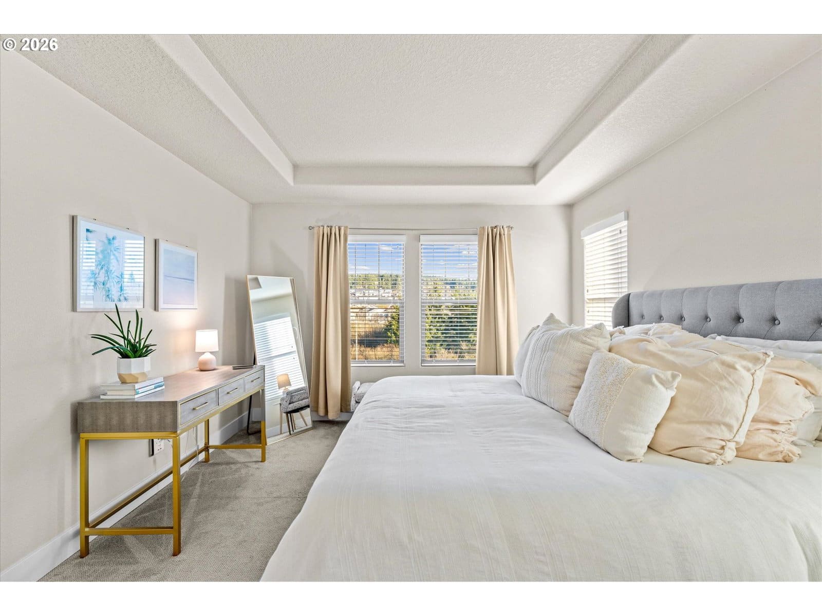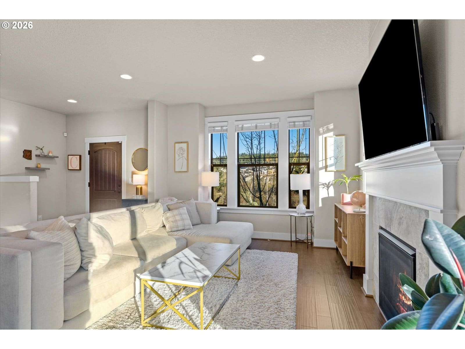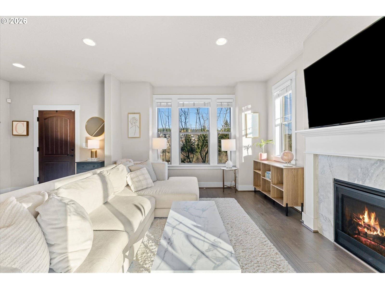 OPEN SATURDAY 12-2!!!! Sought-after River Terrace neighborhood at an affordable price on a corner lot. Enjoy the community center featuring a gym, recreation center, playground, and pool, all included in the HOA dues. Solar panels provide for summer electric bills as low as $3 a month. The main level offers laminate flooring throughout and a great-room floor plan with an open kitchen, dining, and living area with a gas fireplace. The kitchen features white cabinets, quartz countertops, an eat-at island, stainless steel appliances, and a gas range. The upper level includes a primary suite with walk-in closet and private bath, three additional bedrooms, and a utility room. Private side yard off the dining area with low maintainence turf and a custom patio. Move-in ready!