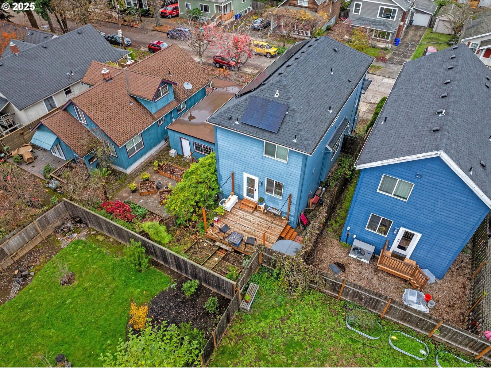 Experience urban living at its finest in this modern 3 bed, 2.5 bath home perfectly positioned between Laurelhurst and Mt. Tabor. Thoughtfully designed with high-end finishes, the open floor plan features 9-foot ceilings on the main level, hardwood floors, a stylish living room with gas fireplace and built-ins, and a formal dining area. The gorgeous chef’s kitchen offers quartz countertops, stainless steel appliances, an electric convection oven and stovetop, and an island ideal for cooking and gathering. The primary suite includes a walk-in closet and a beautifully updated primary bathroom featuring an oversized step-in shower. The solar system installed in June 2025 is fully paid off and will save you thousands on electricity for years to come. Additional highlights include plentiful closet space, tile bathroom flooring, Hunter-Douglas blinds, A/C, and an oversized one-car garage. Enjoy a fully fenced, private backyard with terraced garden beds—perfect for relaxing or gardening. With unbeatable access to parks, cafés, pubs, award-winning eateries, Max Light Rail, and I-84, this home places the best of Portland’s Northeast neighborhoods right at your fingertips. [Home Energy Score = 6. HES Report at https://rpt.greenbuildingregistry.com/hes/OR10193568]