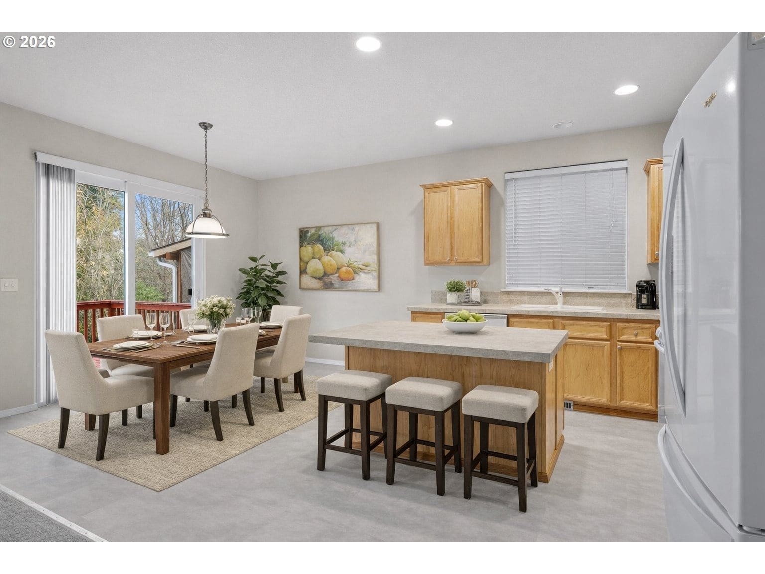Move in Ready with Brand New Carpet and LVT in 2025. New Roof & Windows in 2022. Open floorplan - family room with a gas fireplace & open to the dining area & kitchen. Sliding door to the back deck. Kitchen with gas range, eat-at island, pantry, built-in microwave, & dishwasher. Upstairs, you’ll find three bedrooms, including a vaulted primary suite with a walk-in closet, two additional vaulted bedrooms, a bonus room, and a laundry room. A great location on a private street, a level corner lot with tree-lined views. All appliances included.