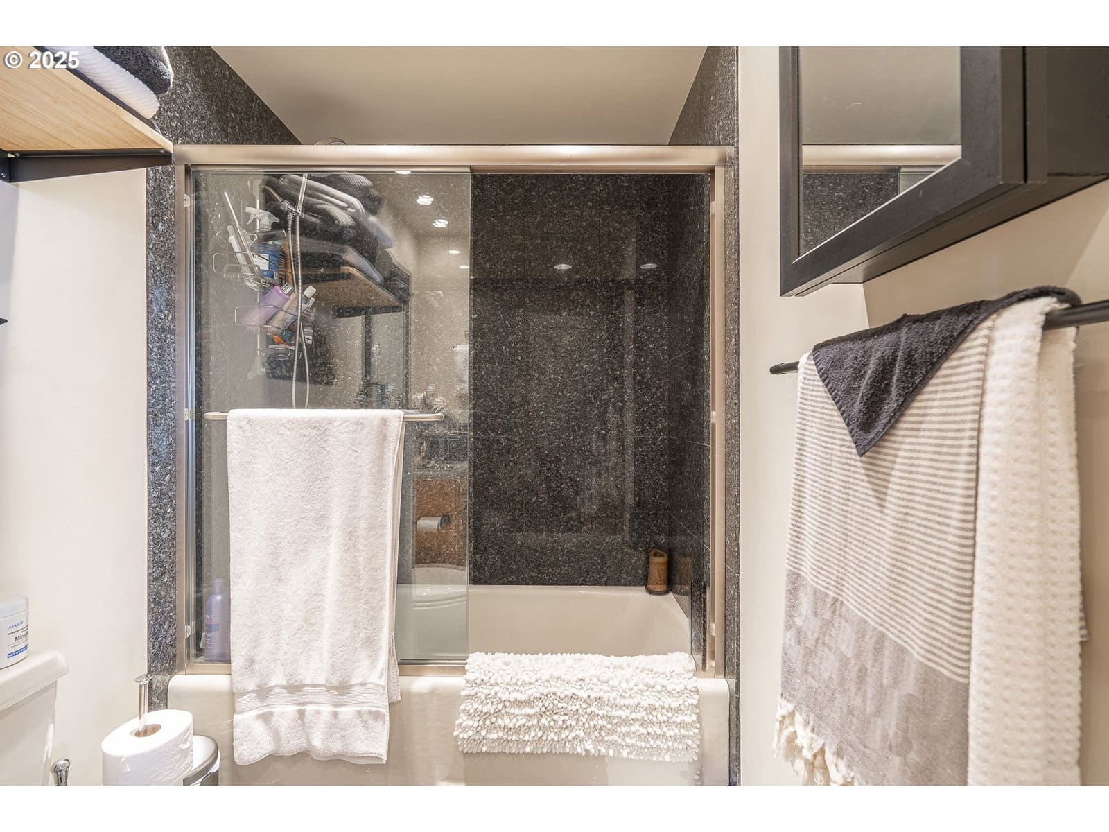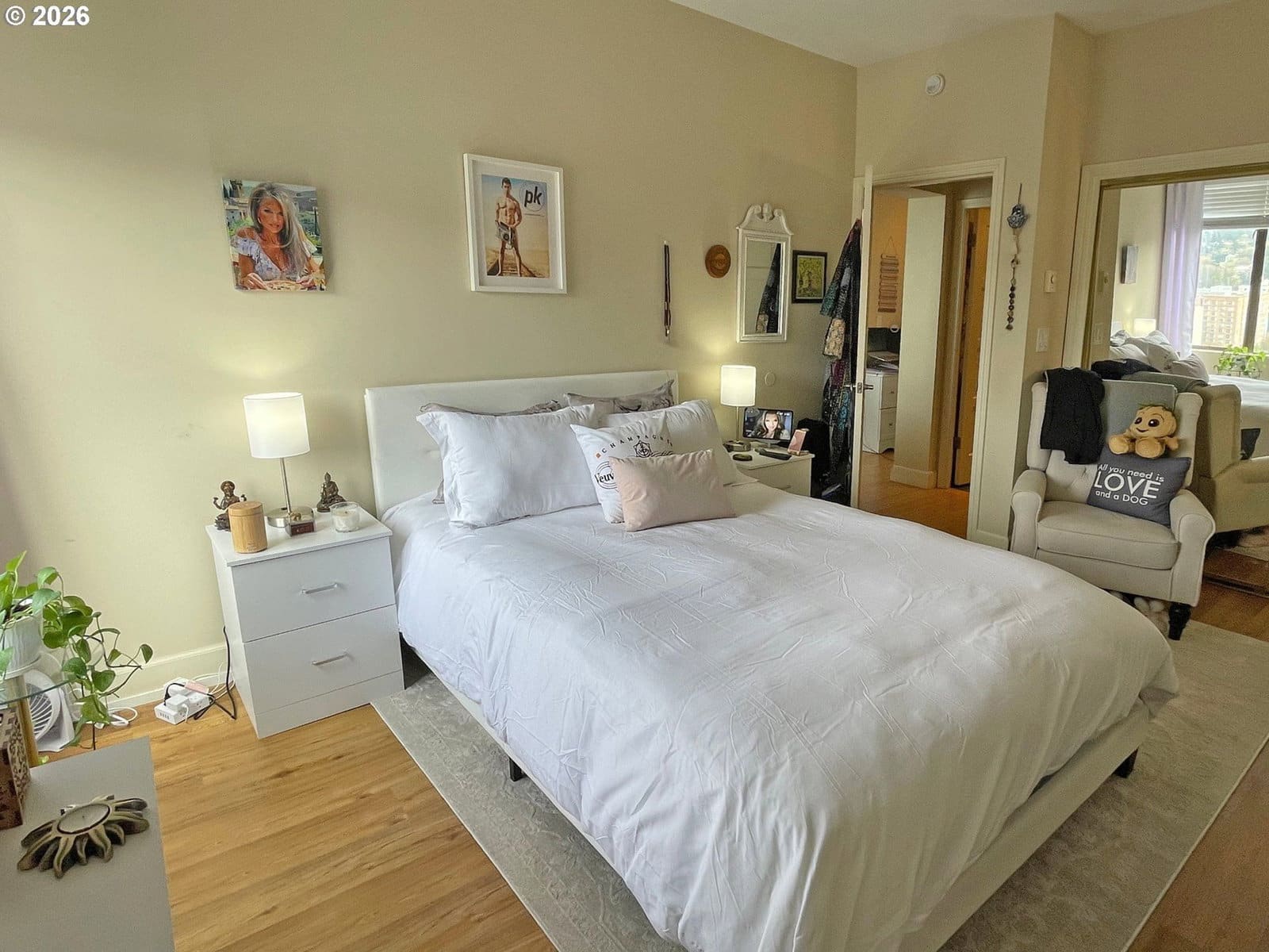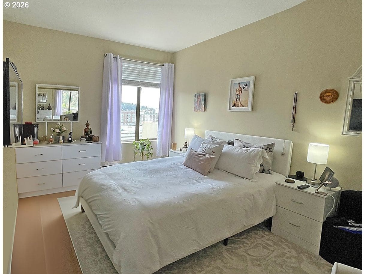We have the views you’ve been looking for! Twenty-four flights up, yours is a commanding vista from the prow of your balcony, where to your right, the river sparkles and the mountain rises above it. Directly ahead, evening brings glorious rose sunsets over the west hills and then, later, a myriad of winking city lights. Inside, warm bamboo floors, granite counters, contemporary lighting, new remote-controlled fireplace and greatroom design come together for a sophisticated vibe. The addition of barn-door sliders has transformed the two-bed- two-bath floorplan into dual primary suites. In the kitchen, you are well-equipped with updated stainless appliances and glass-top range. Washer and dryer are full-size front loaders hidden away from view in the entryway. A/C? Of course! Just next door: Fully equipped gym, locker room, sauna, full-size swimming pool and patio, and an event venue you can reserve. More: Your own parking space, your own dedicated storage space, 24-hour security+concierge and 53 spaces for guest parking. Cable and internet included, HOA pays all utilities except electric.