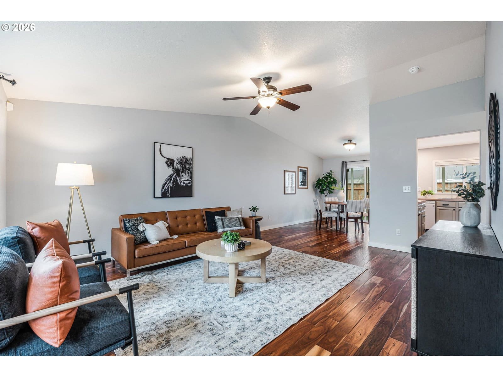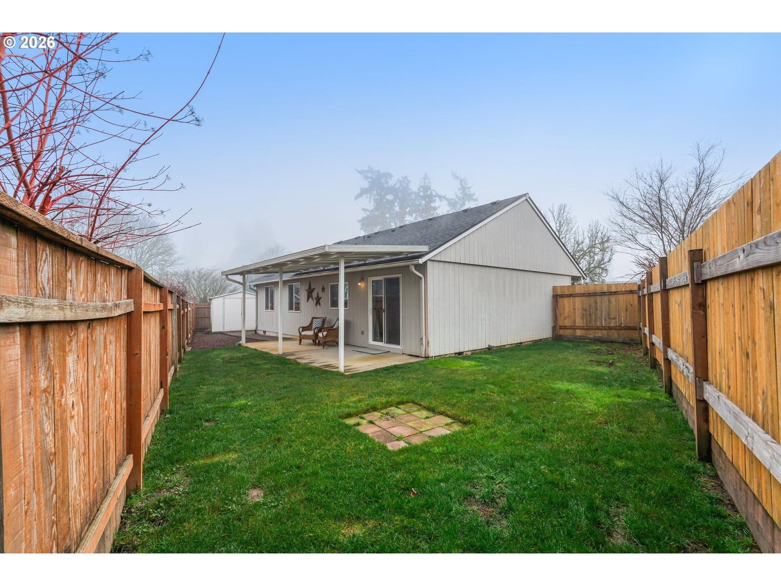 Beautifully maintained single-level home in a quiet cul-de-sac. Conveniently located near downtown Newberg. Features include engineered hardwood floors, central vacuum, automatic sprinkler system and attached two-car garage. Renovated bathrooms. Recent upgrades include a new water heater (2025). The primary suite features a walk-in closet and private bath, providing comfort and convenience. Toolshed for extra storage.