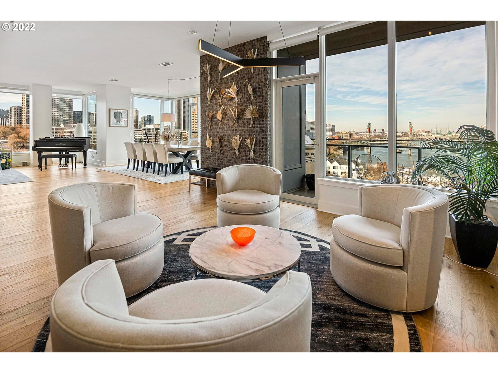 Luxury waterfront living at the Strand Jr. penthouse! Spectacular view of the city, river, mountains and the parks. Updated and elegant with 3 bedrooms, 3 baths, TWO primary suites, dining and den areas, walk-in pantry, balcony off dining room, and balcony off primary bedroom. Gourmet kitchen features quartz countertops, oversized island & Thermador SS appliances. See to appreciate this amazing unit!