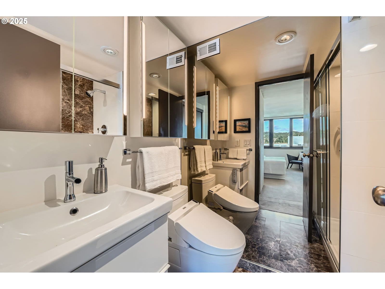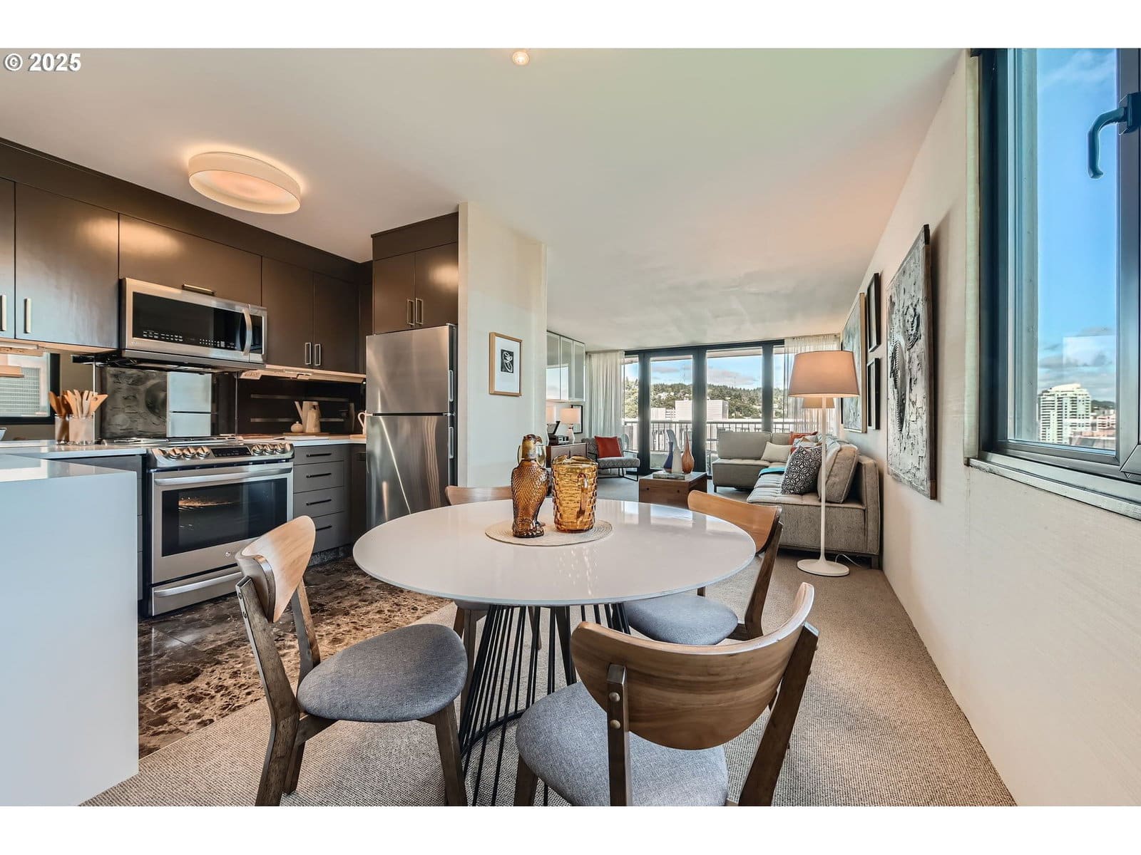 Step into modern elegance in the heart of Portland’s dynamic arts and culture district. Perched high on the 21st floor of the iconic Harrison West Condominium, a landmark residence designed by architectural powerhouse Skidmore, Owings & Merrill, this fully updated condominium blends timeless design with cutting-edge comfort. Residence 21D is a rare gem—boasting panoramic views of the Portland skyline and peeks to the Willamette River from your private outdoor terrace. Inside, experience refined urban living with a curated selection of luxury finishes and upgrades, including: State-of-the-art induction range for precision cooking, Ducted high-efficiency heat pump HVAC for year-round climate control, Luxury marble surfaces and smoky mirror accents for a rich, moody aesthetic, Custom blackout shades and privacy drapes for serene mornings and cinematic evenings. Every detail has been thoughtfully considered to create a private retreat just steps from museums, galleries, cafes, and the waterfront. Live above it all—Unit 21D at Harrison West is where architecture, art, and city life converge.Schedule your private showing today. Most interior furnishings available for purchase or may be included with acceptable offer. Seller is a licensed real estate agent in Oregon.